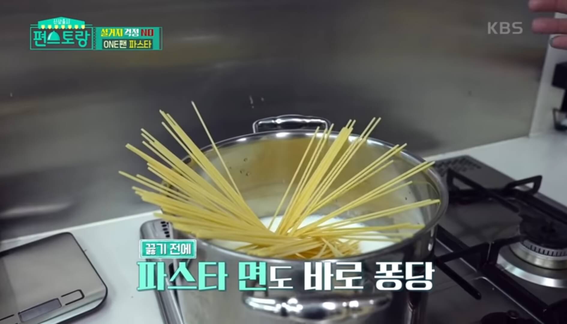 물이 끓기 전에 파스타 면 200g도