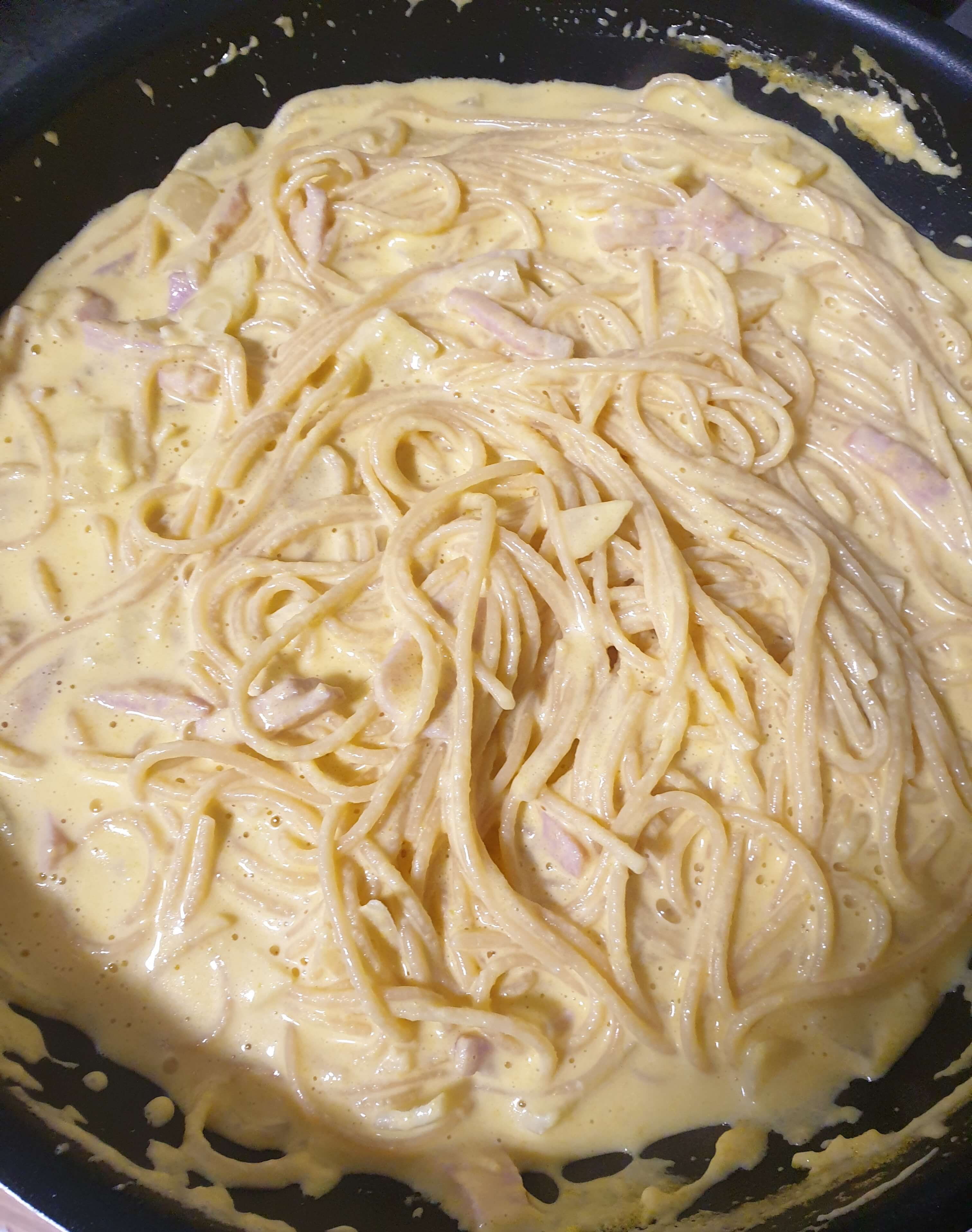 재료- 단호박, 생크림, 베이컨, 양파, 파스타면