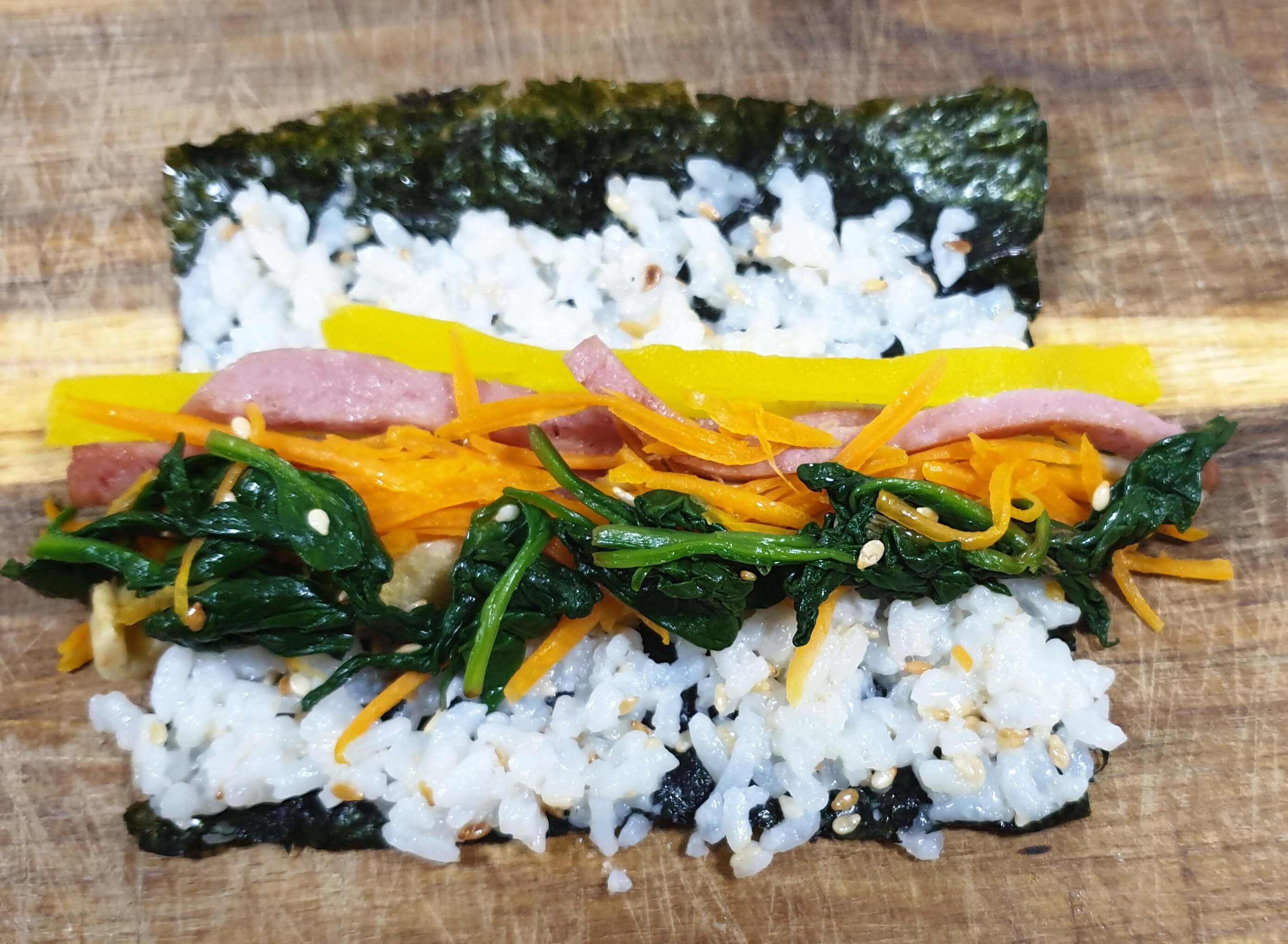 재료- 김, 단무지, 햄, 어묵, 당근, 시금치