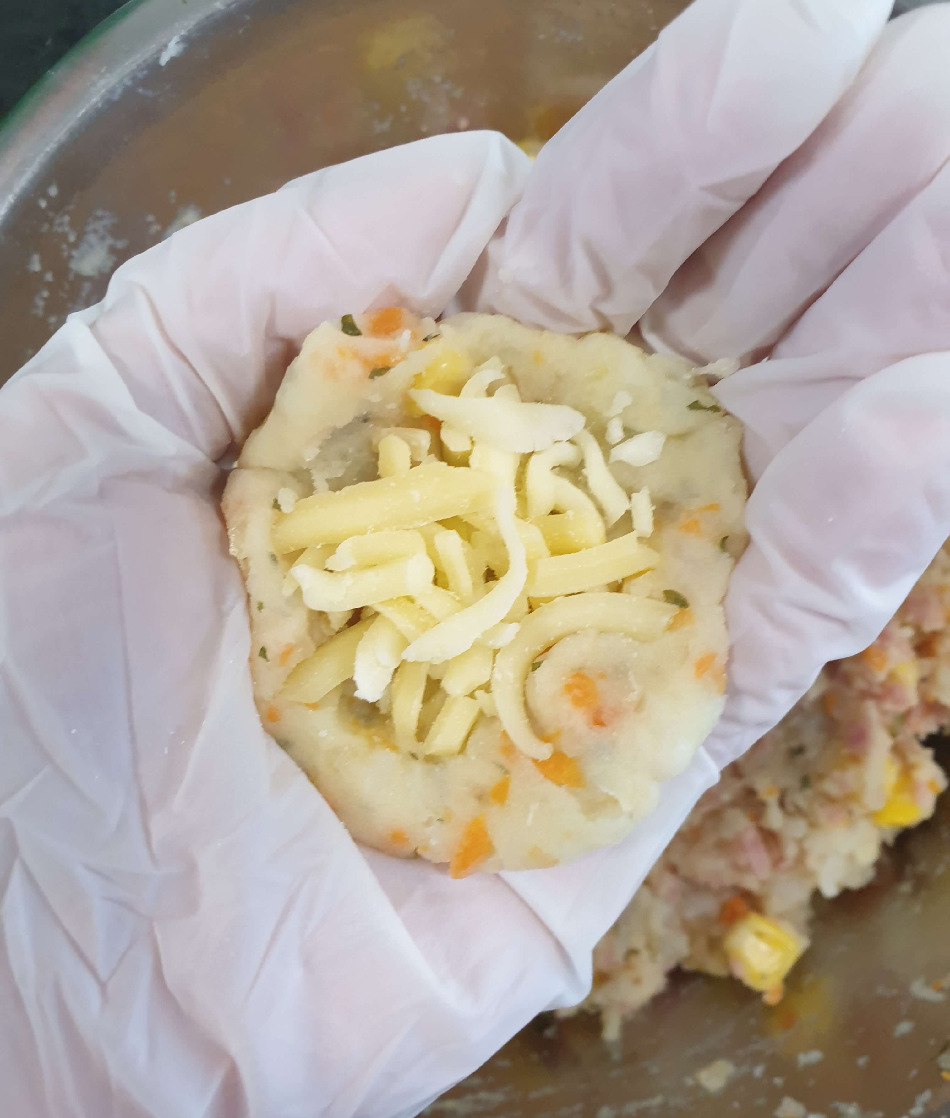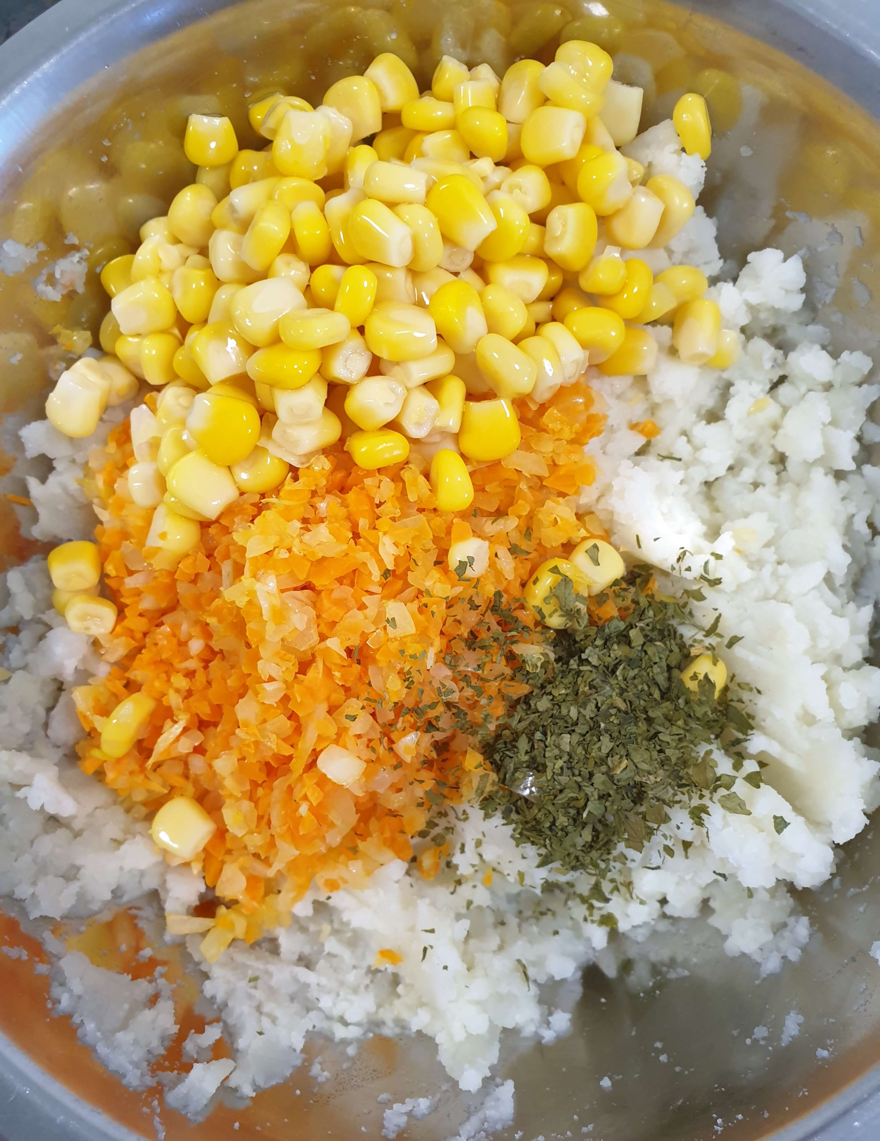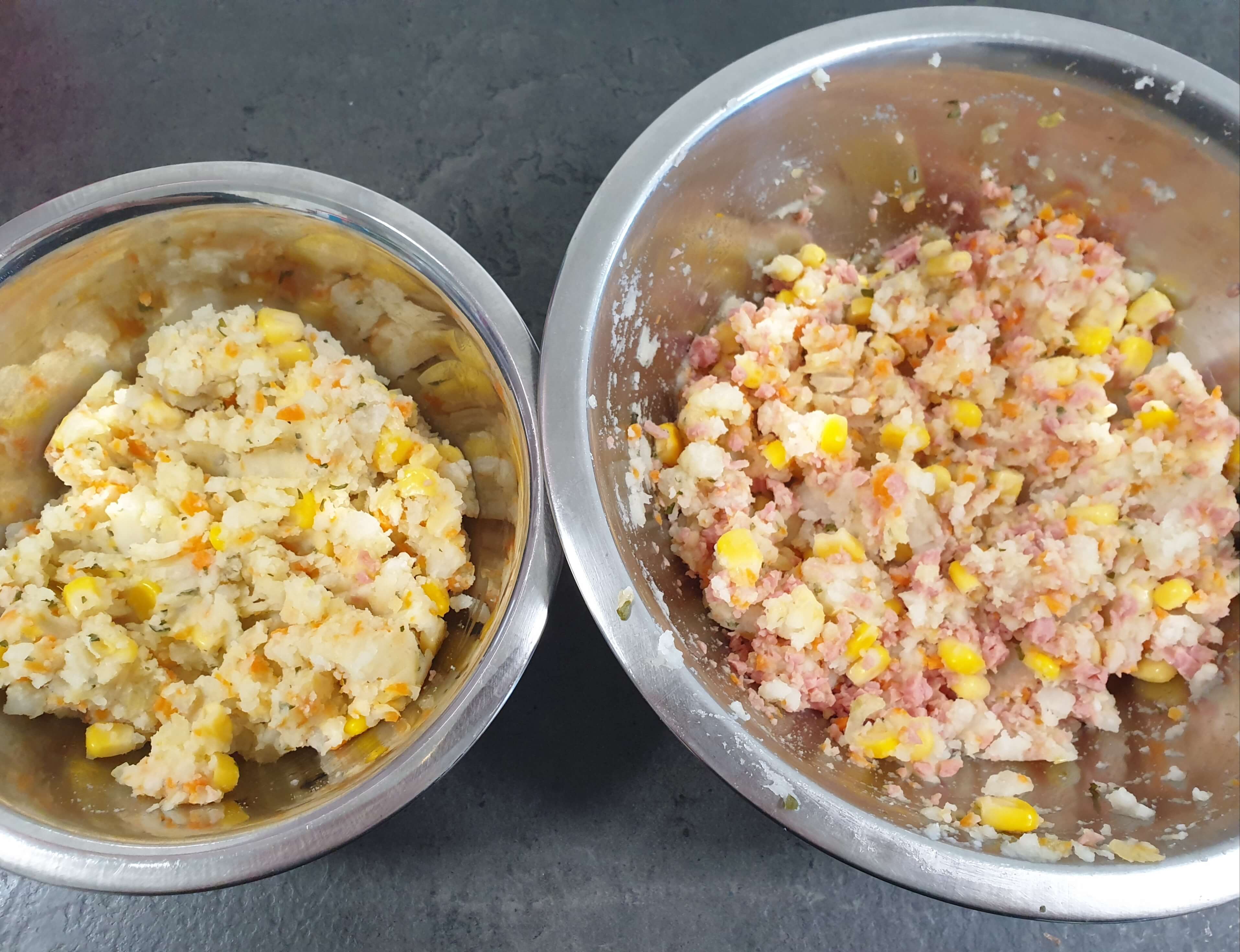 재료- 감자, 당근, 양파, 햄, 옥수수, 파슬리