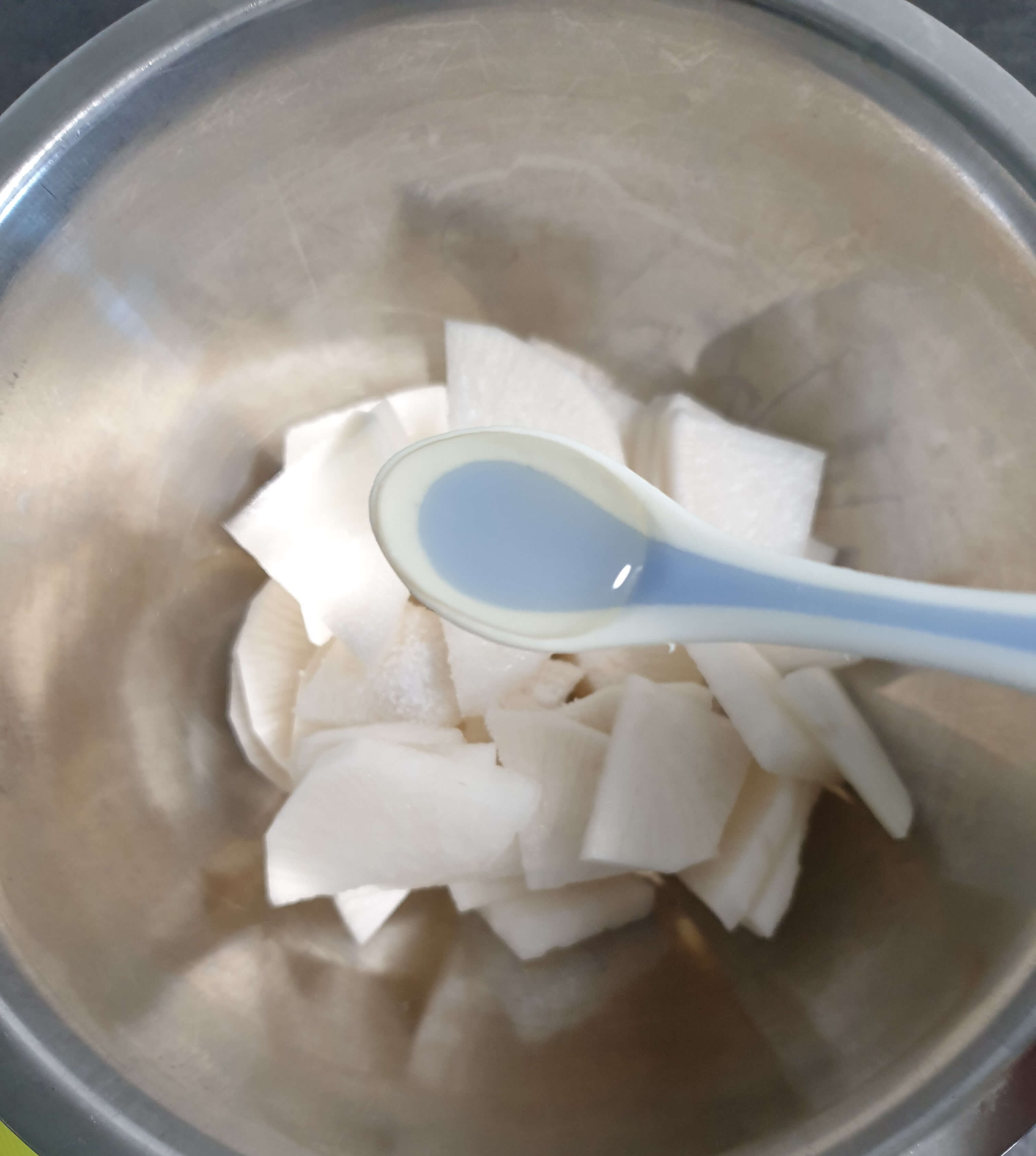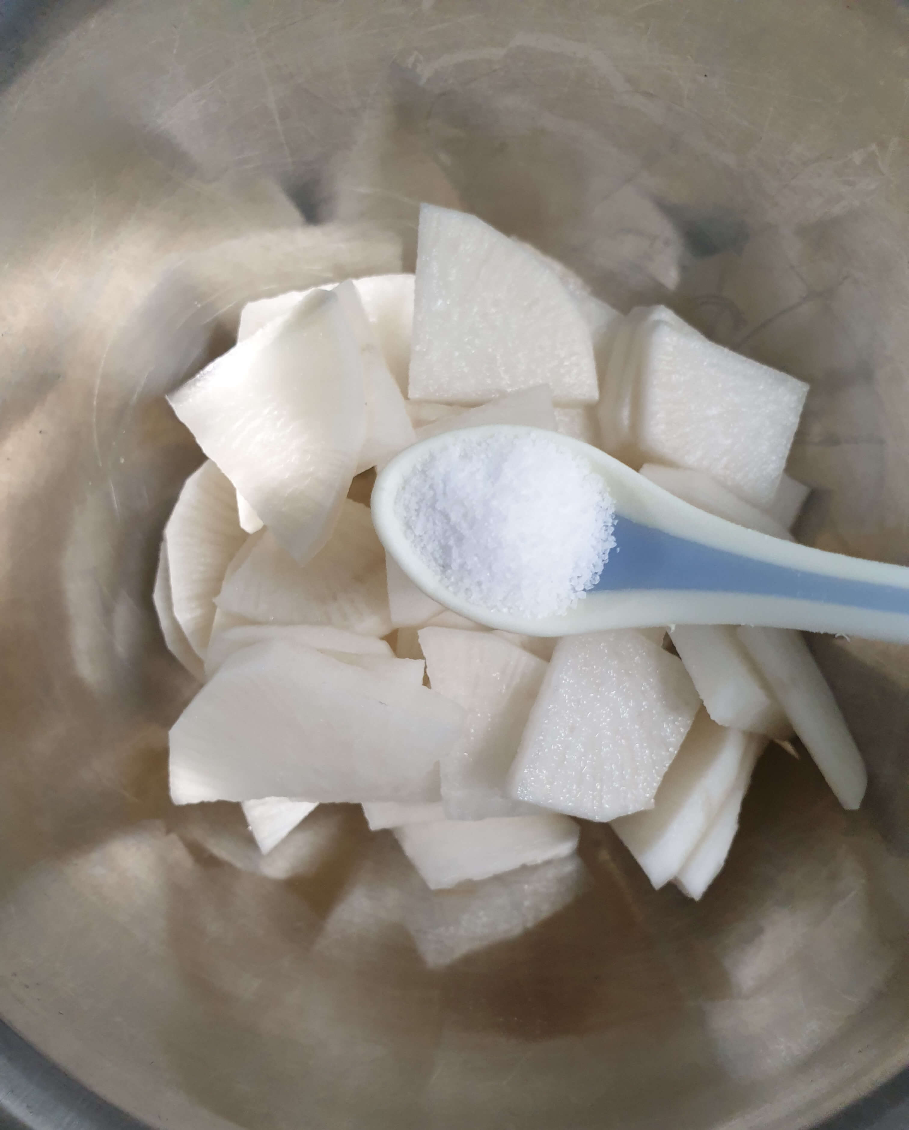 무는 면포에 물기를 꽉 짜줬어요