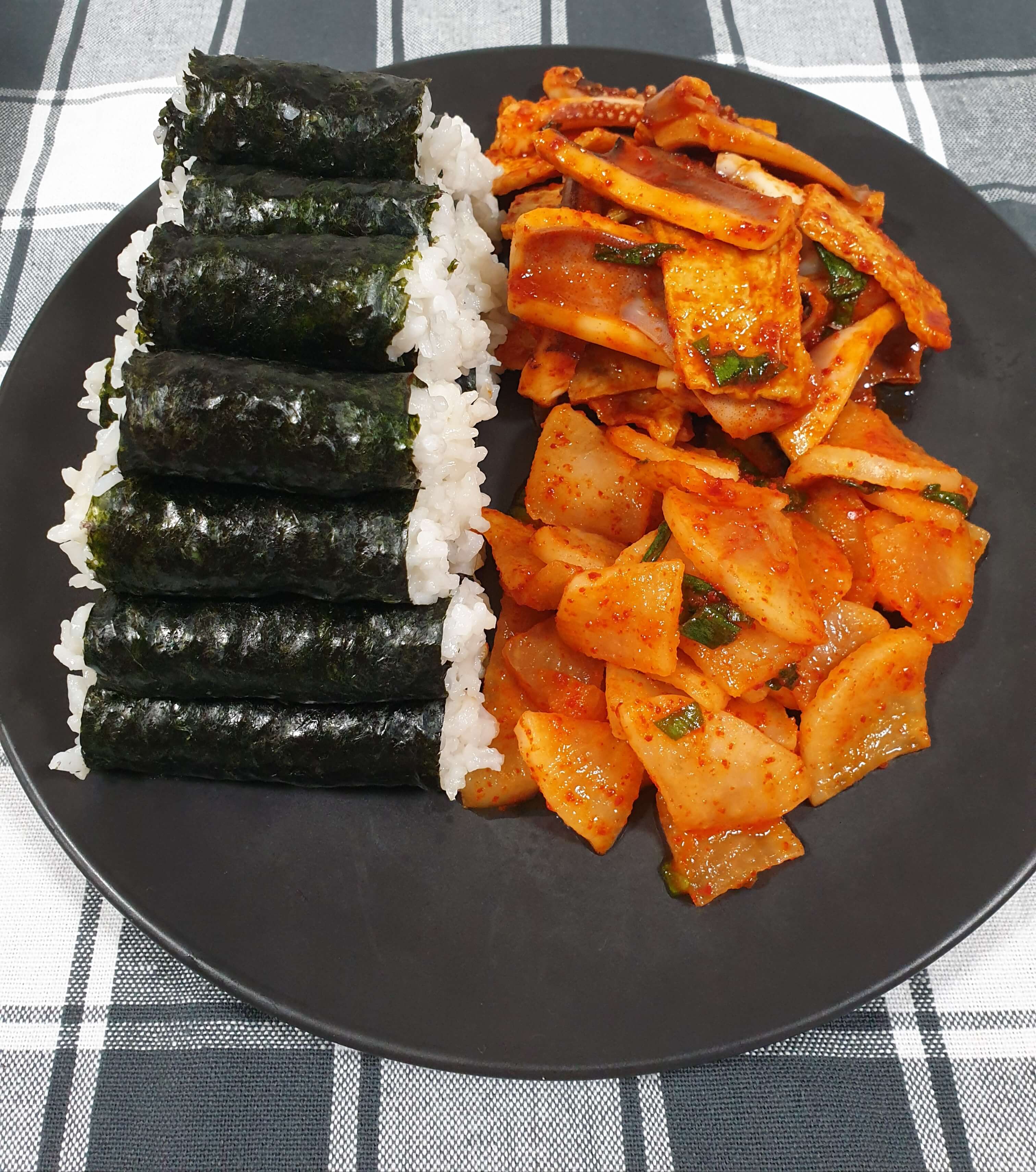 재료- 무 (무말랭이), 오징어, 어묵, 김