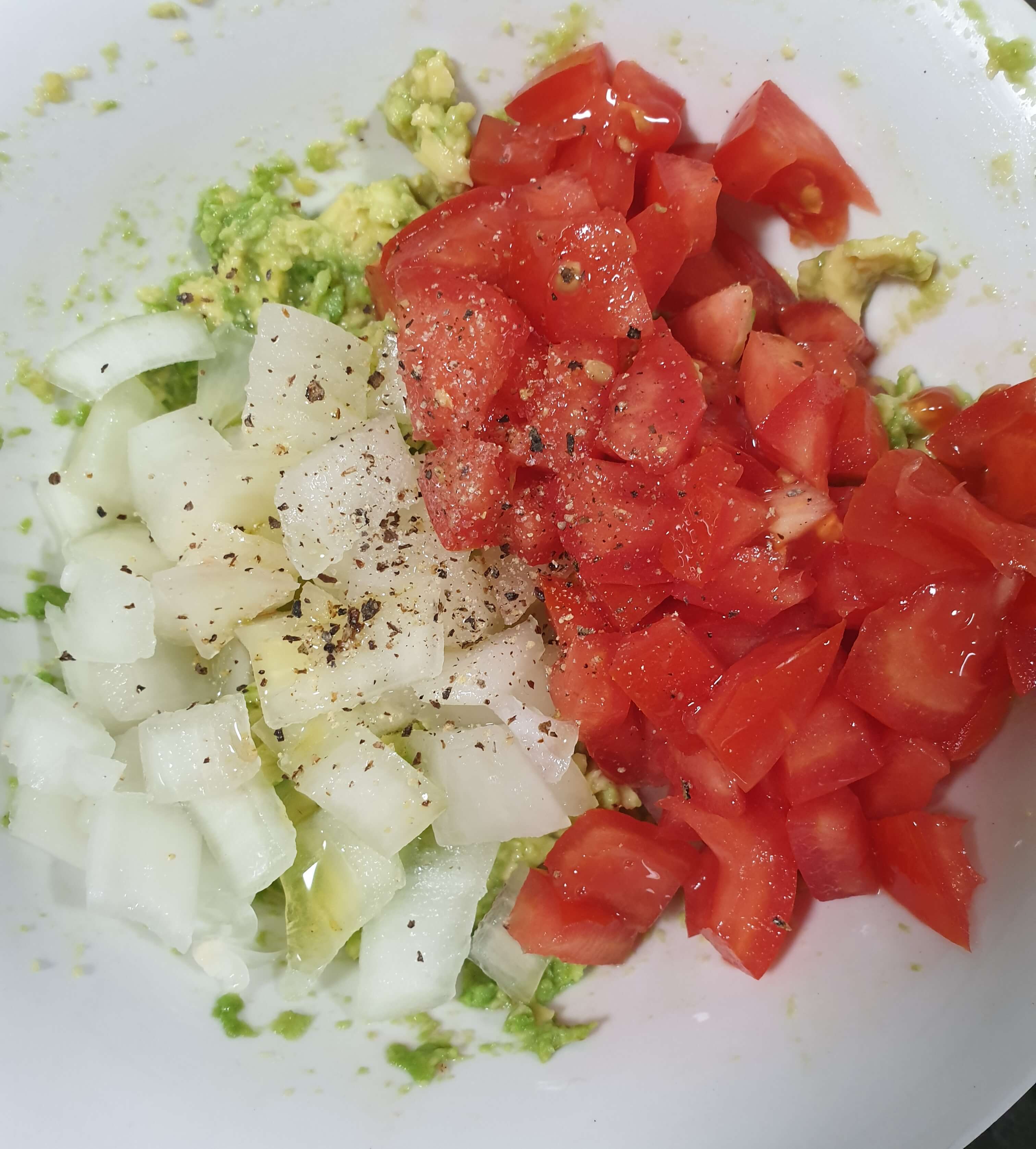 재료- 양파(선택), 아보카도, 토마토, 소금, 후추