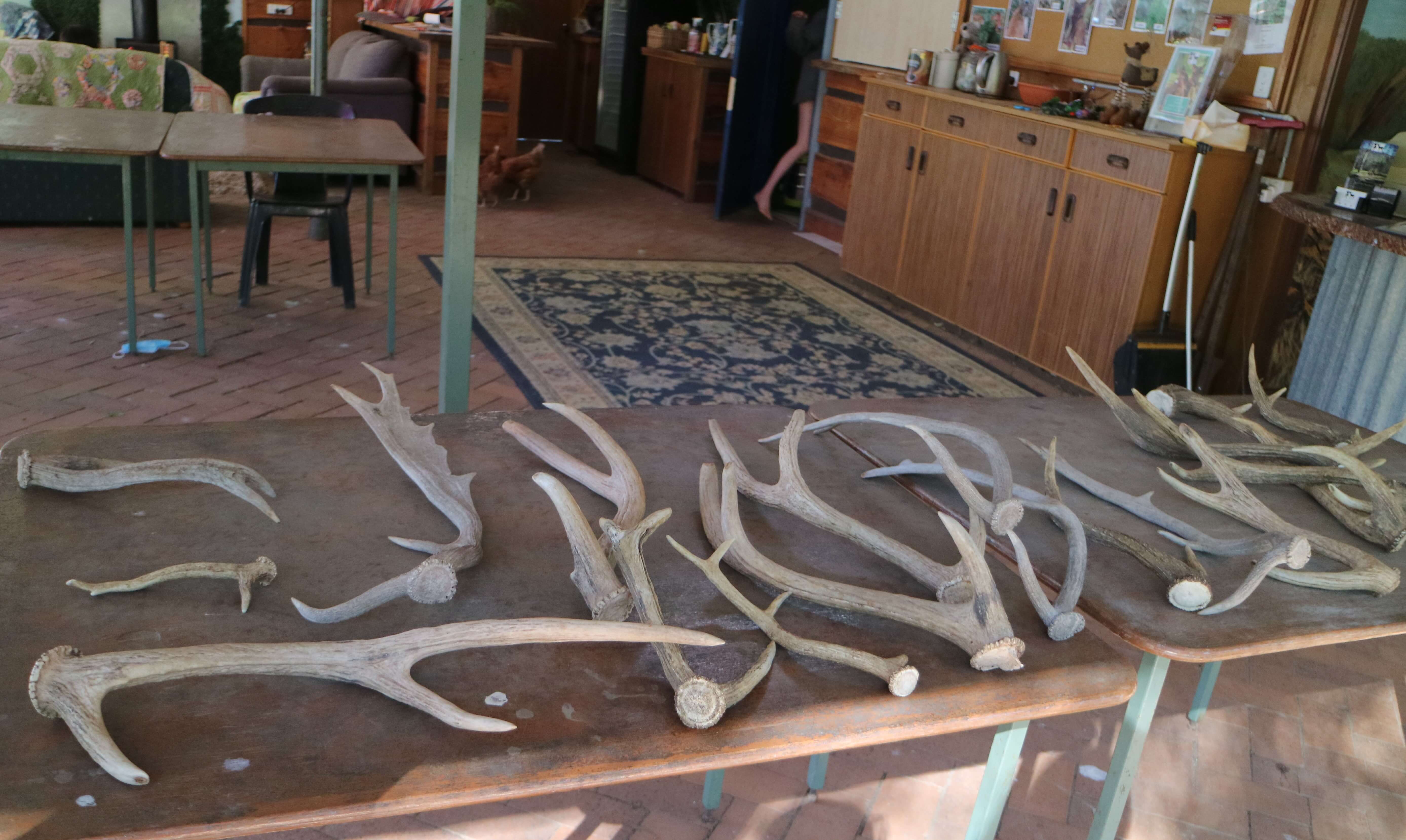 사슴뿔을 이렇게 진열해 놨더라고요
