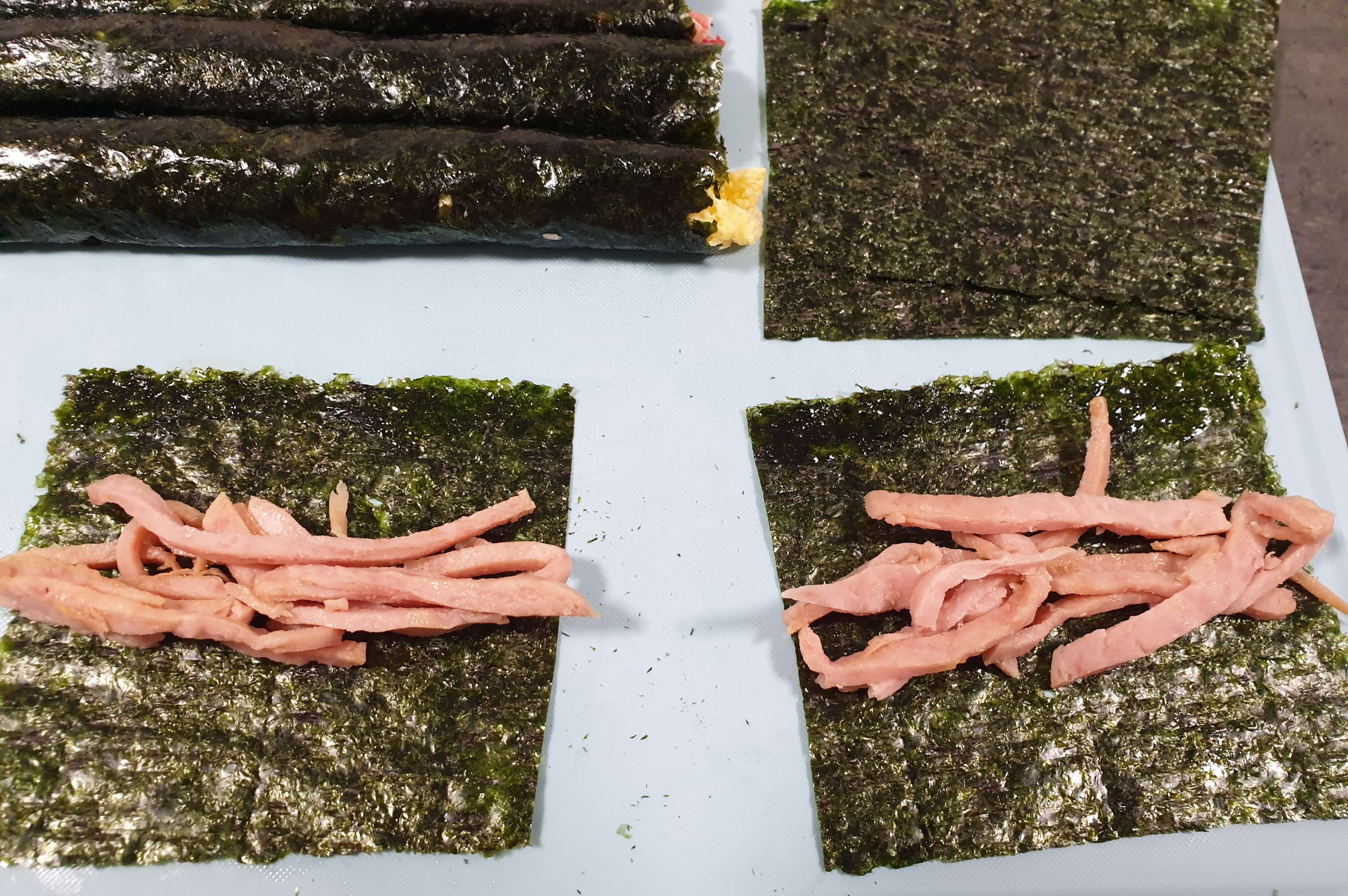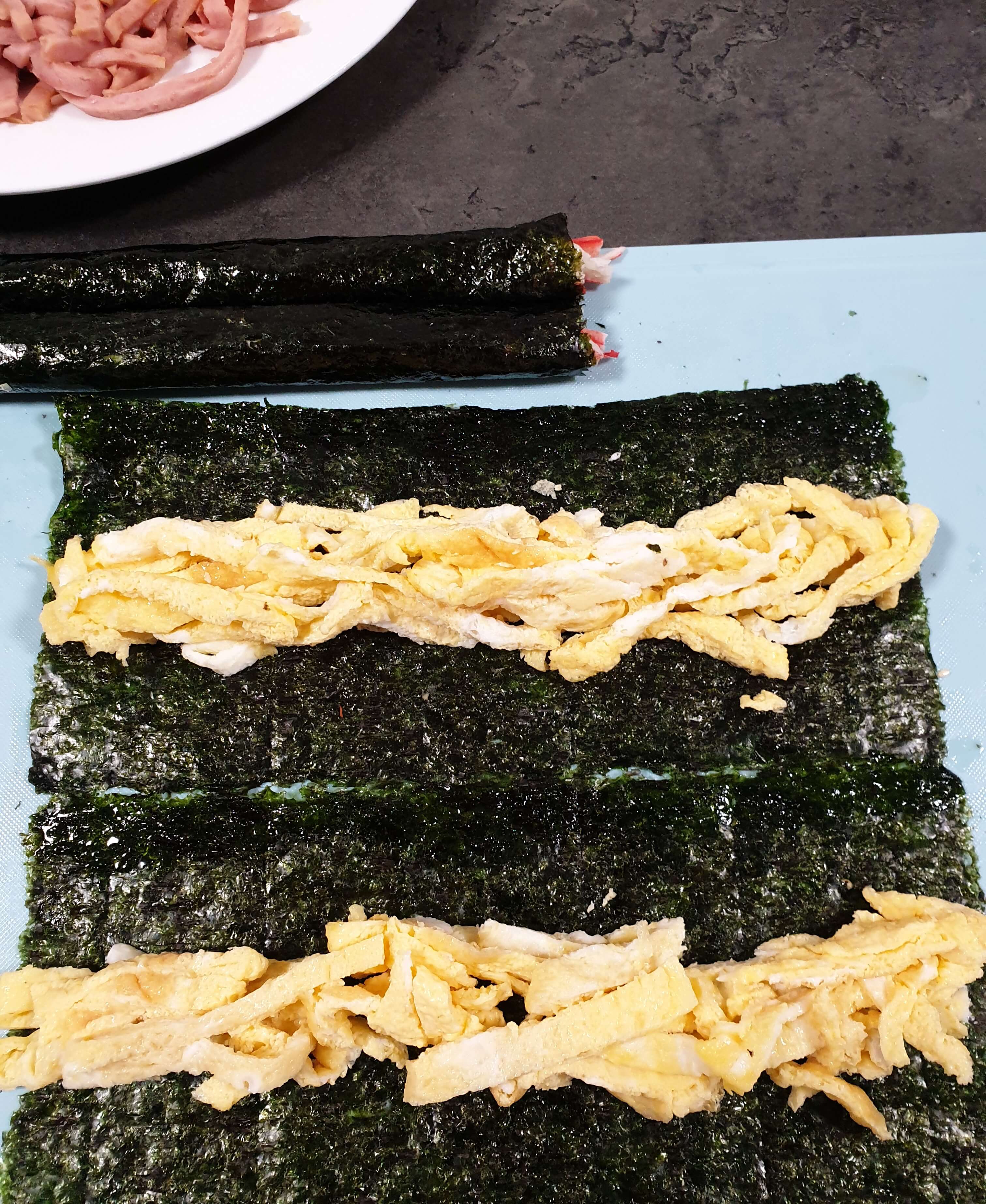 * 김을 반만 잘라서 길게 마는 게 힘들면