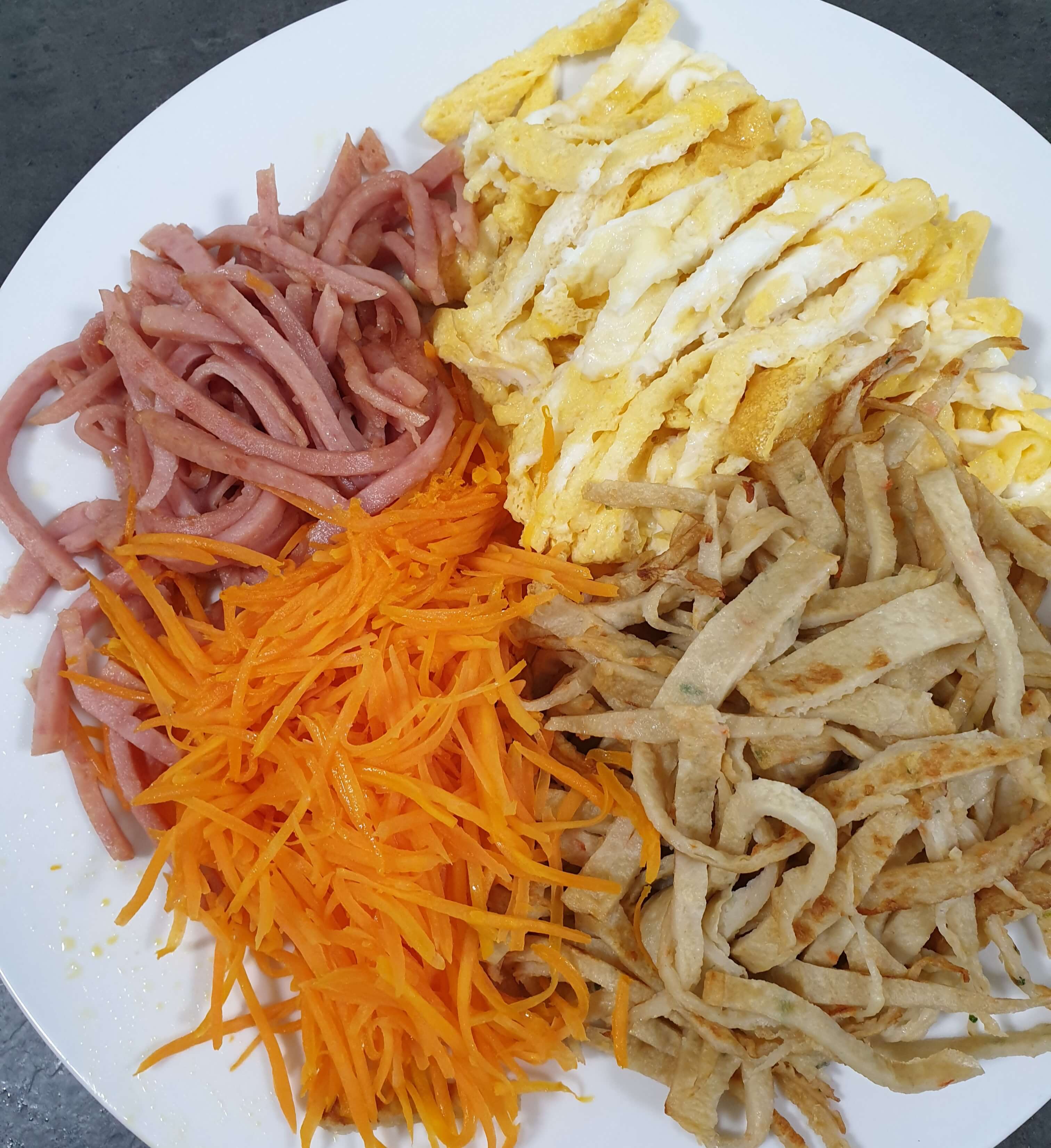 햄, 계란, 시금치, 어묵, 빨간 파프리카