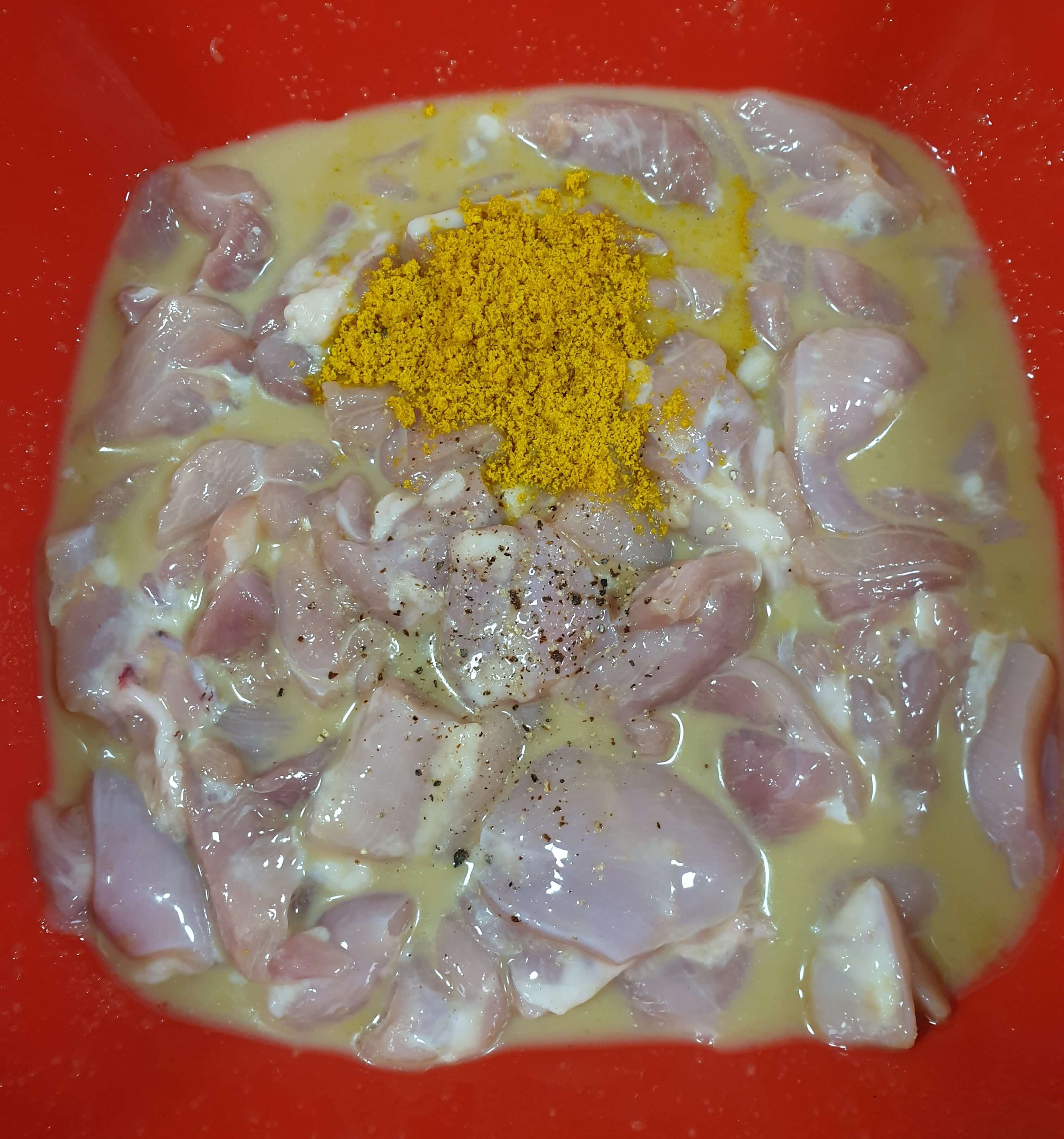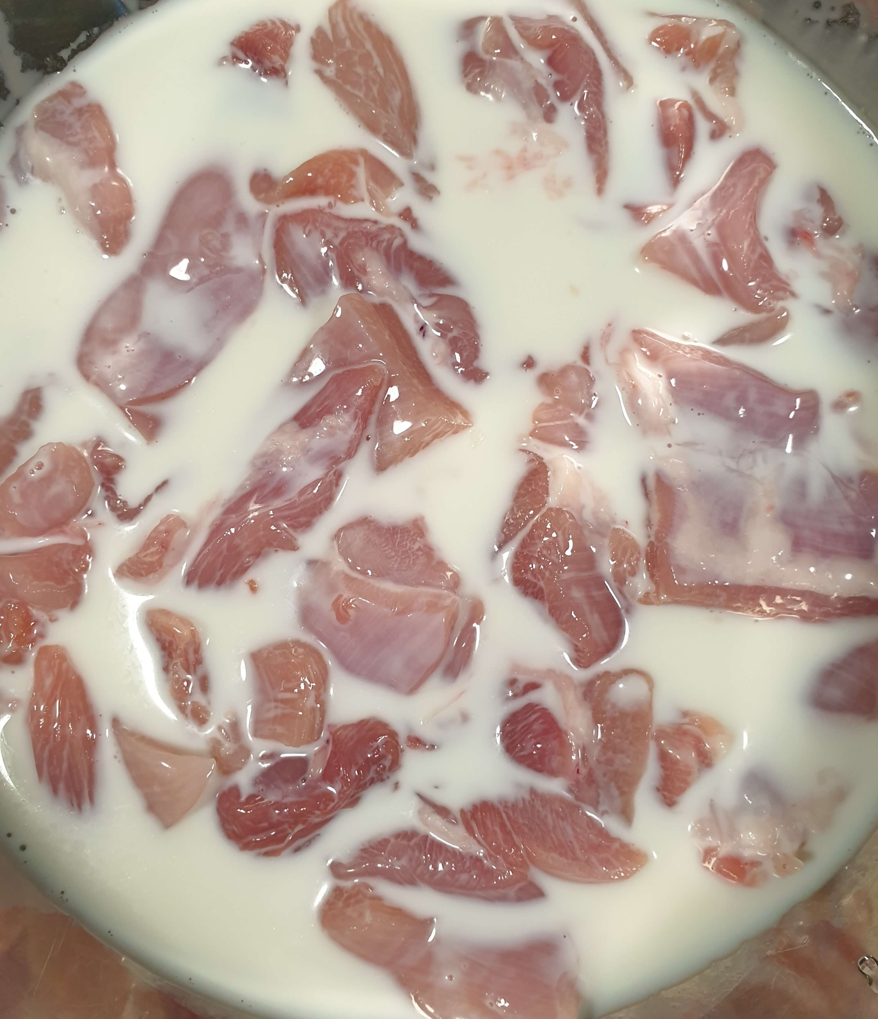 재료- 닭 허벅지살, 우유, 전분, 찹쌀가루