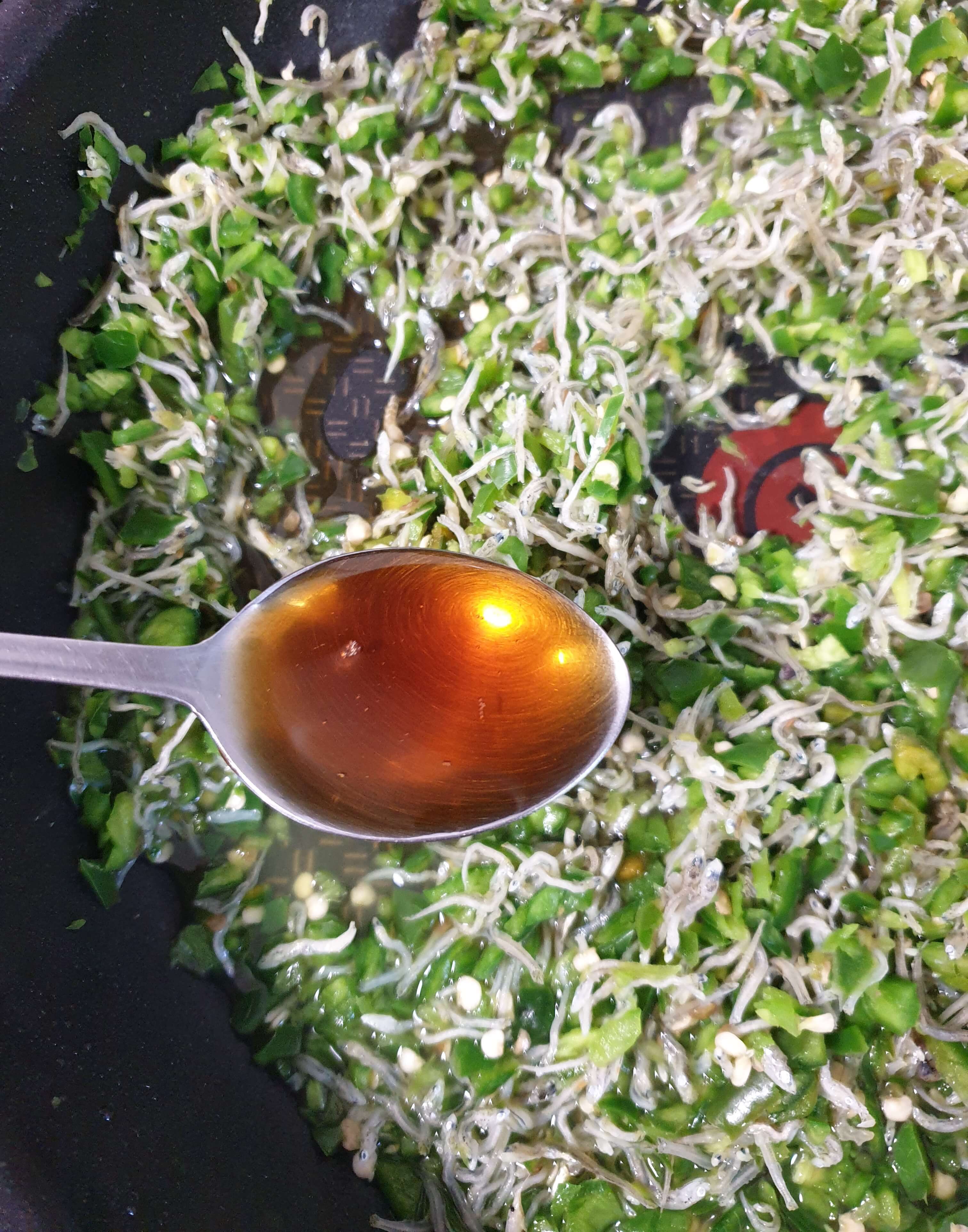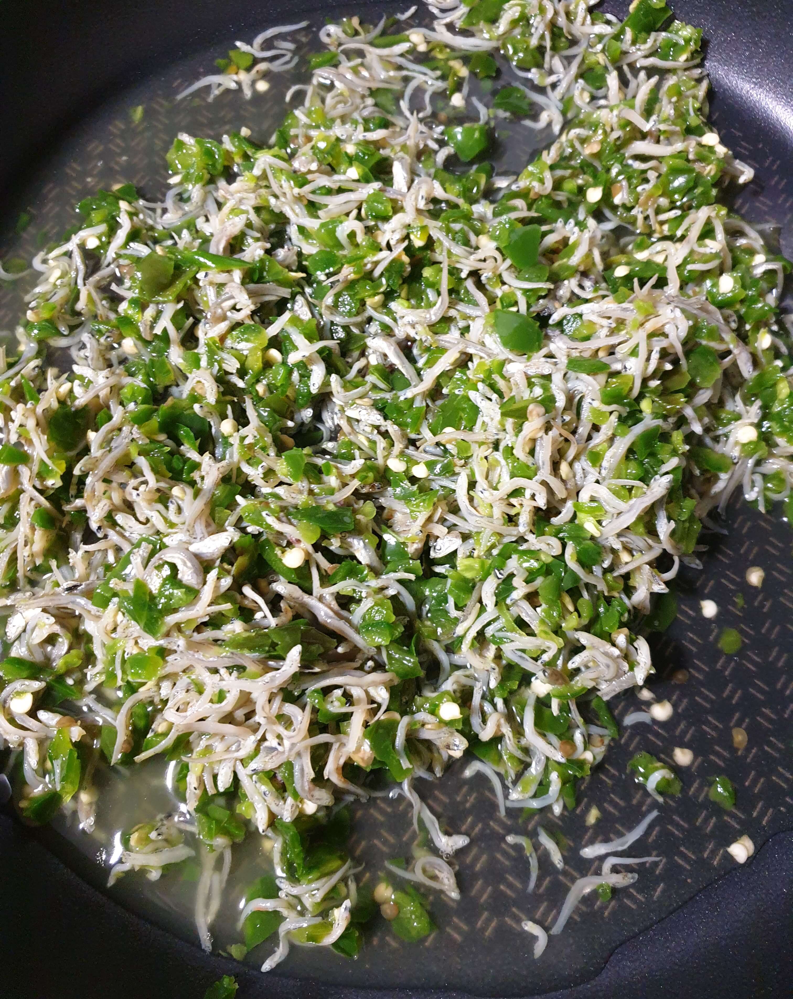 재료- 청양고추(매운 고추), 잔멸치, 오일