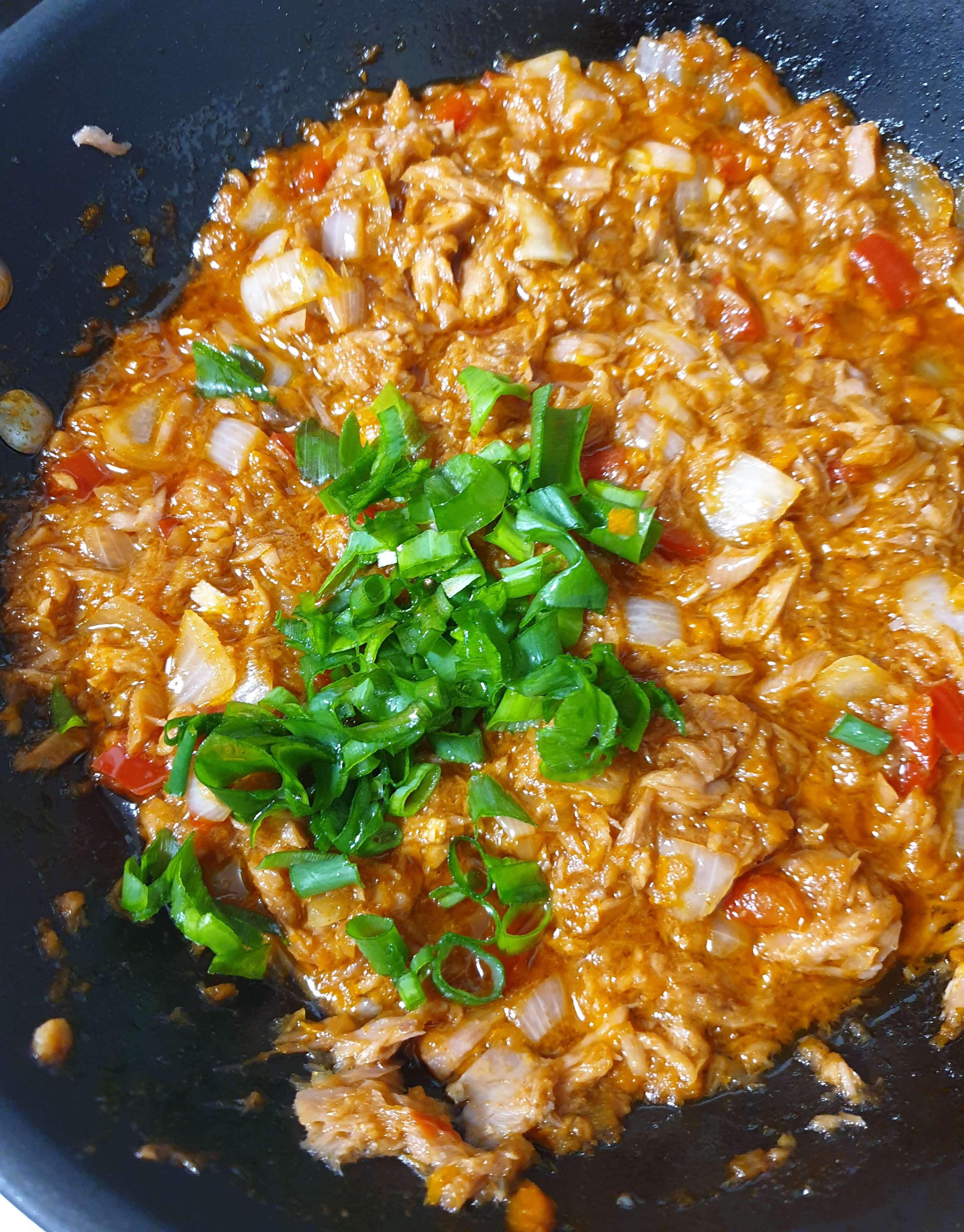 팬에 참치 기름을 먼저 다 넣어 주고