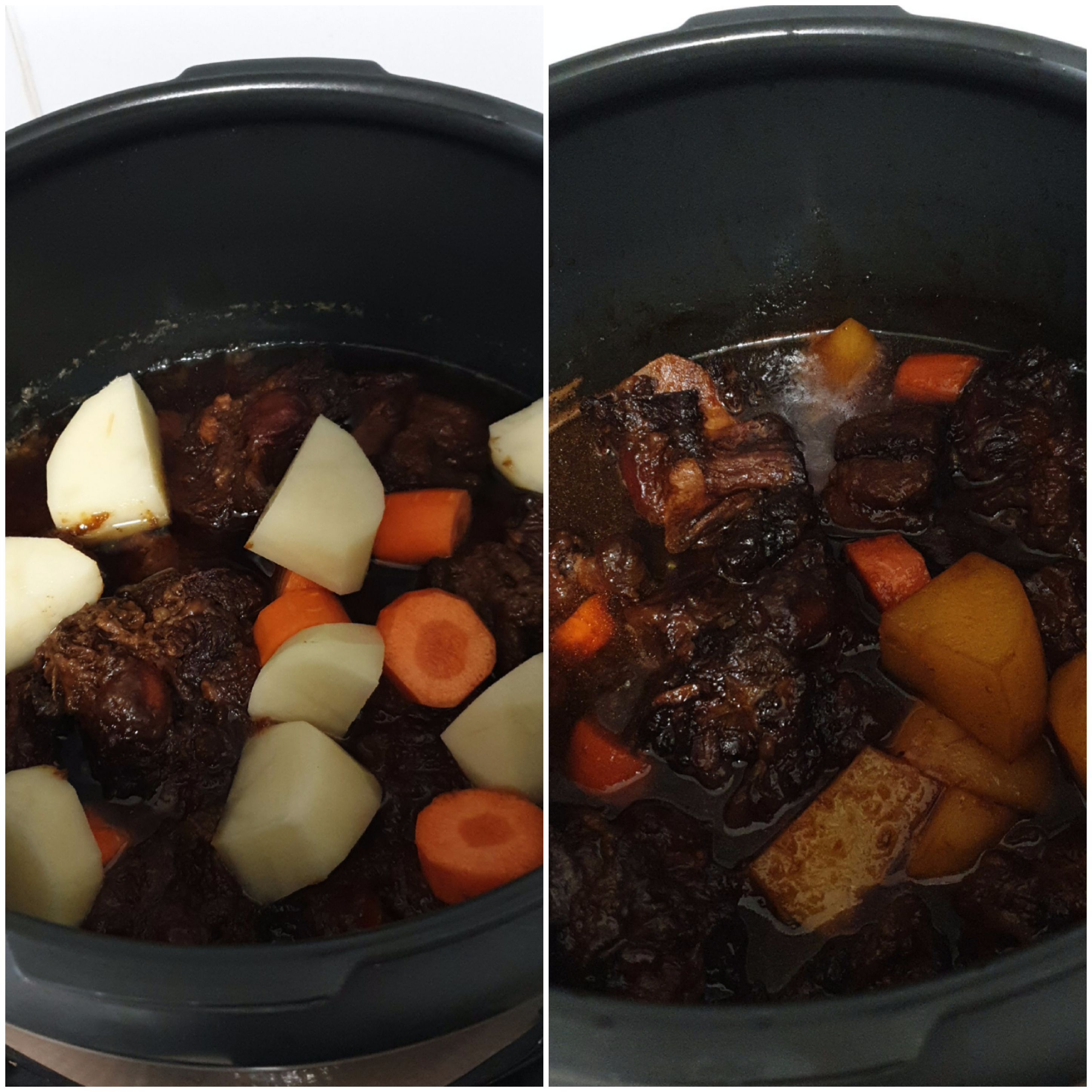 압력밥솥에 고기 먼저 넣고 양념을 부어줍니다