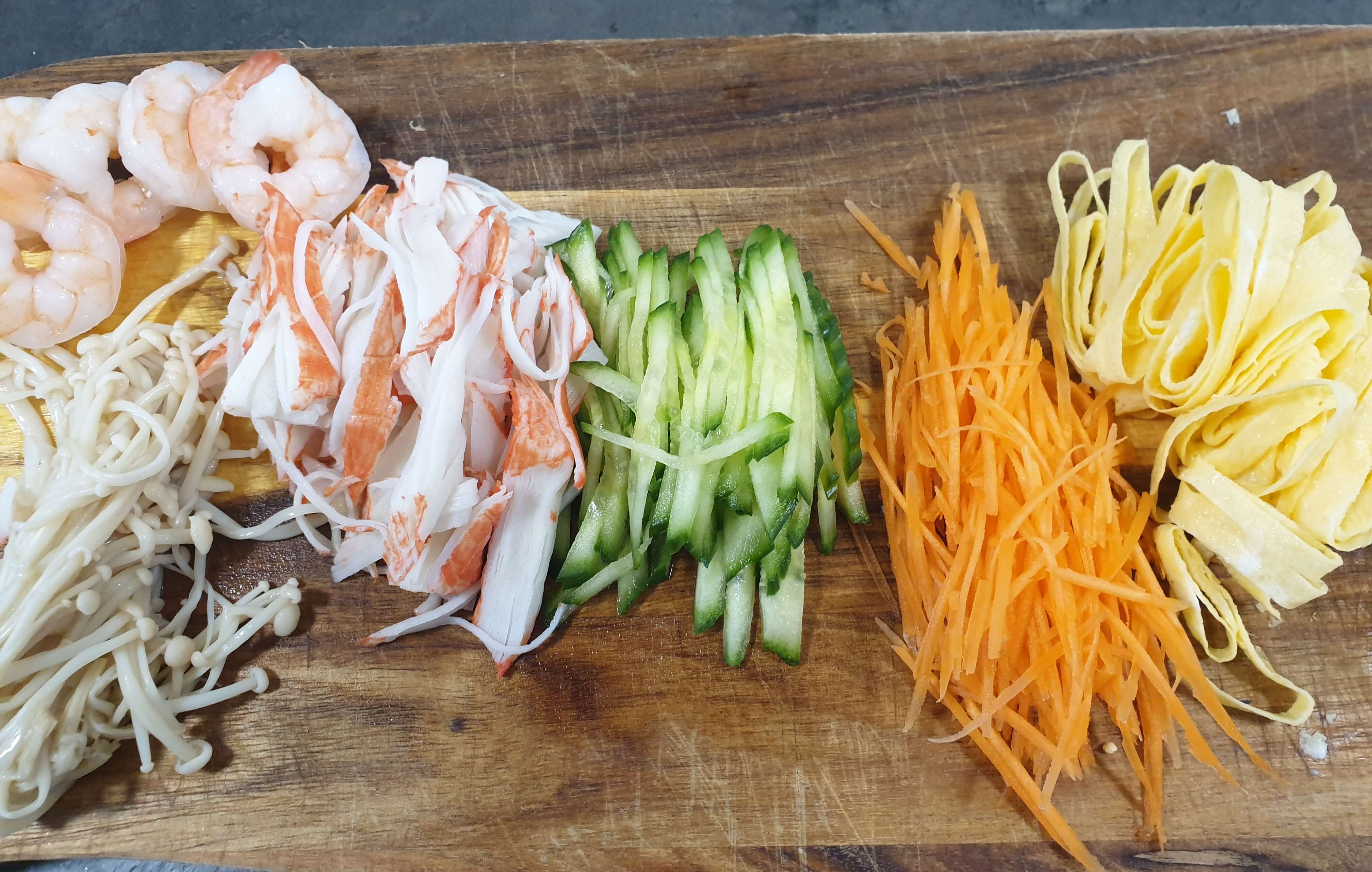 위에 얹을 고명이 다 준비됐어요