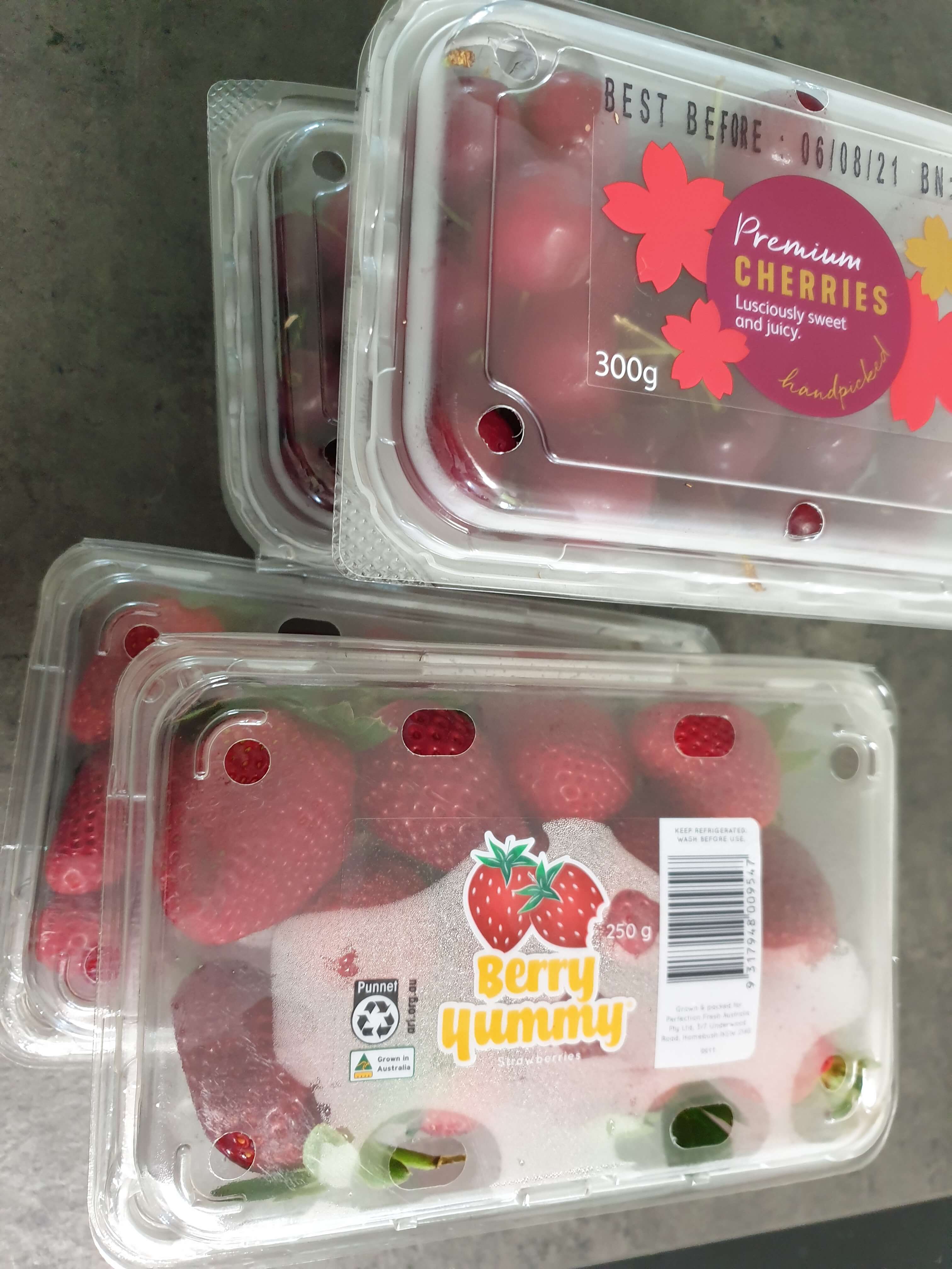 체리, 딸기, 사과 2 봉지는 전부다 두 개씩 사 왔어요