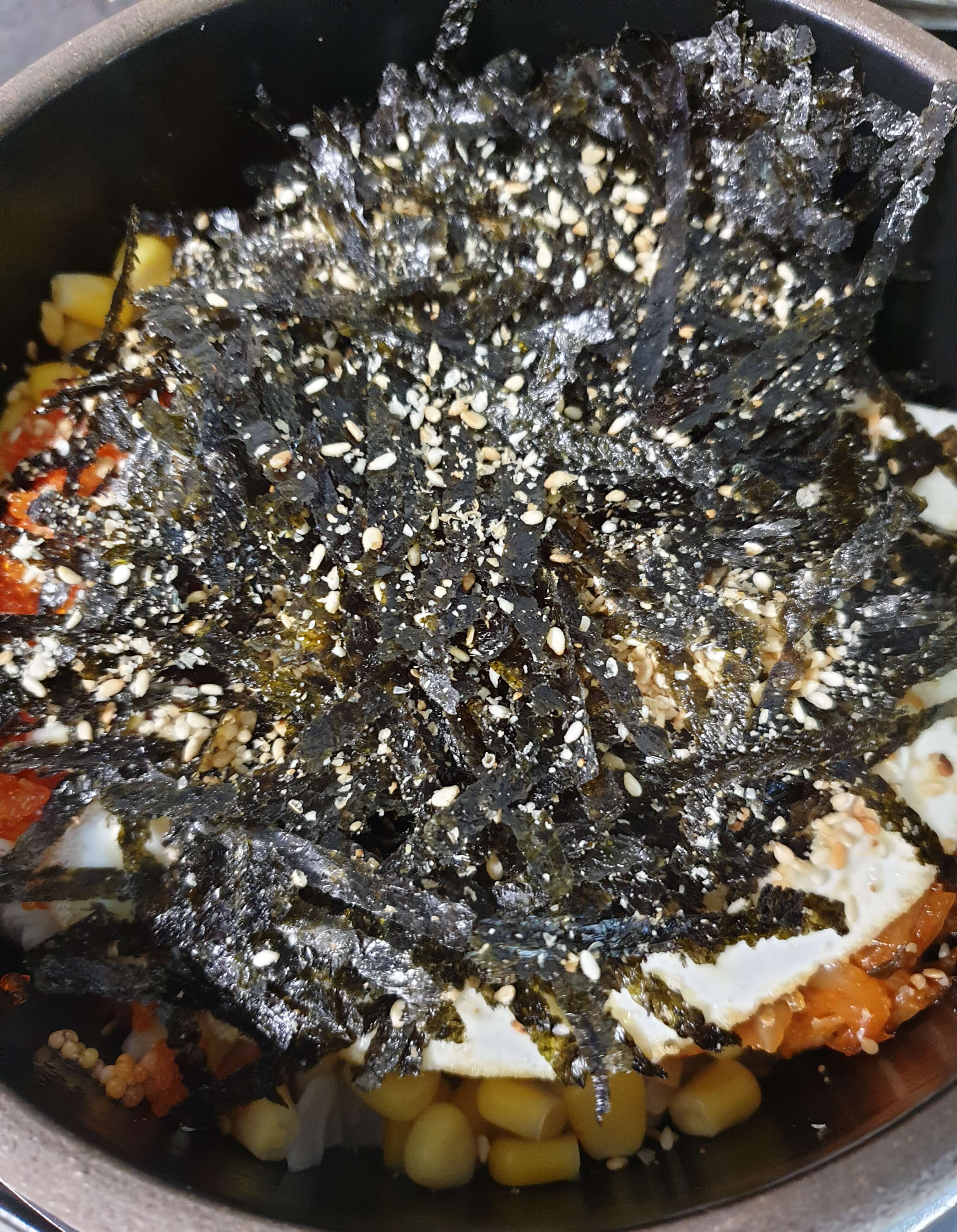 넣고 싶은 야채, 옥수수 (단무지), 김가루, 깨소금