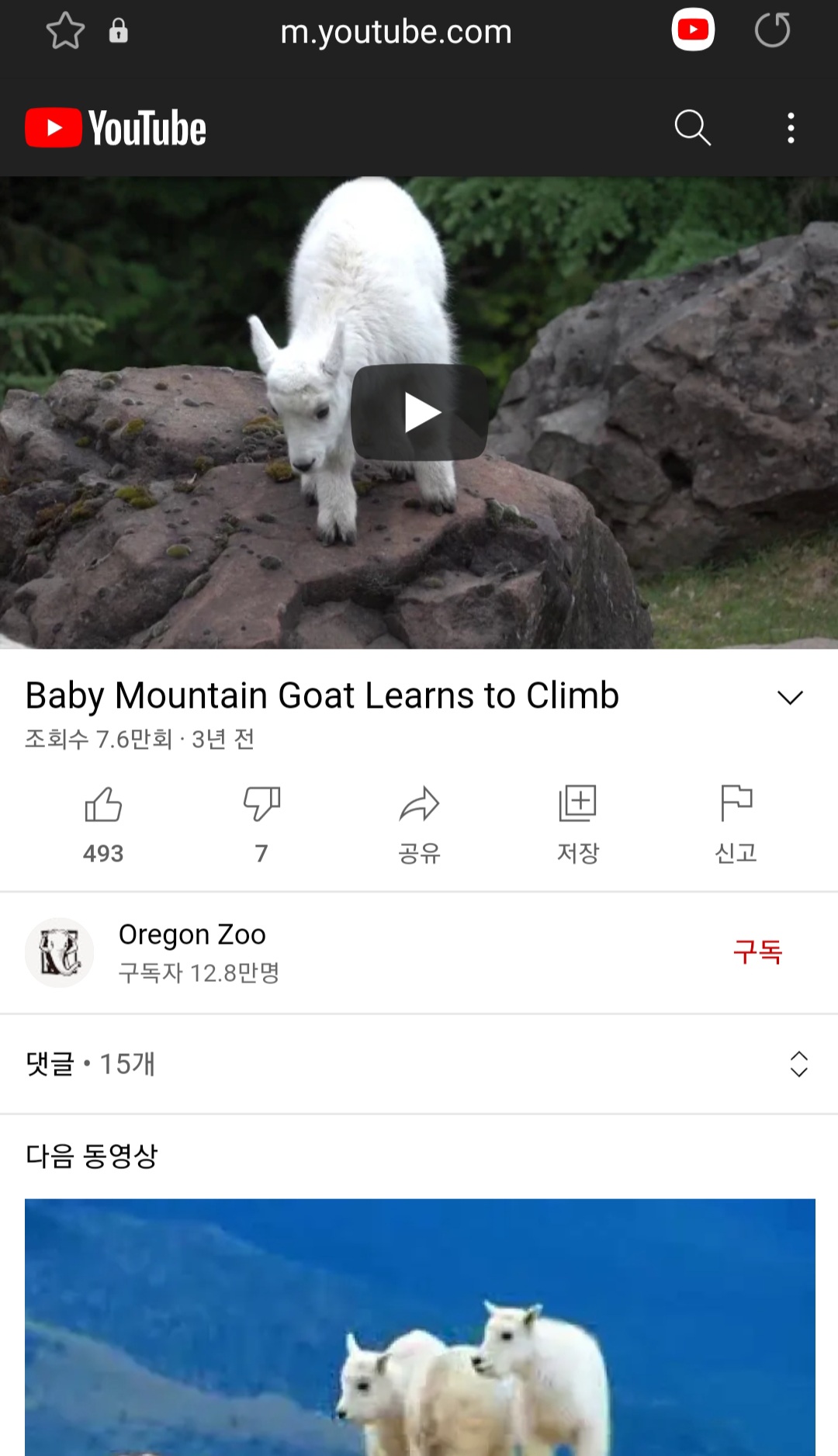 갑자기 유튜브로 연결되더니 아기 산양이 나오더라고요?ㅋㅋㅋ
