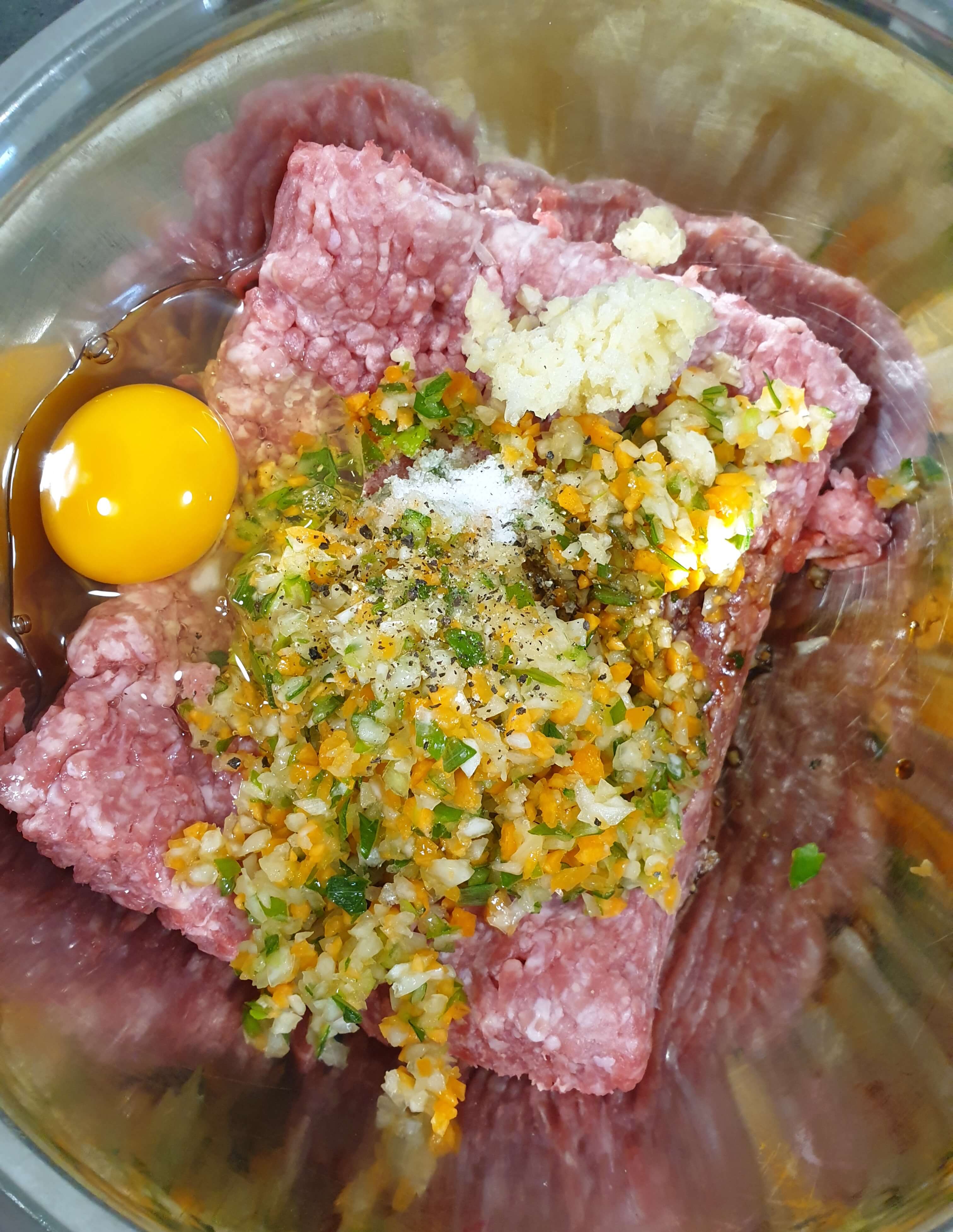 오늘의 요리 아이랑 어른이랑 같이 먹을 만한 반찬으로 애호박 고기전을 만들었어요 돼지고기만 넣어 만들까 소고기랑 섞어 만들까 했는데 돼지고기랑 송아지 고기 섞은 민스를 팔더라고요 고