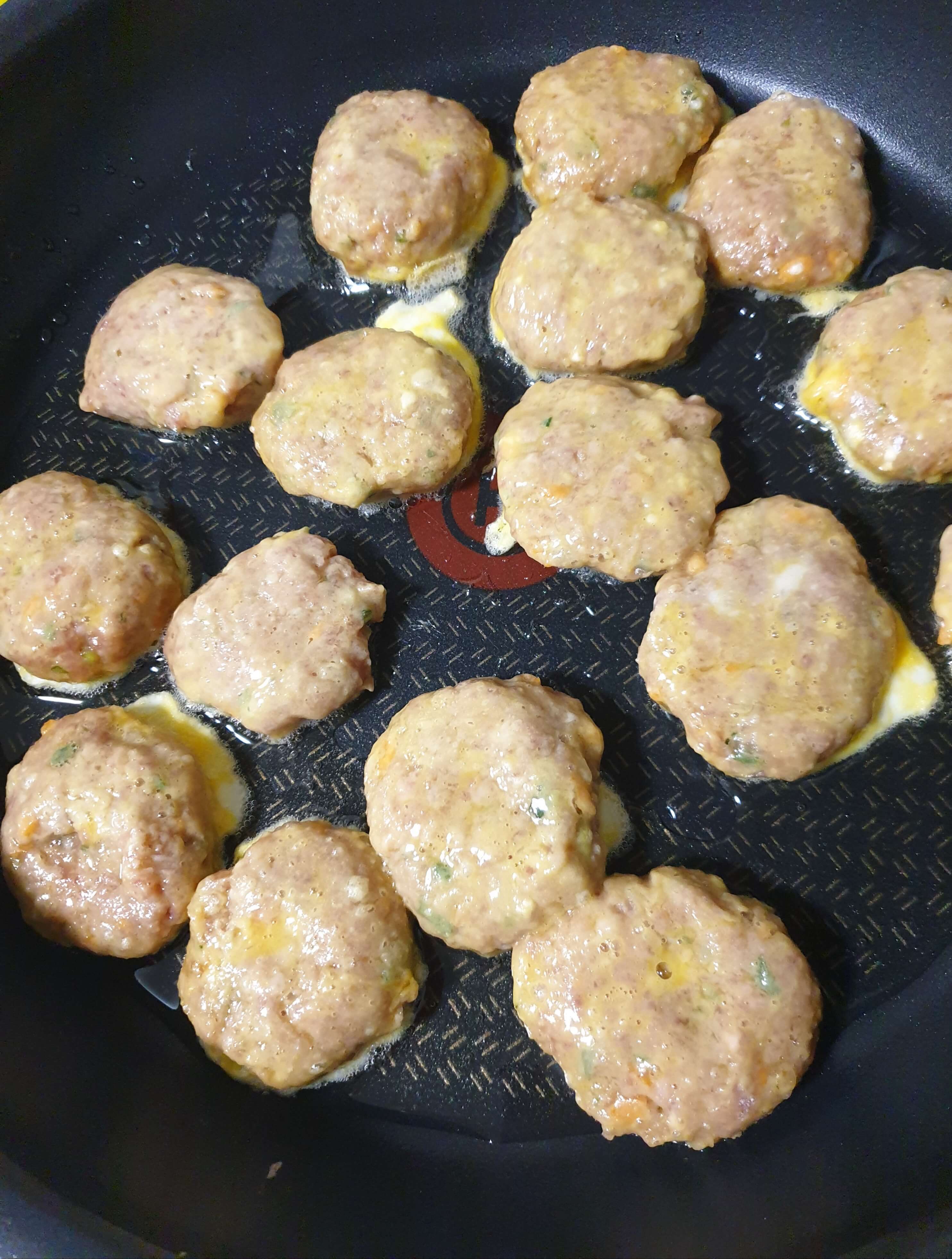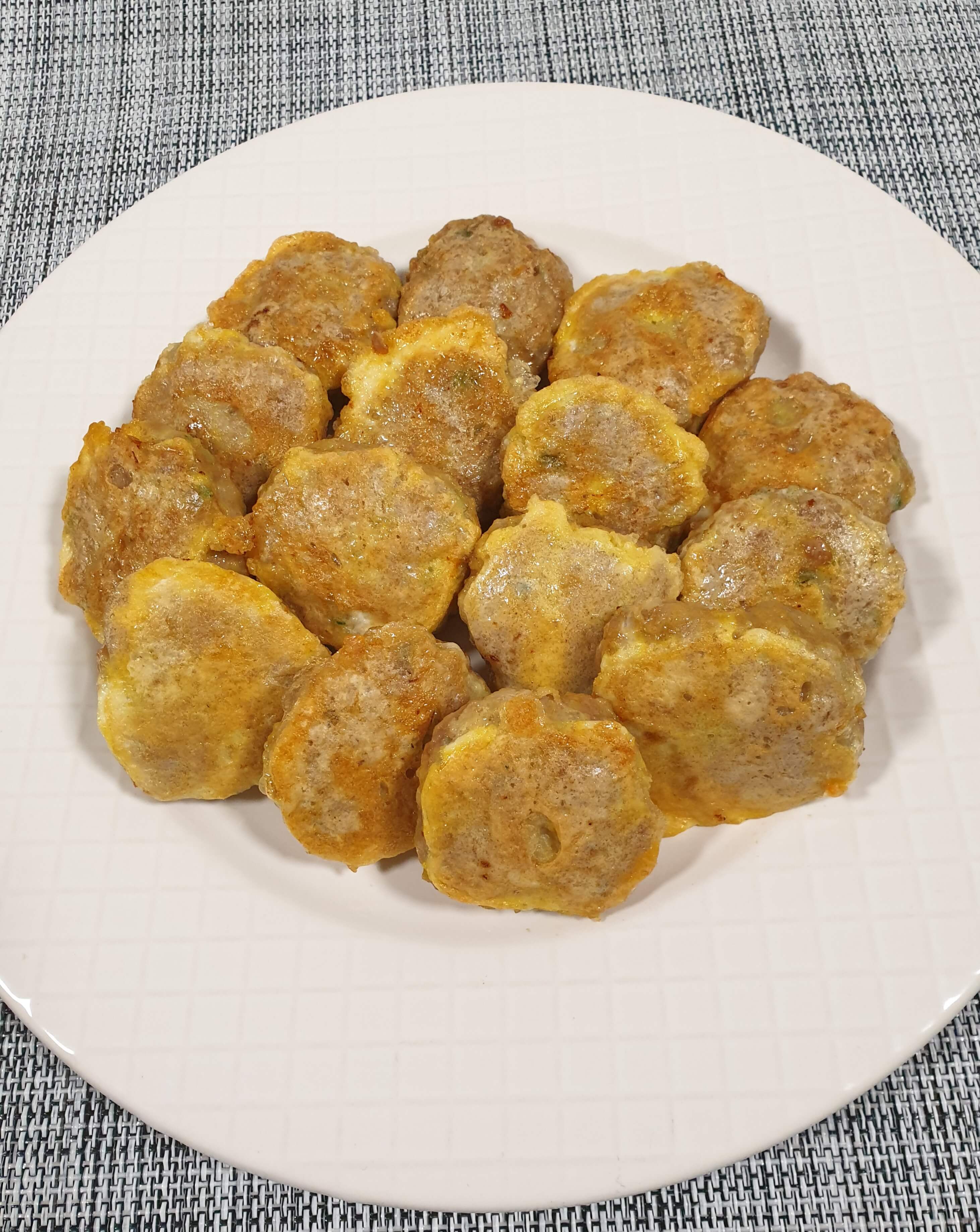 오늘의 요리 남편이 오랜만에 고추 튀김이 먹고 싶다고 해서 고추튀김 재료 준비하면서 속재료가 남길래 만드는 김에 깻잎전과 동그랑땡까지 만들었어요 재료- 돼지고기 다짐육, 다진 야채, 다