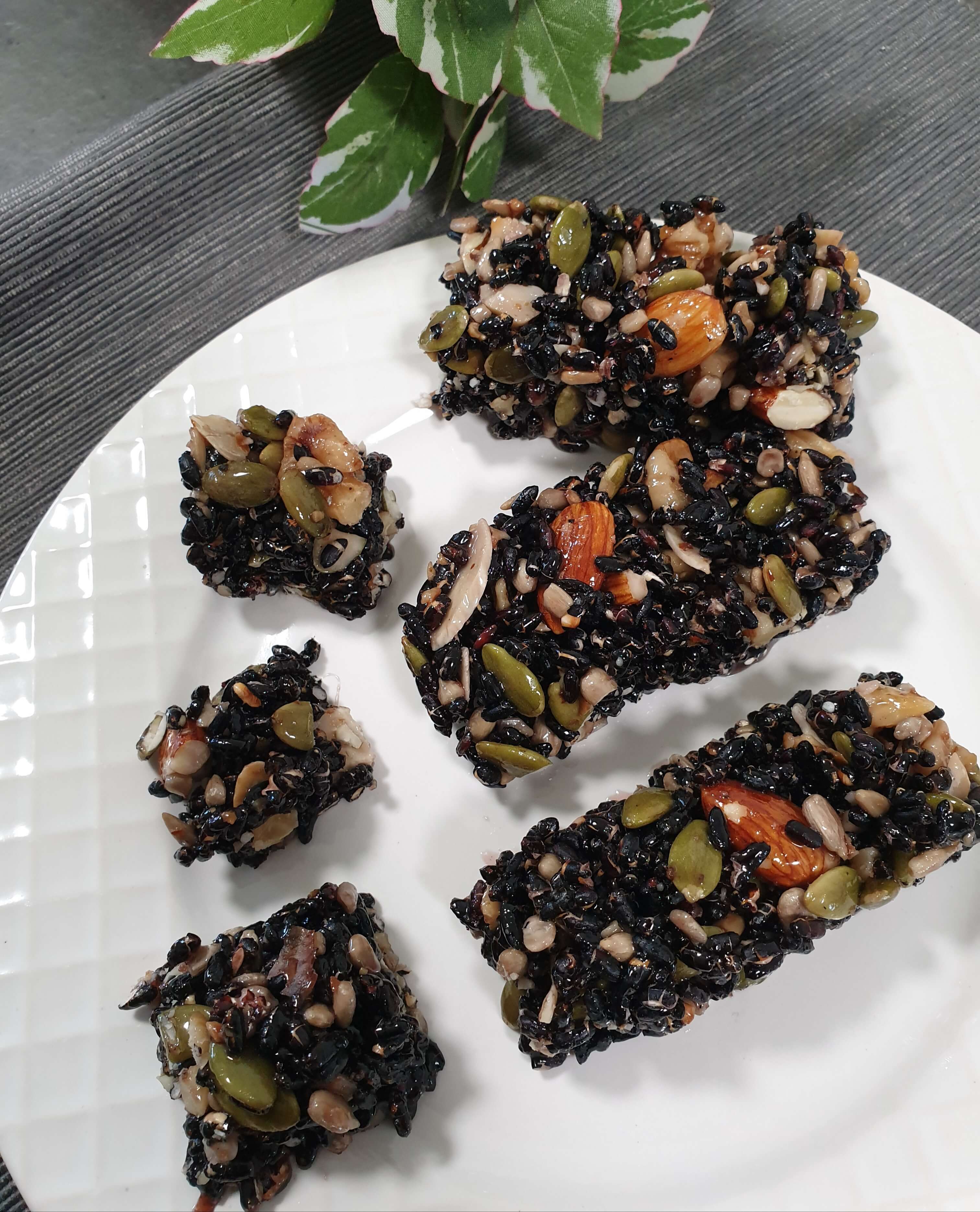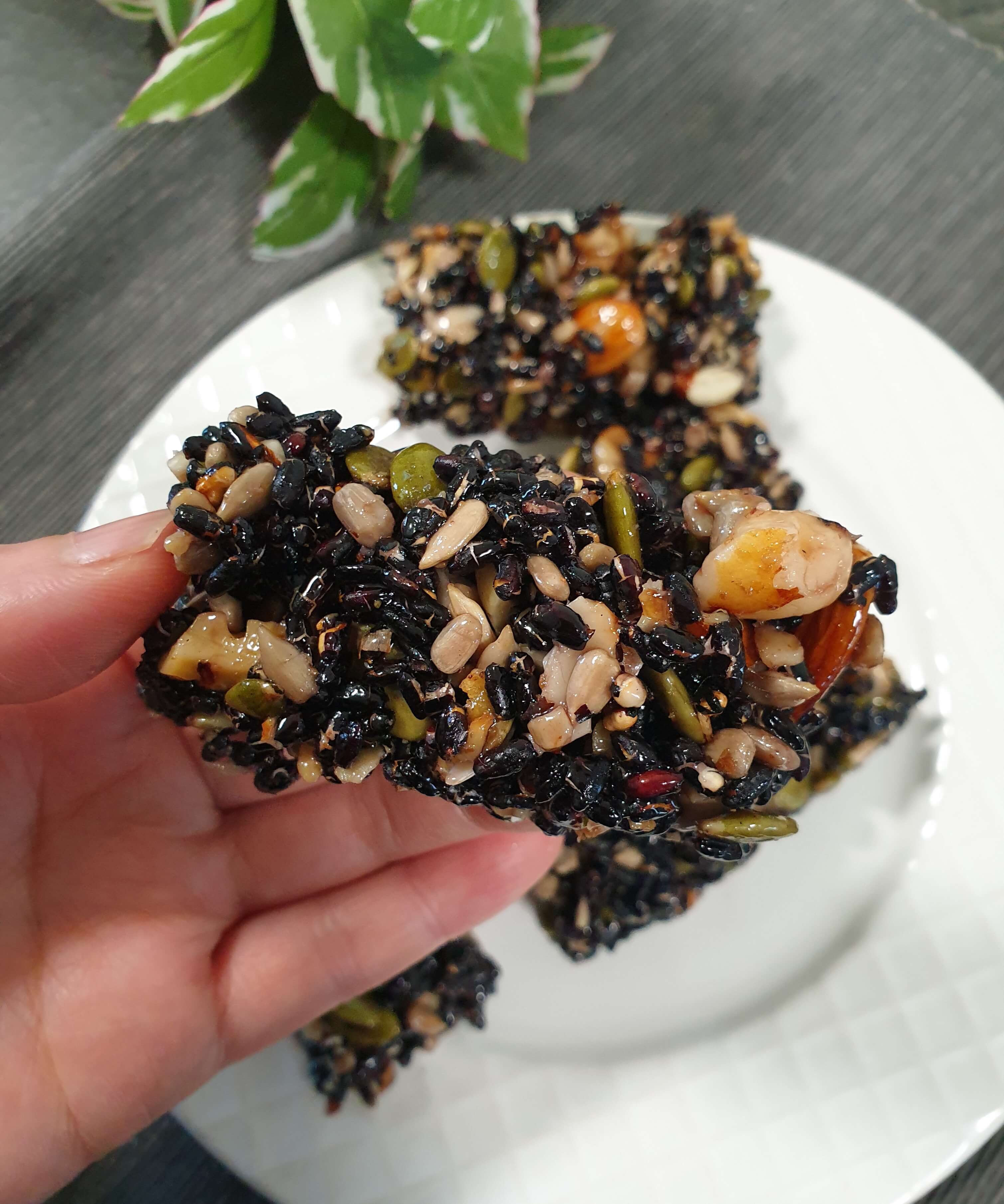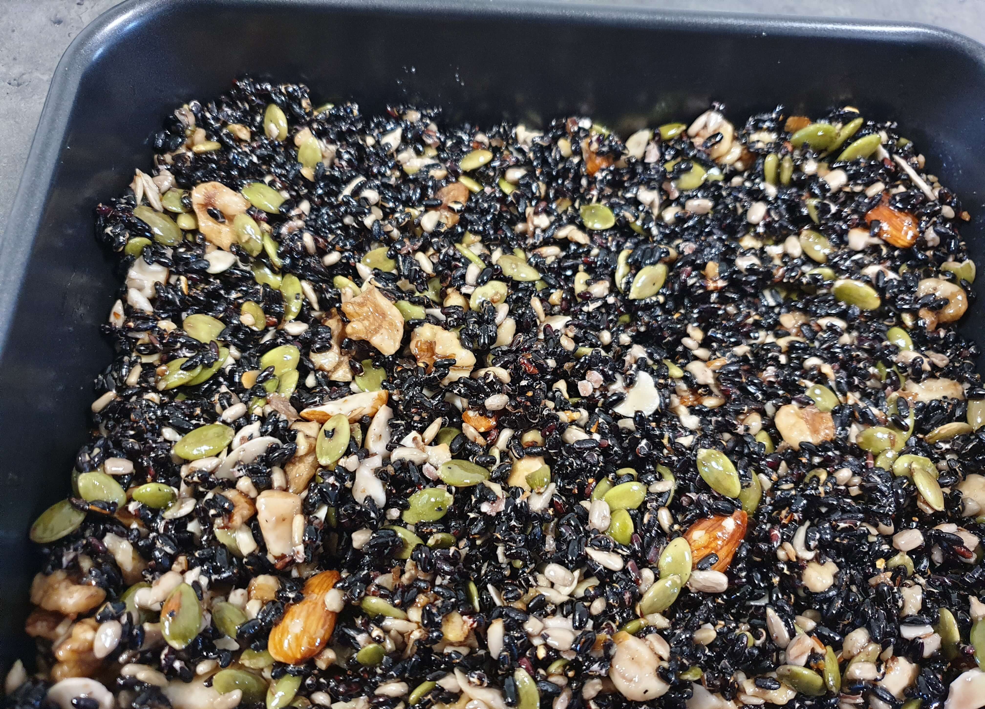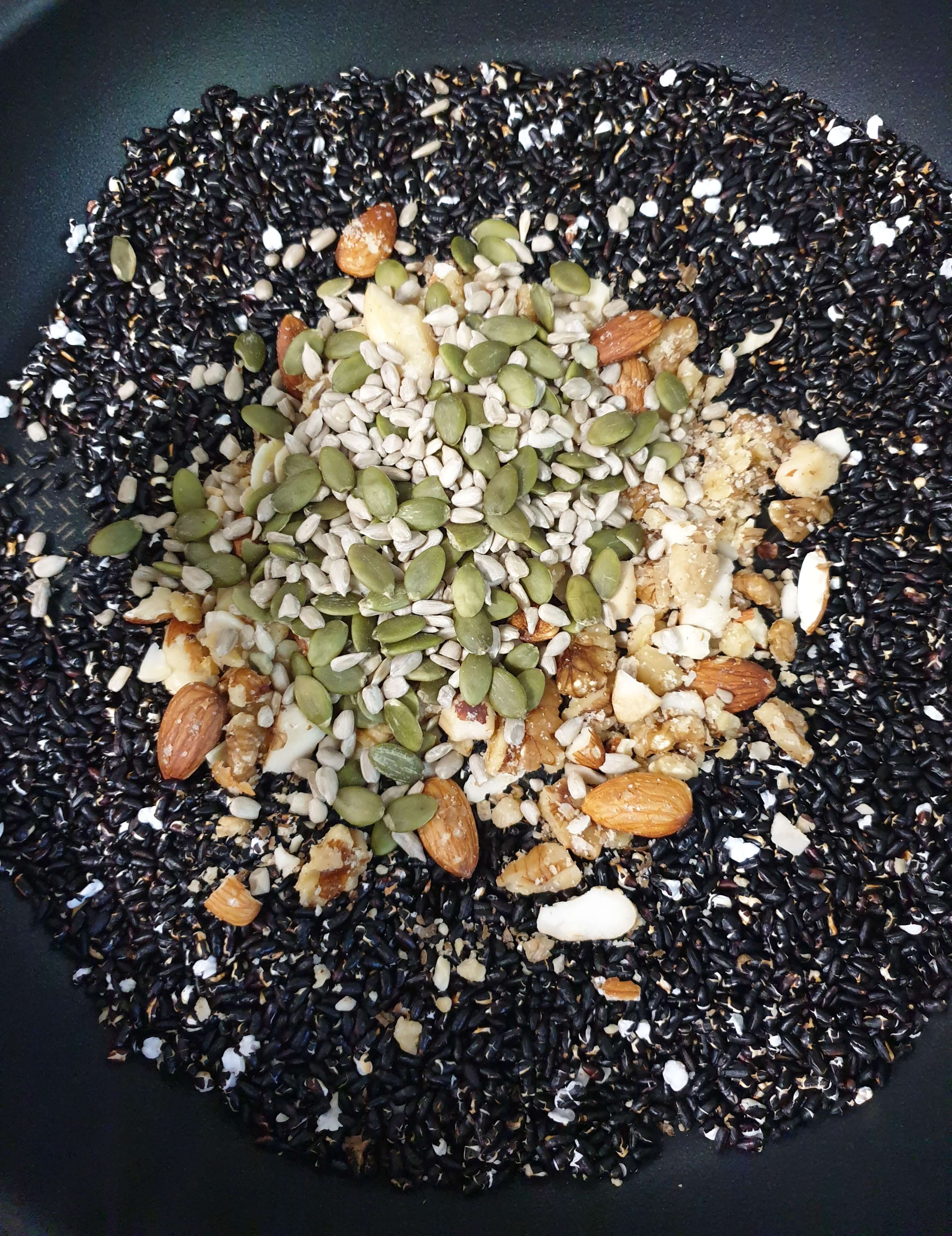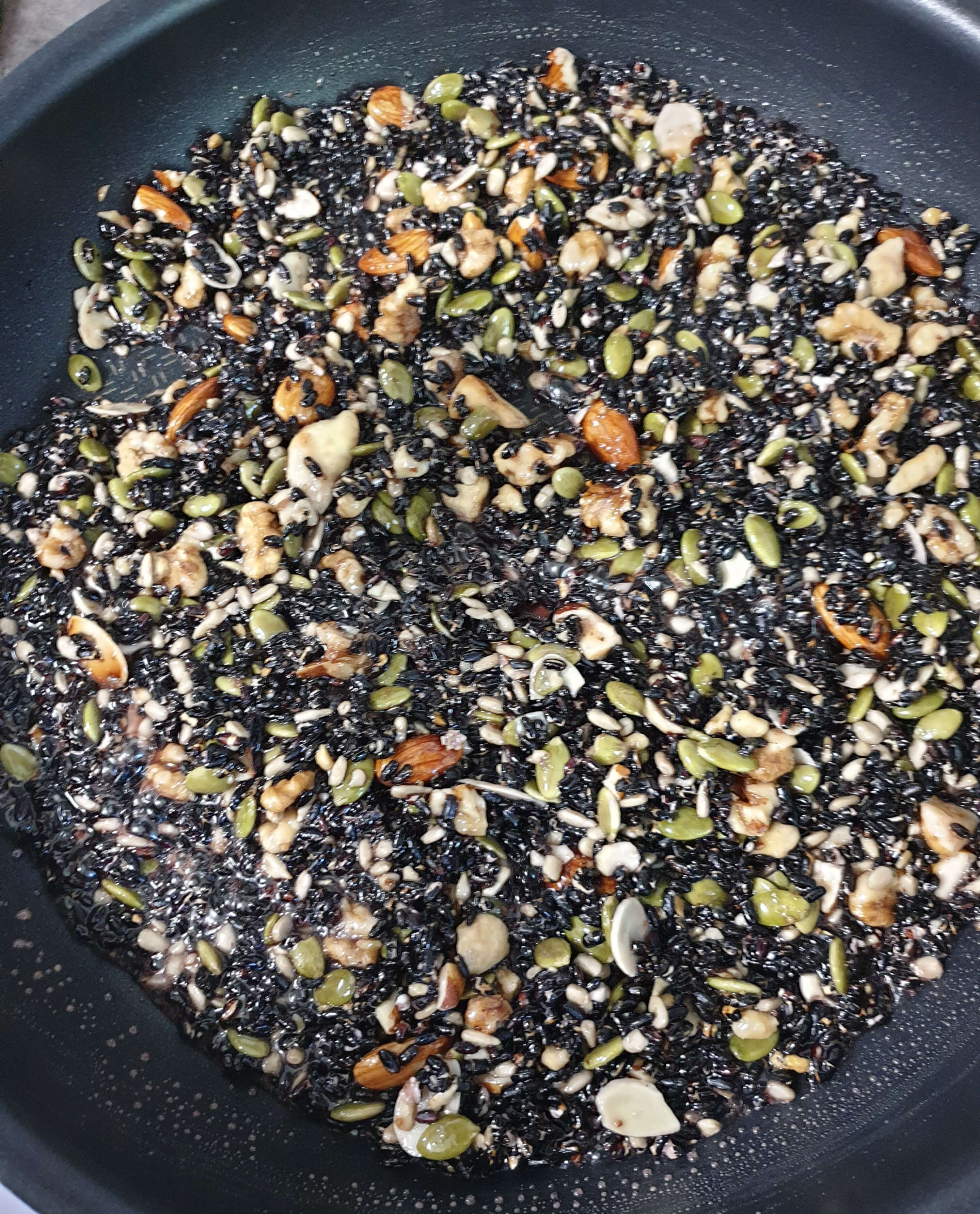재료- 흑미, 종합 견과류, 조청 or 꿀 , 참기름