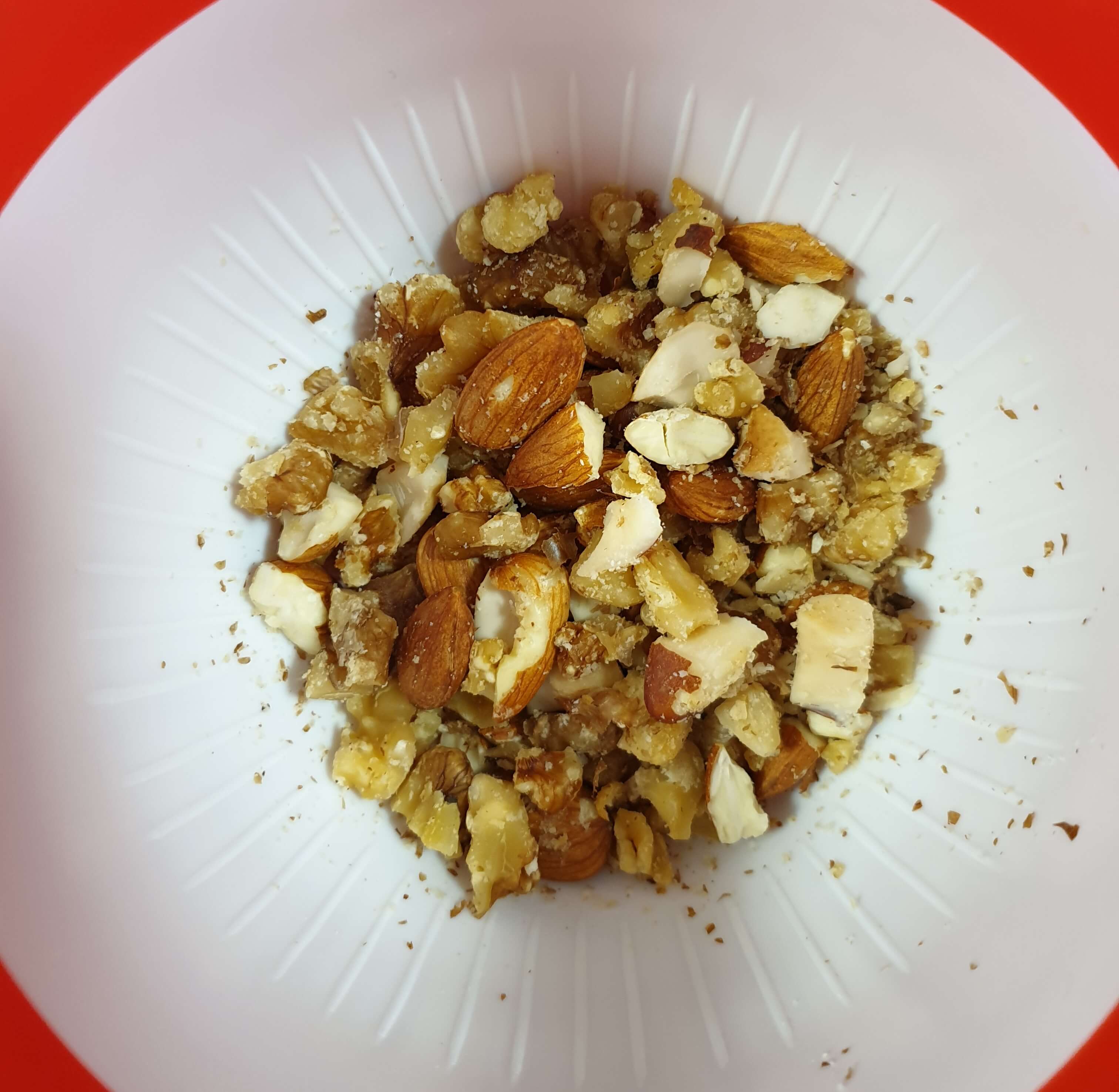 큰 견과류들은 먹기 좋게 잘라주세요.