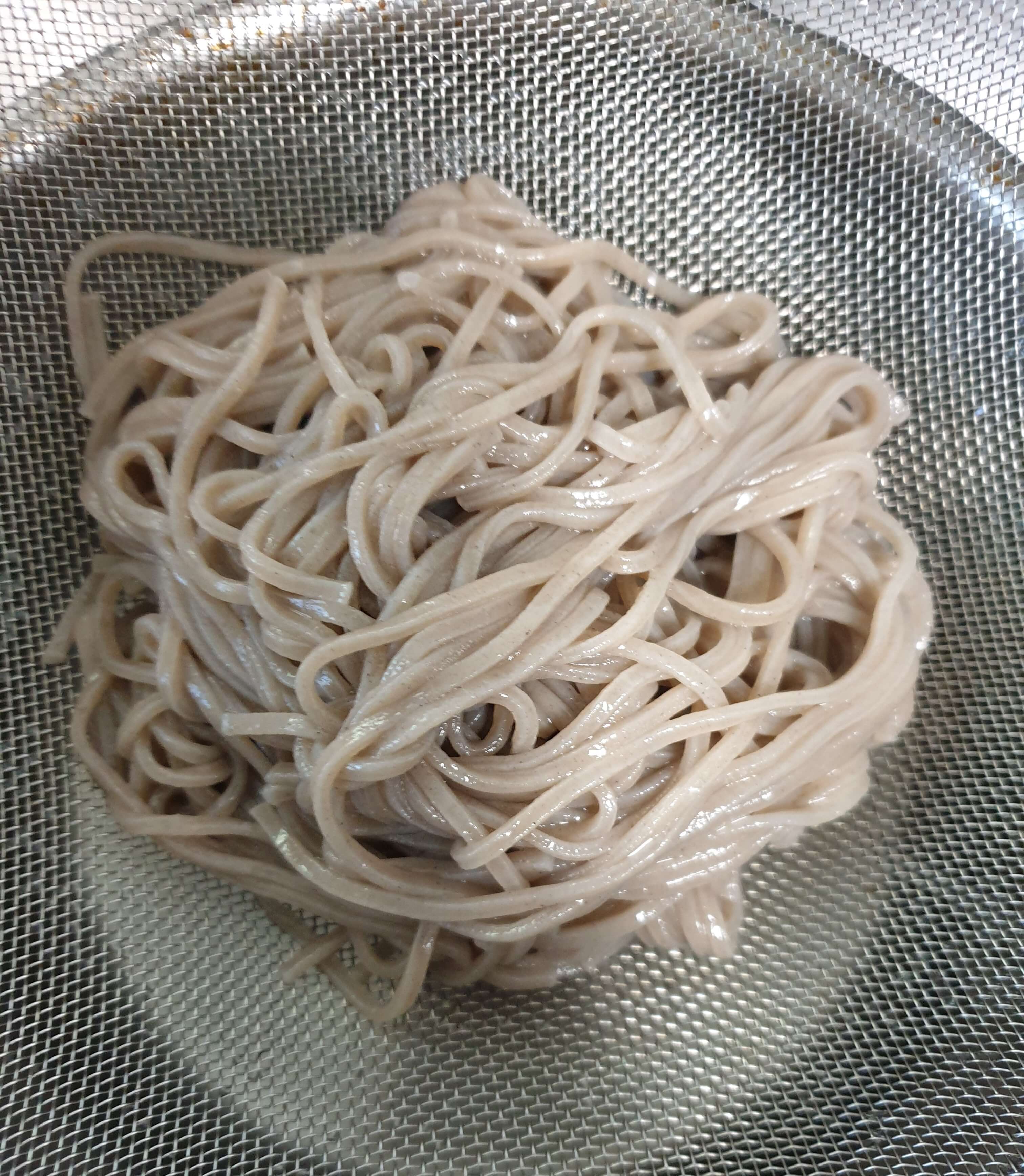 찬물에 헹군 후 체에 밭쳐 물기를 빼고