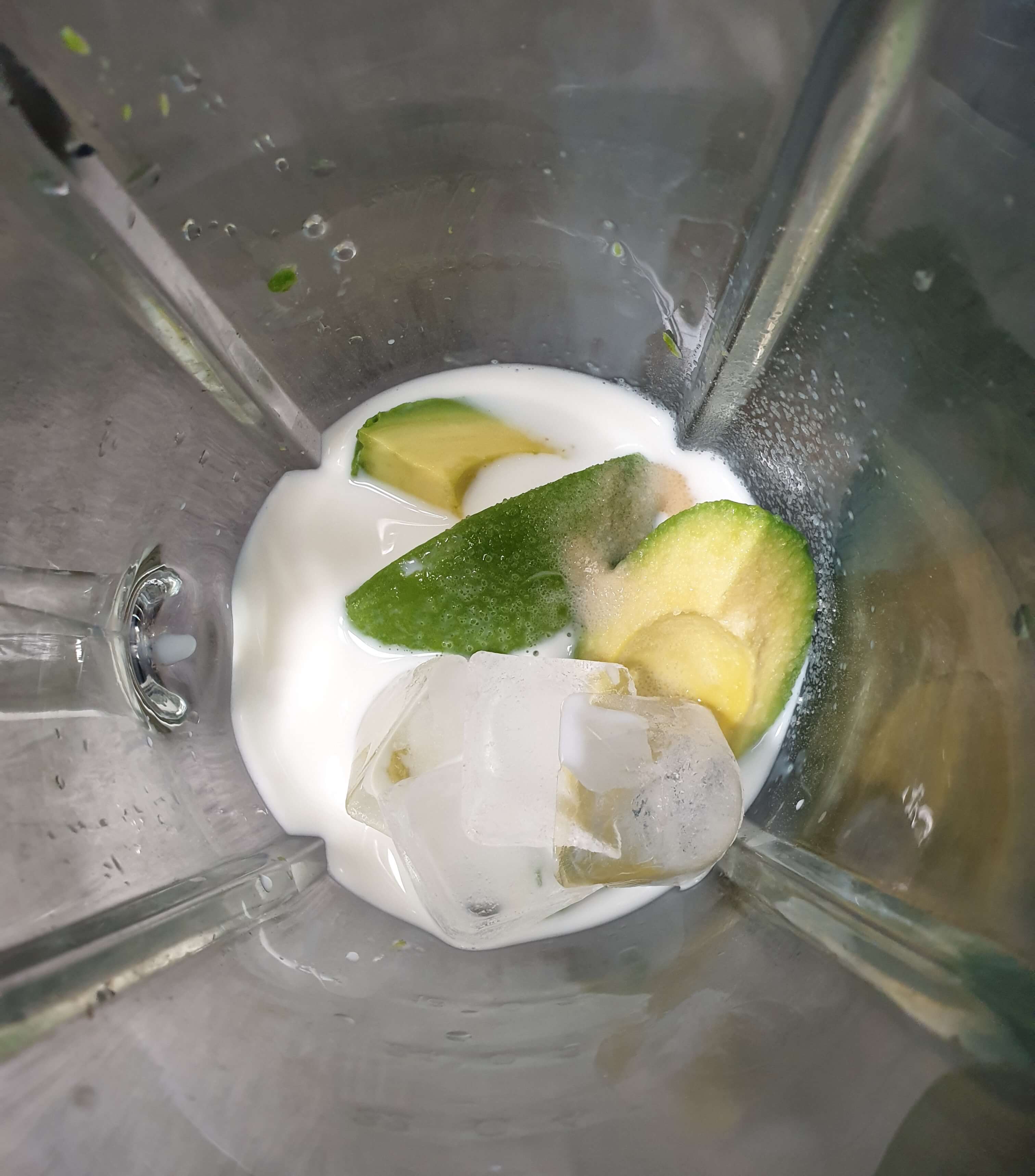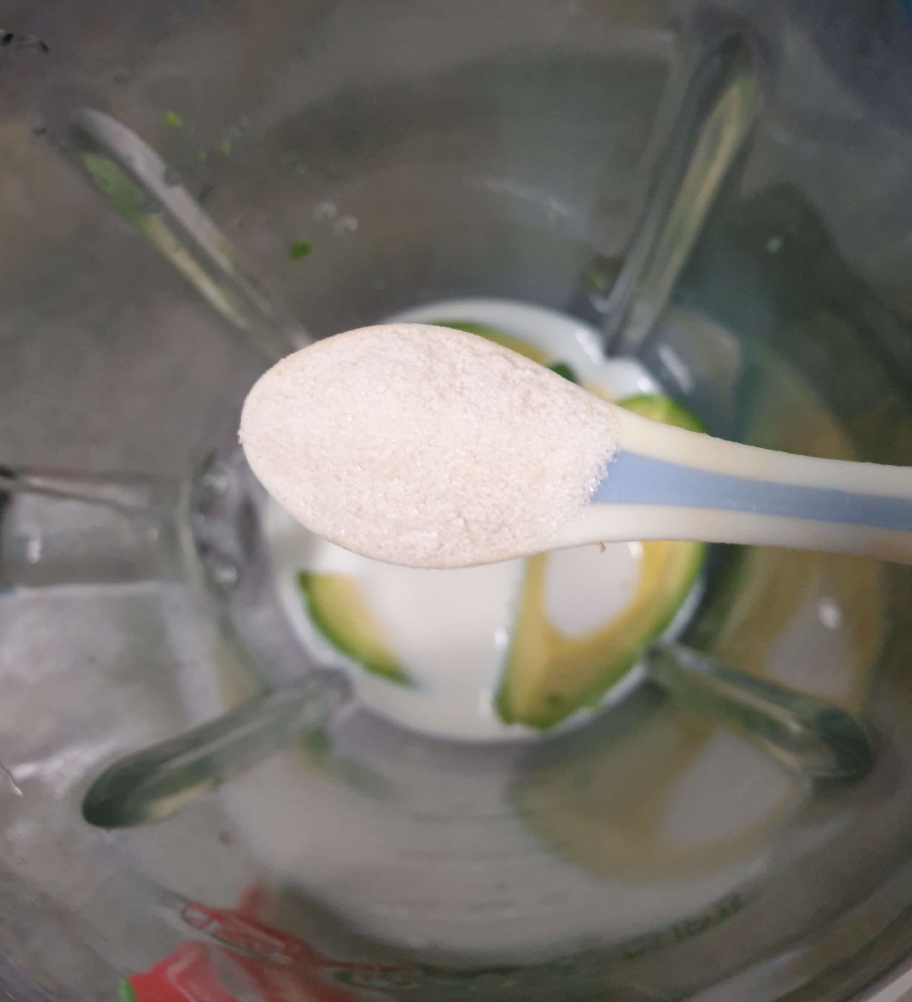 재료- 아보카도, 설탕(스테비아), 얼음