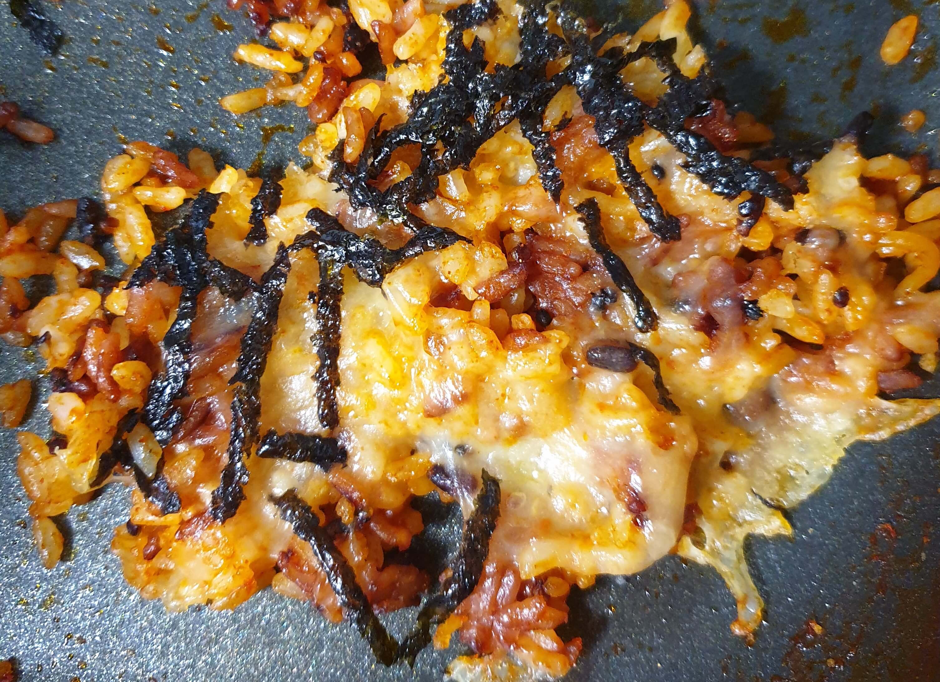 라볶이 자체는 너무 달아서 그냥 그랬는데 국물 좀 버리고 참기름 쪼록 넣고 밥 볶아서 모짜렐라 치즈랑 김가루 듬뿍 뿌려 먹은 게 너무 맛있었어요. 밥도 적당히 눌어 가지고 짱 맛!!