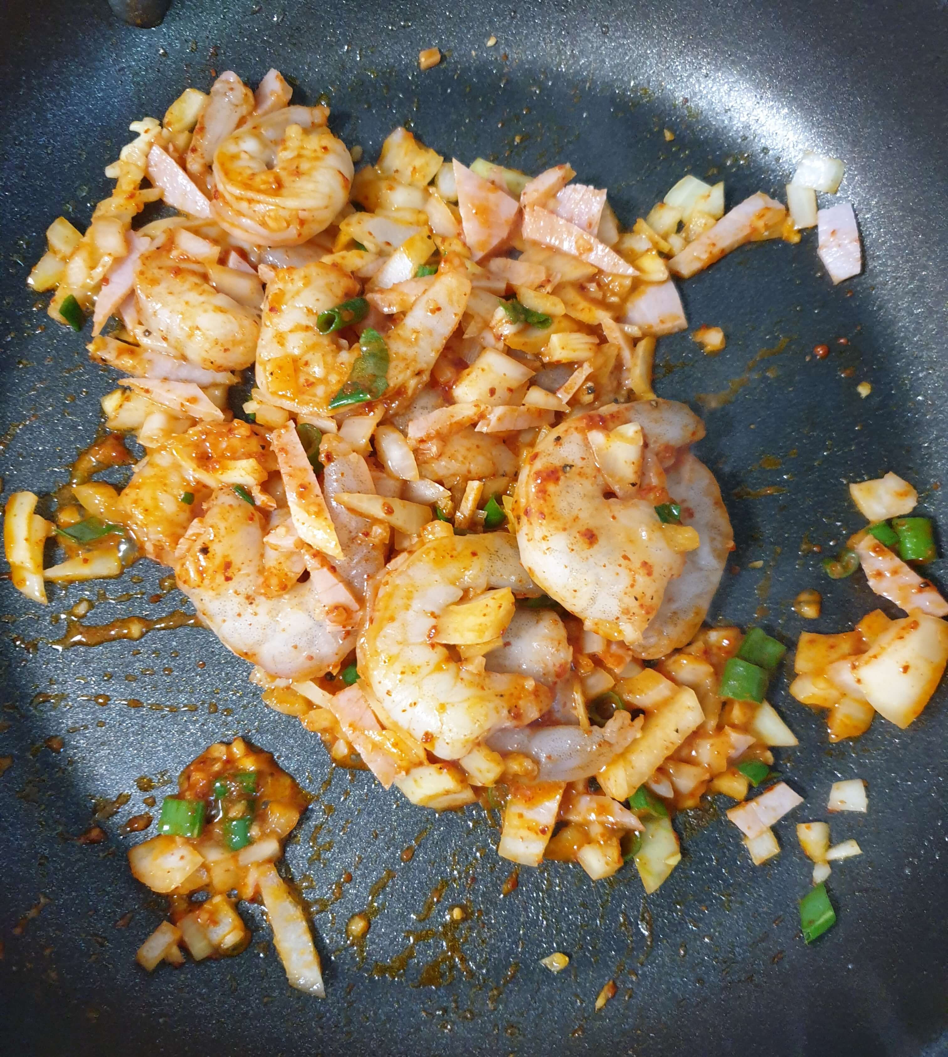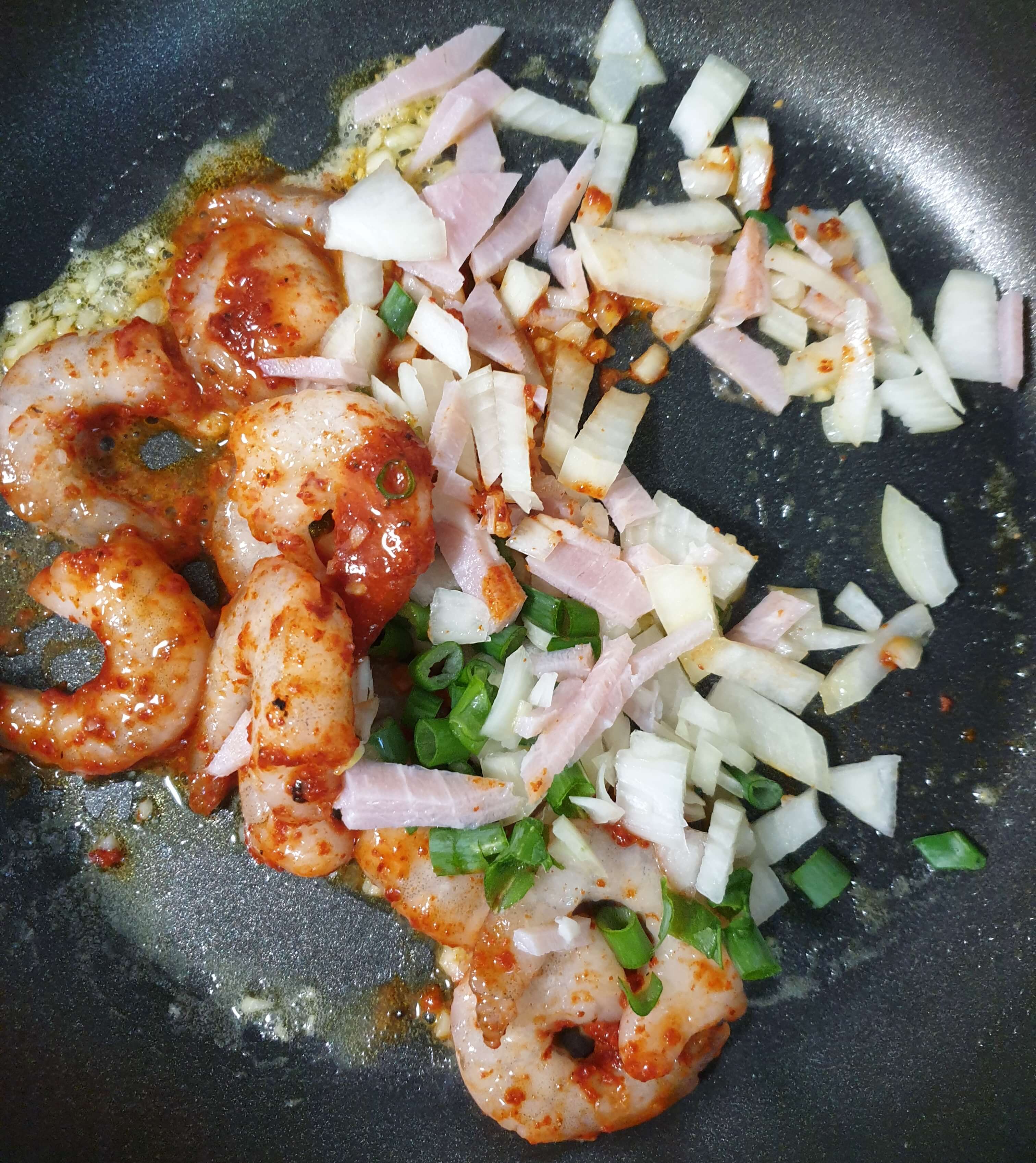 새우 밑간: 고춧가루, 미림, 소금, 후추 약간