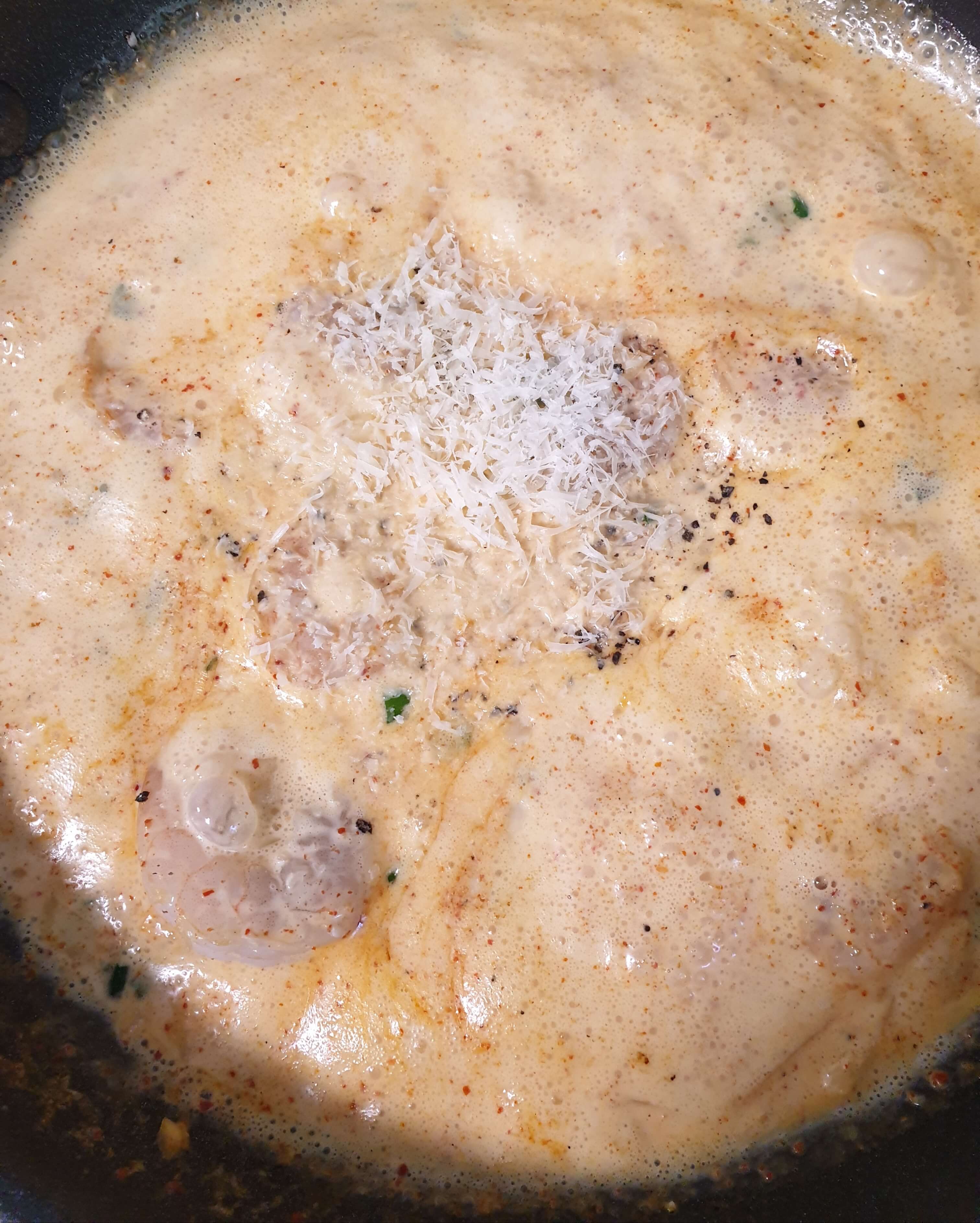 후추와 파마산 치즈를 뿌려 마무리해줍니다.