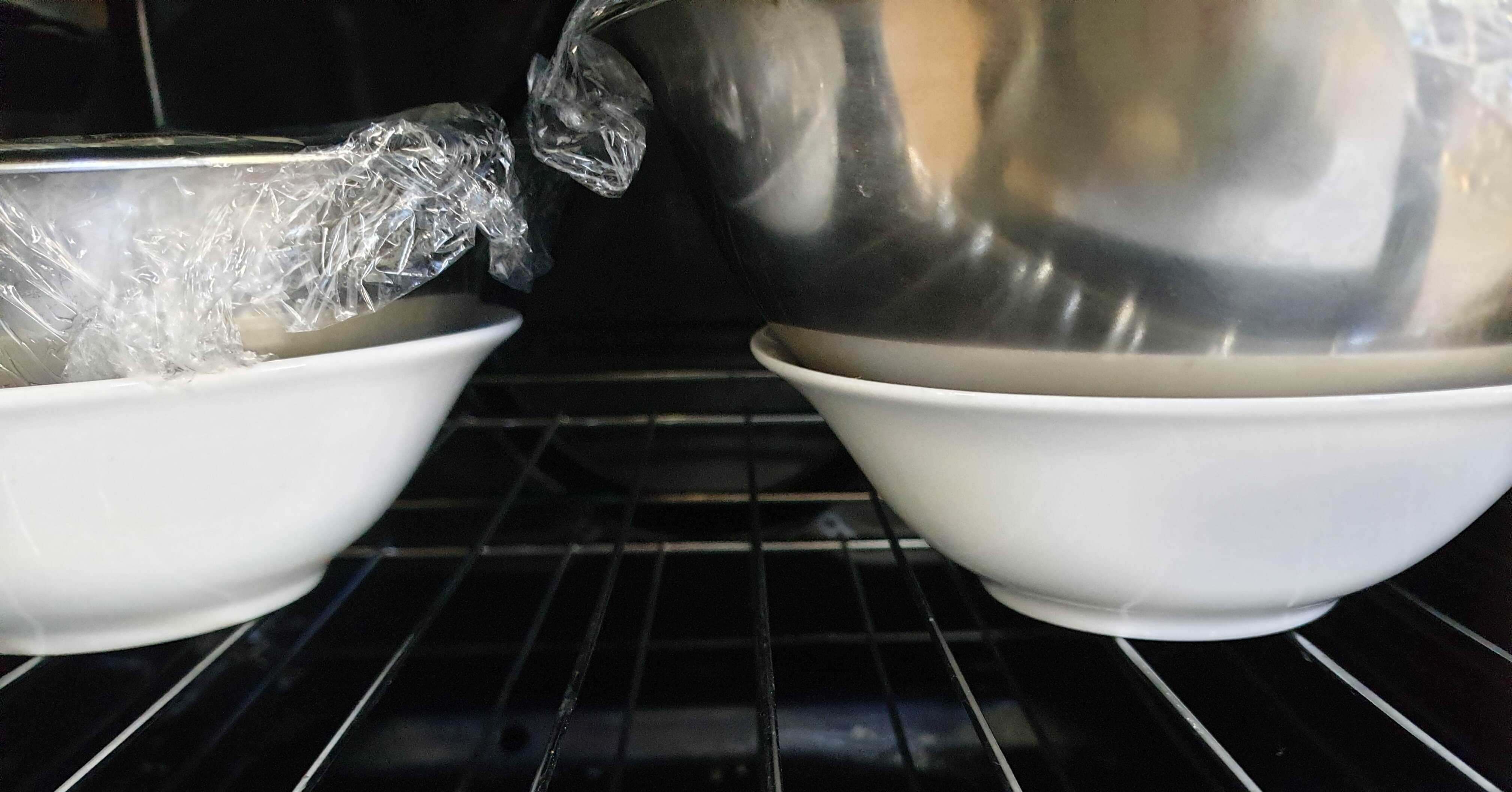 오븐기 안에서 1시간 동안 1차 발효해주었어요.