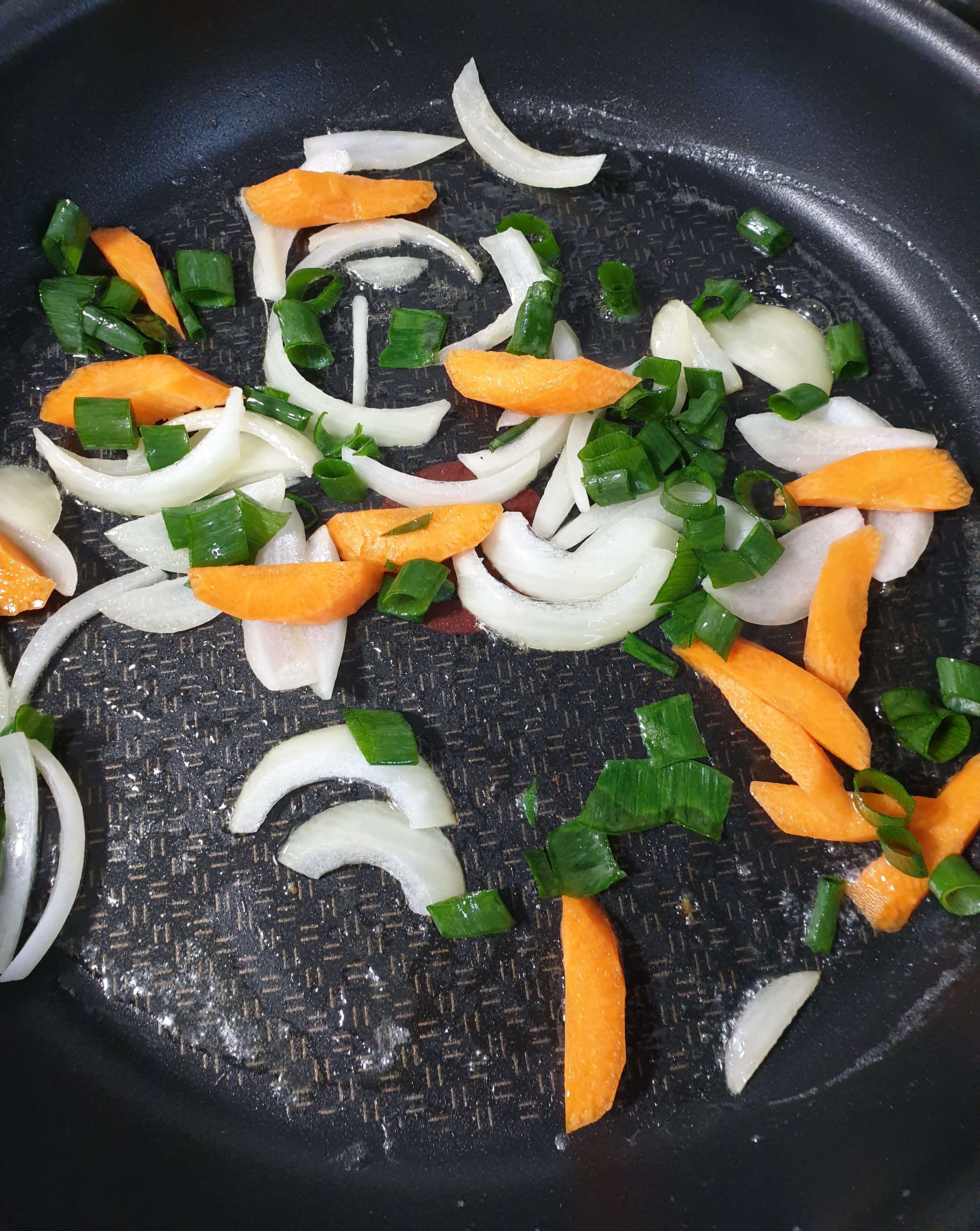 볶아주다가 파와 당근도 넣어서 볶아 주세요.