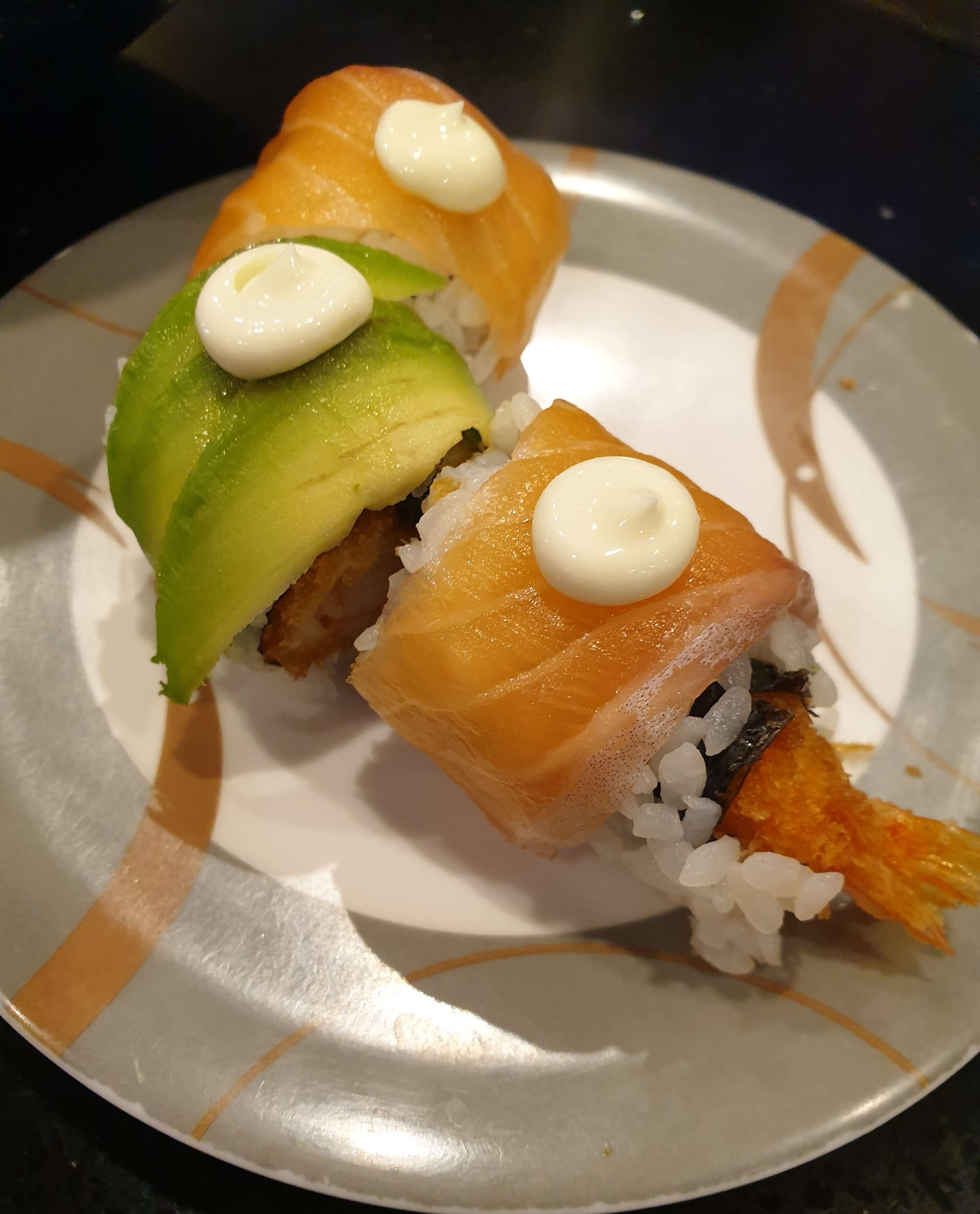 트레인 위에 있는 초밥들은 거의다 롤 초밥이었어요.