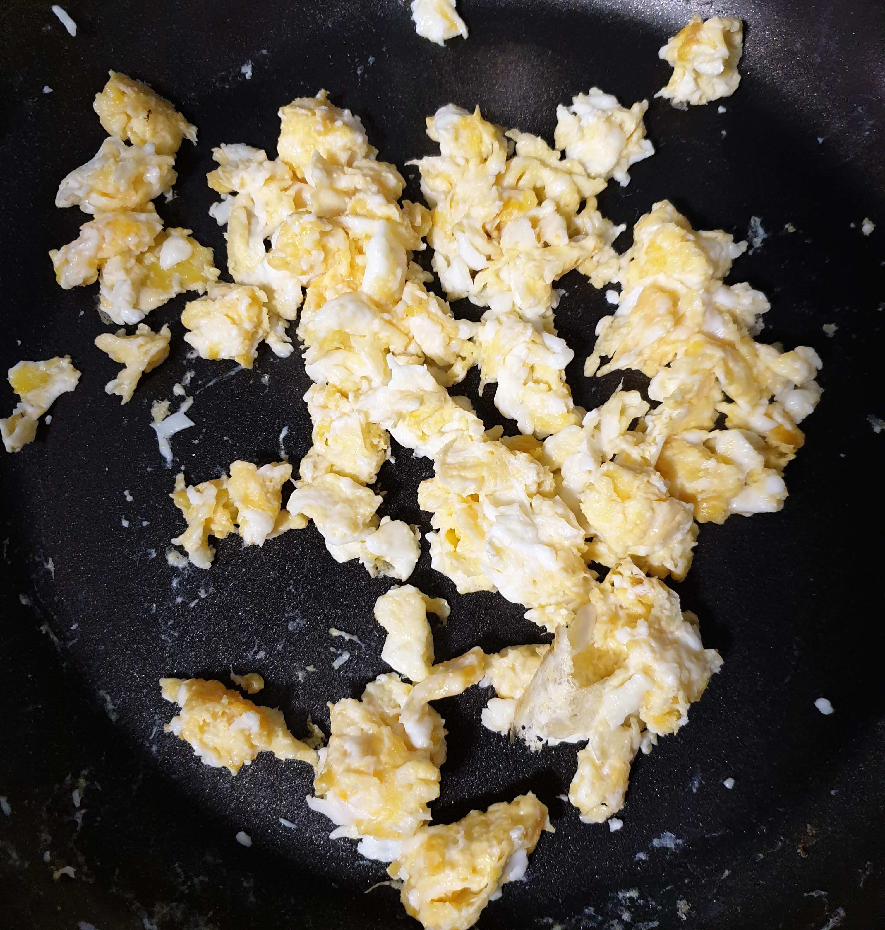계란 스크램블 해 놓은걸 삥 둘러 주세요.