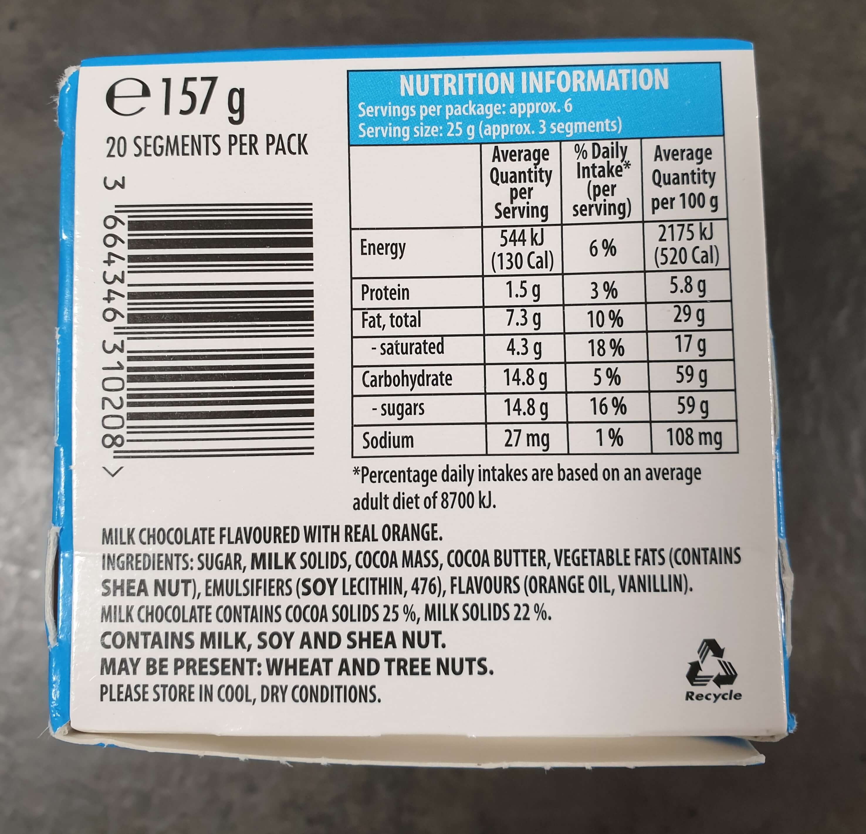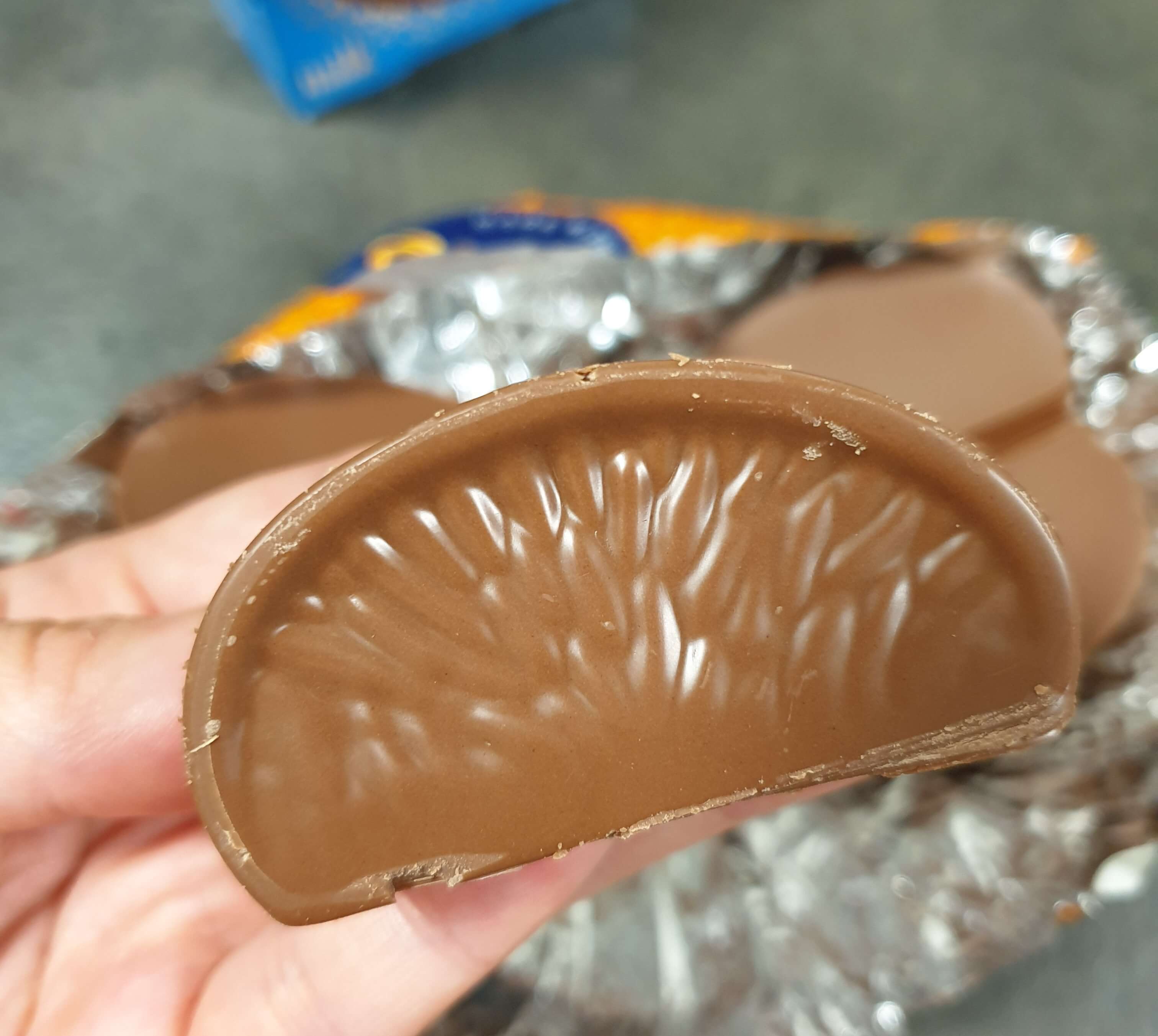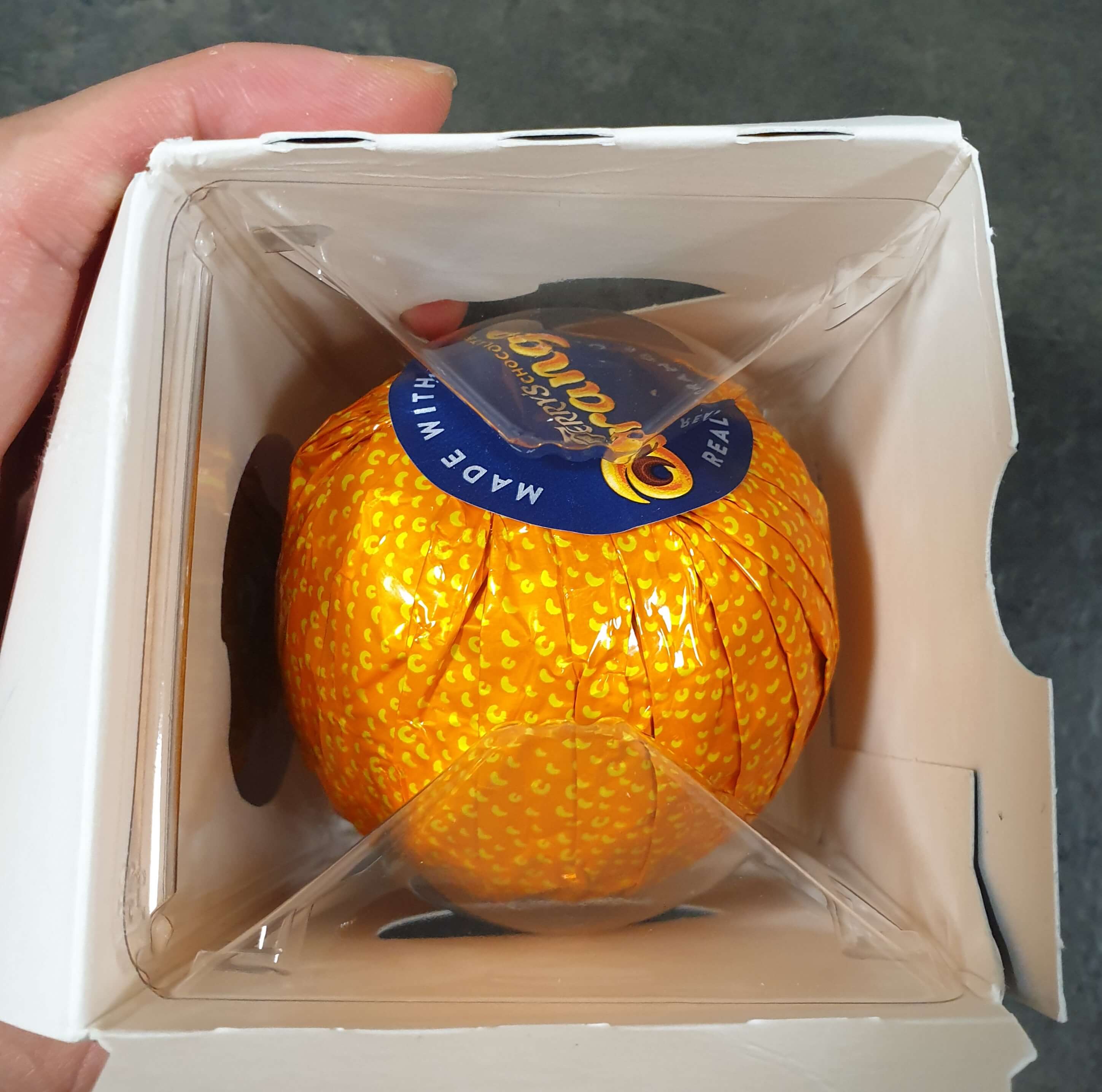포장지를 까 보면 오렌지 모양의 초콜릿 20조각이 기다리고 있어요.