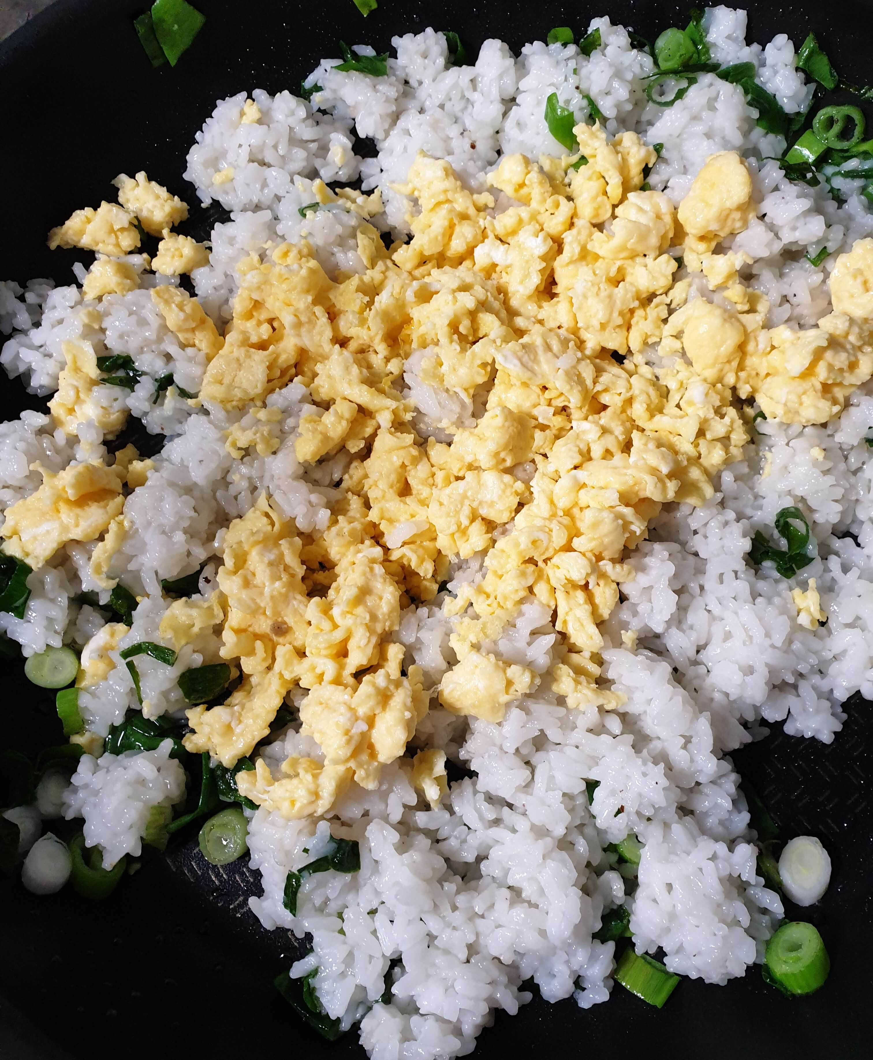 스크램블 에그를 넣고 소금, 후추로 간을 맞춰 주세요.