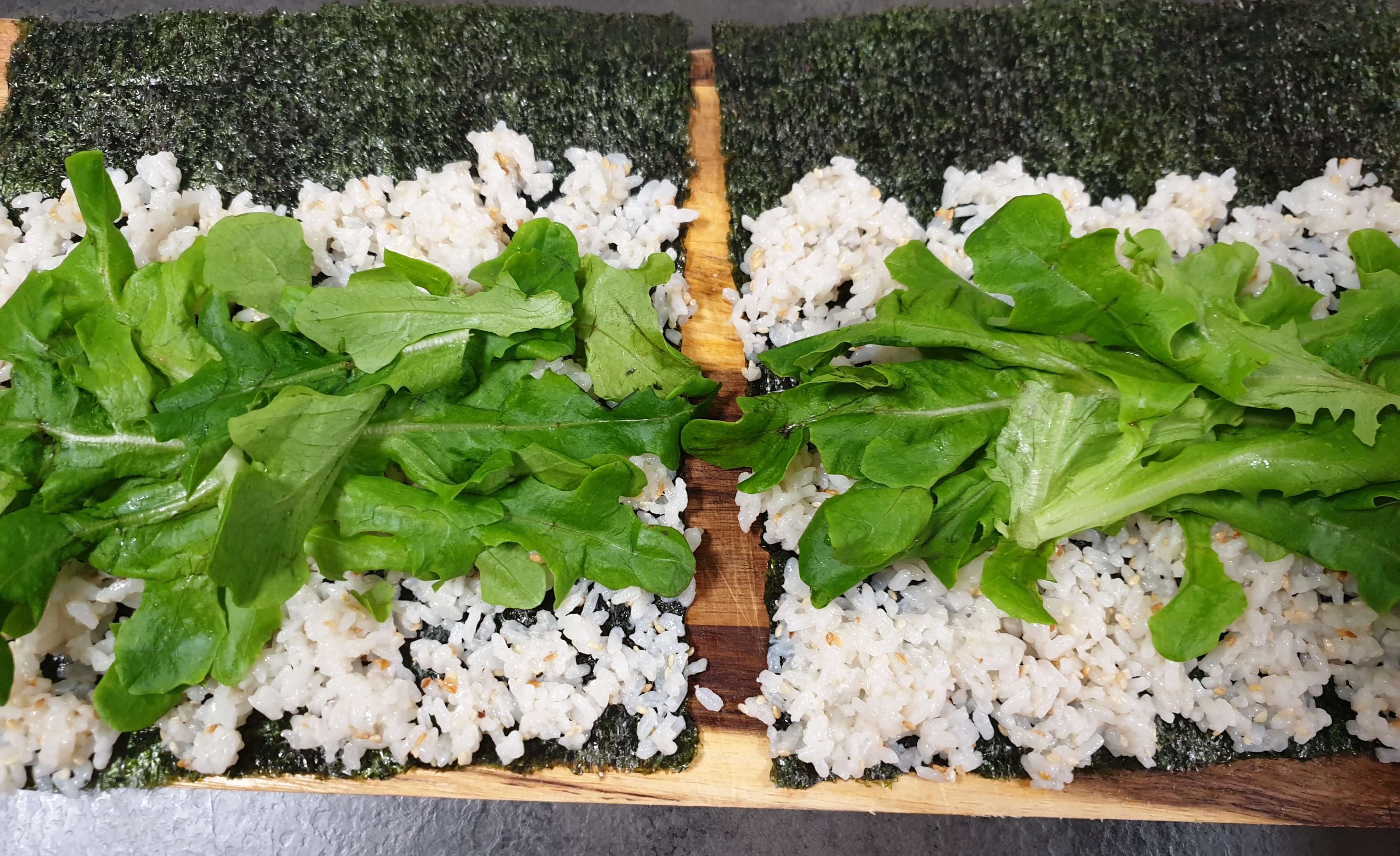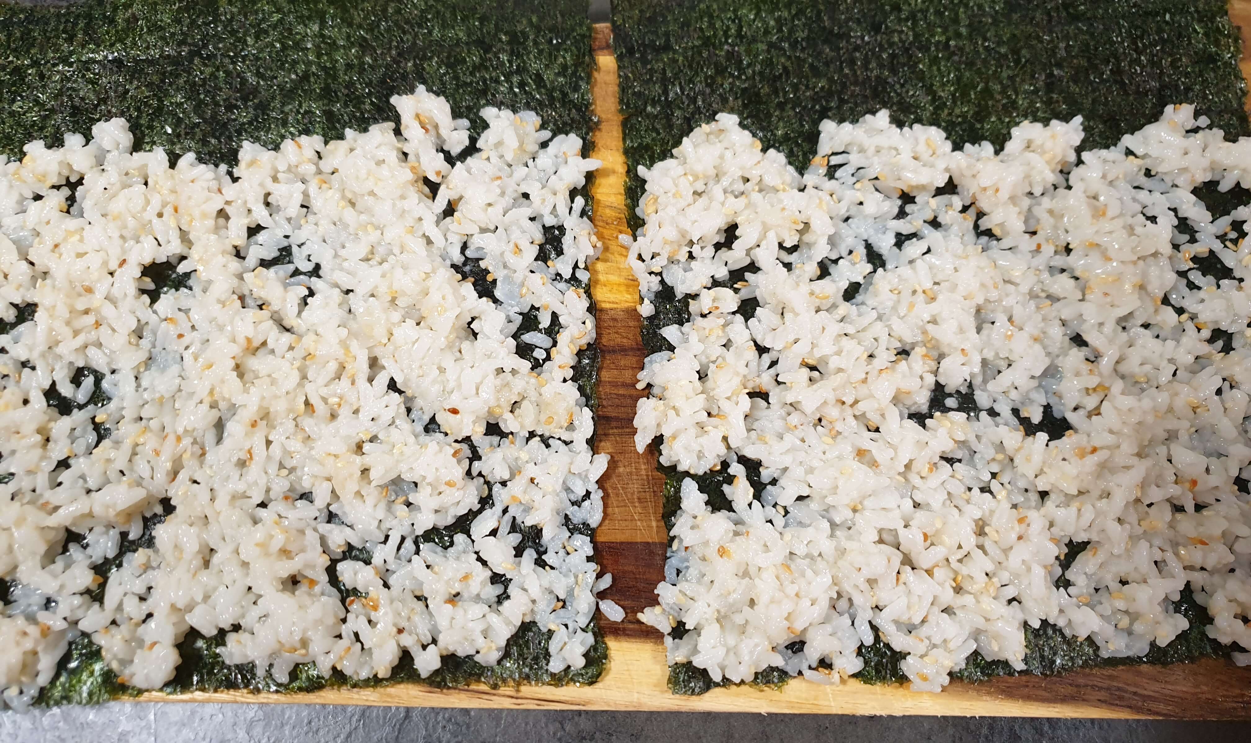 밥은 너무 두껍지 않게 깔아 주세요.