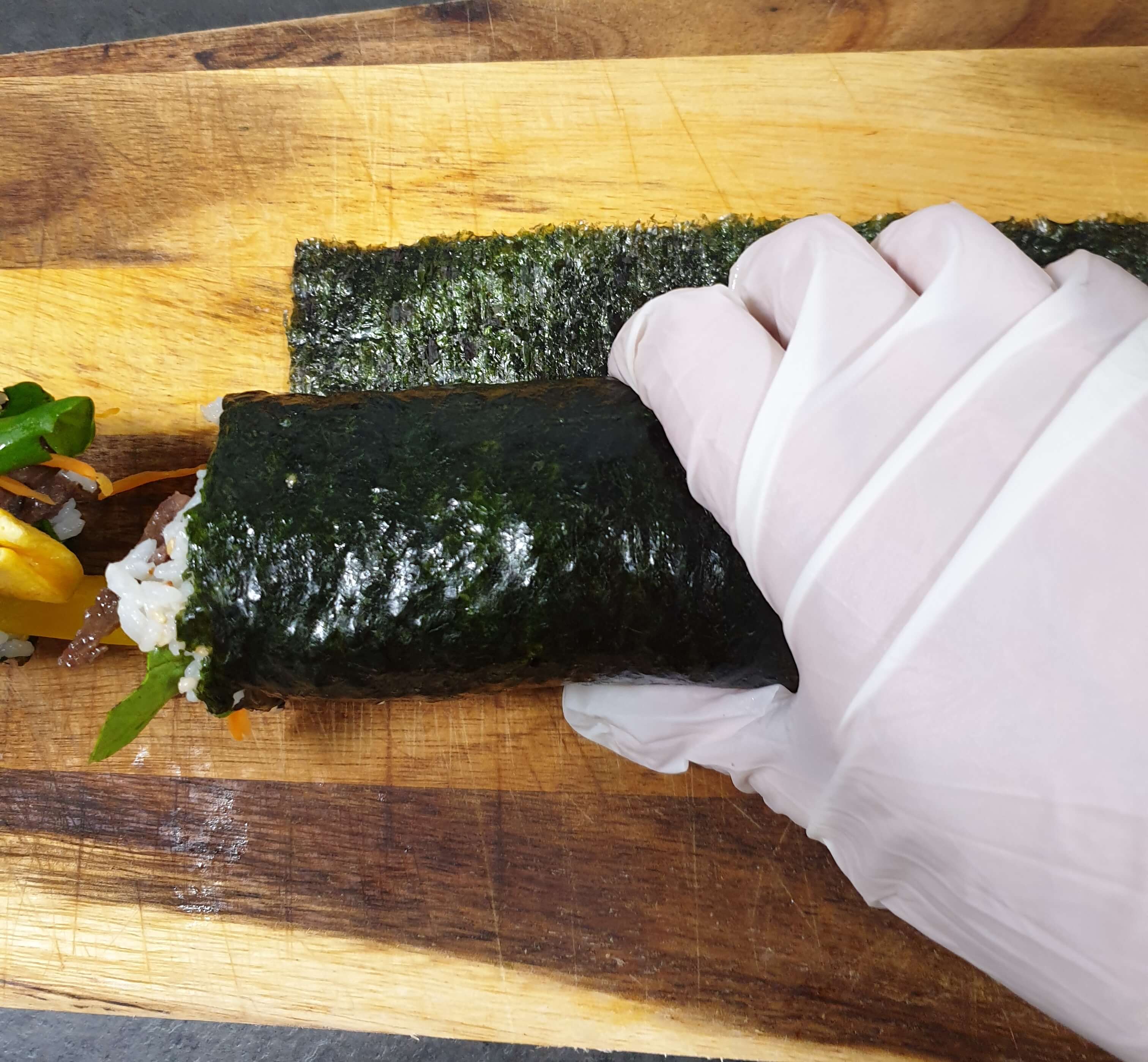 김밥을 탄탄하게 말아 주세요.