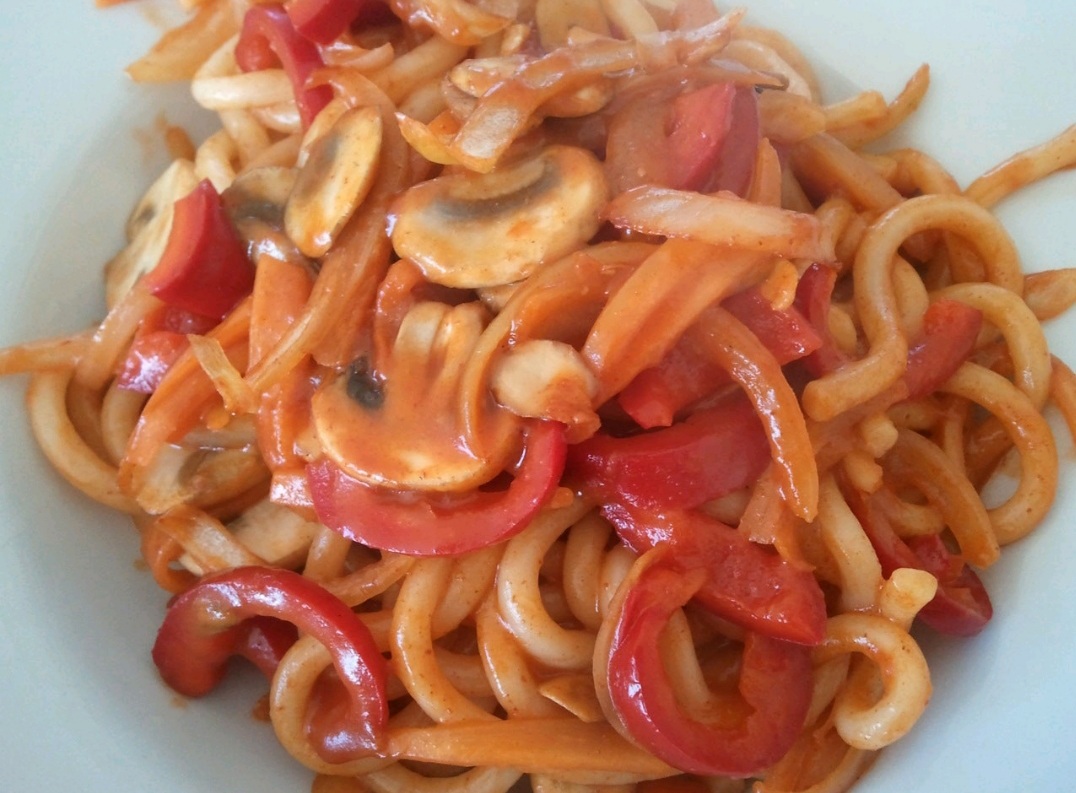 빨갛게 볶아낸 매콤 볶음 우동사진을 봤더니