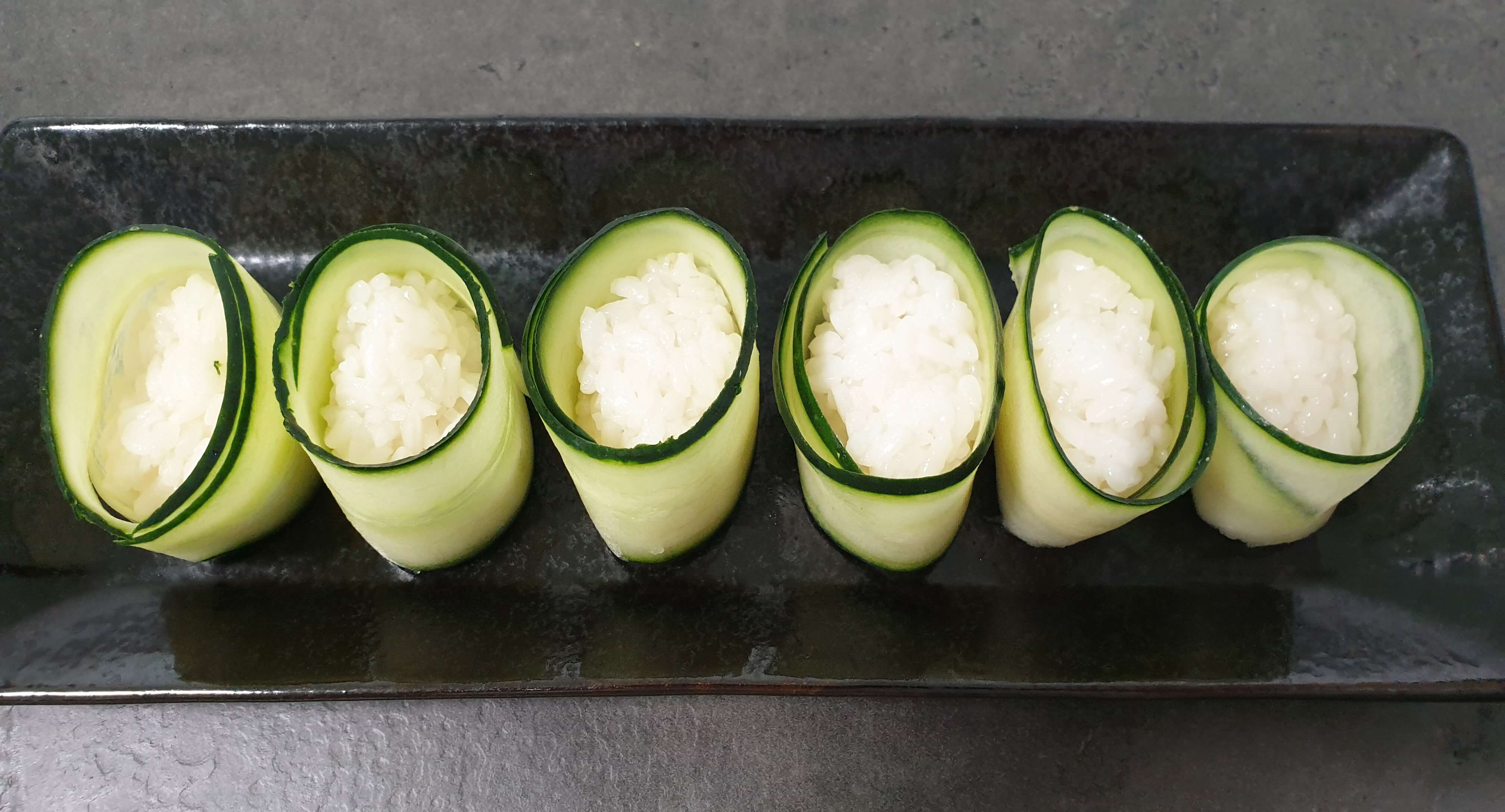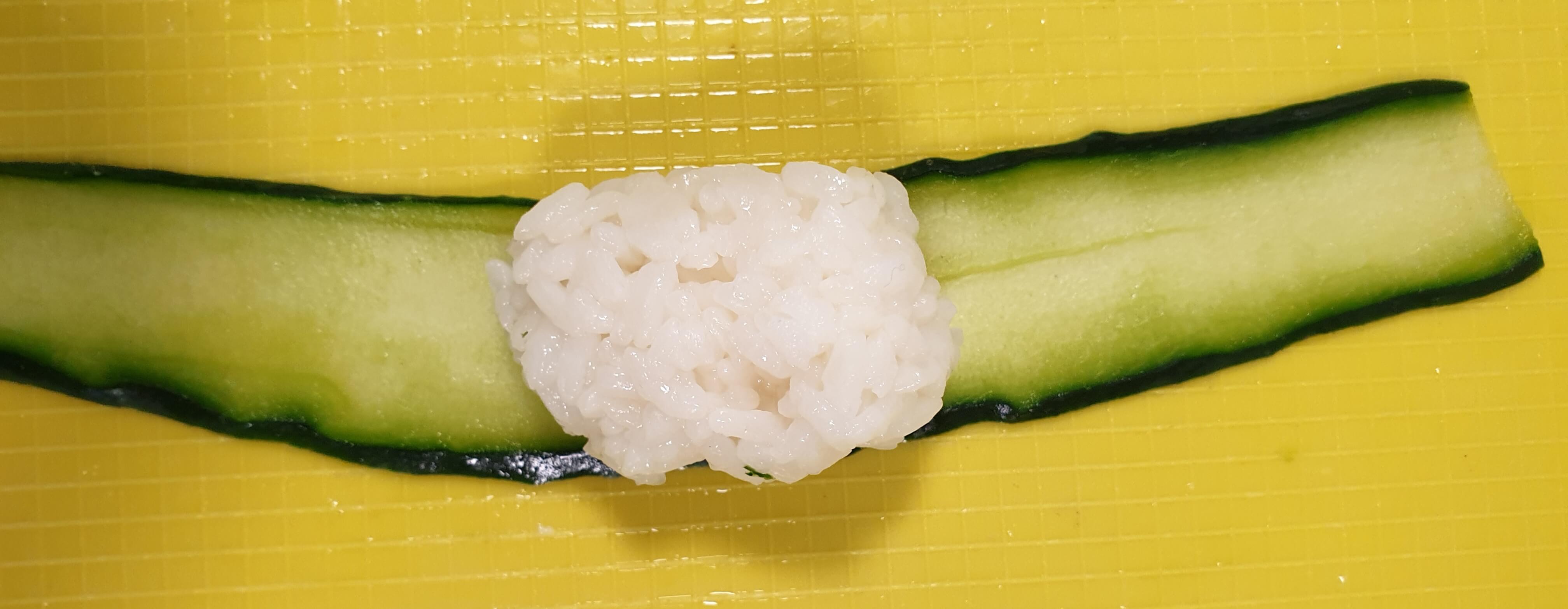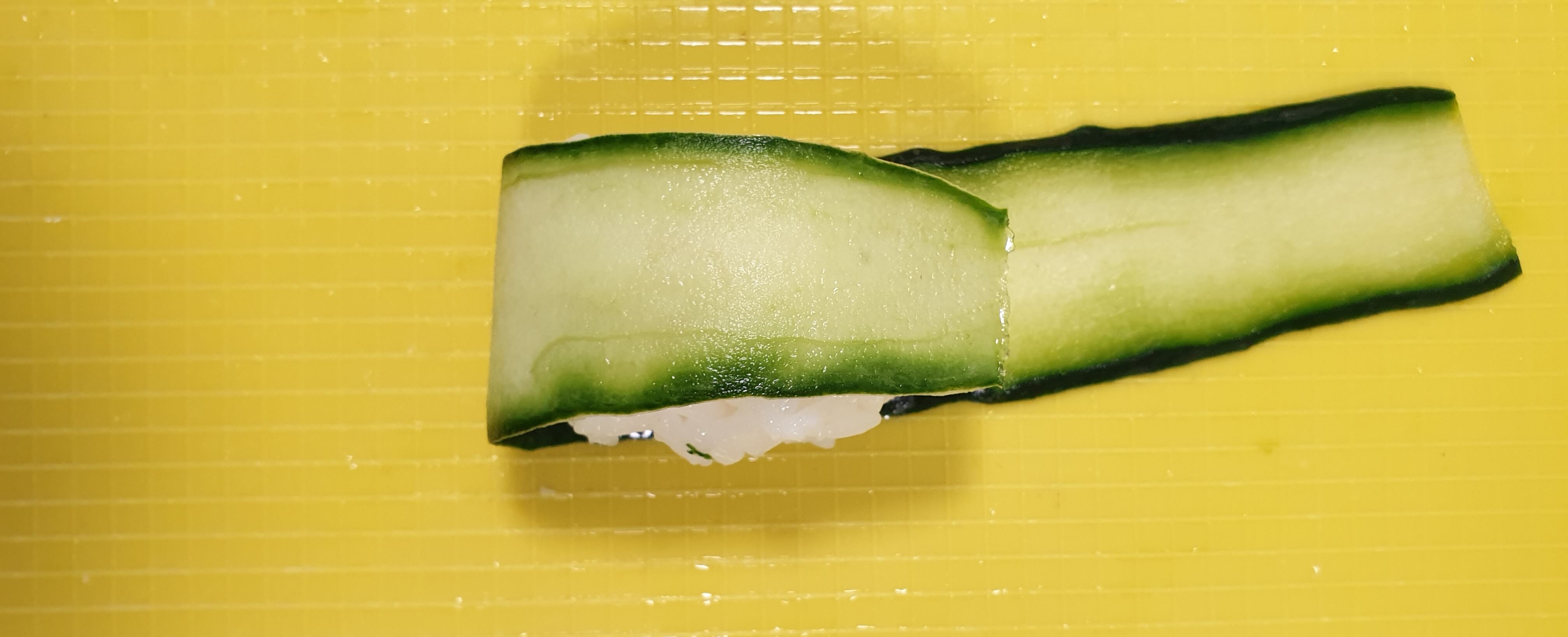 다 만들어진 오이 초밥 위에