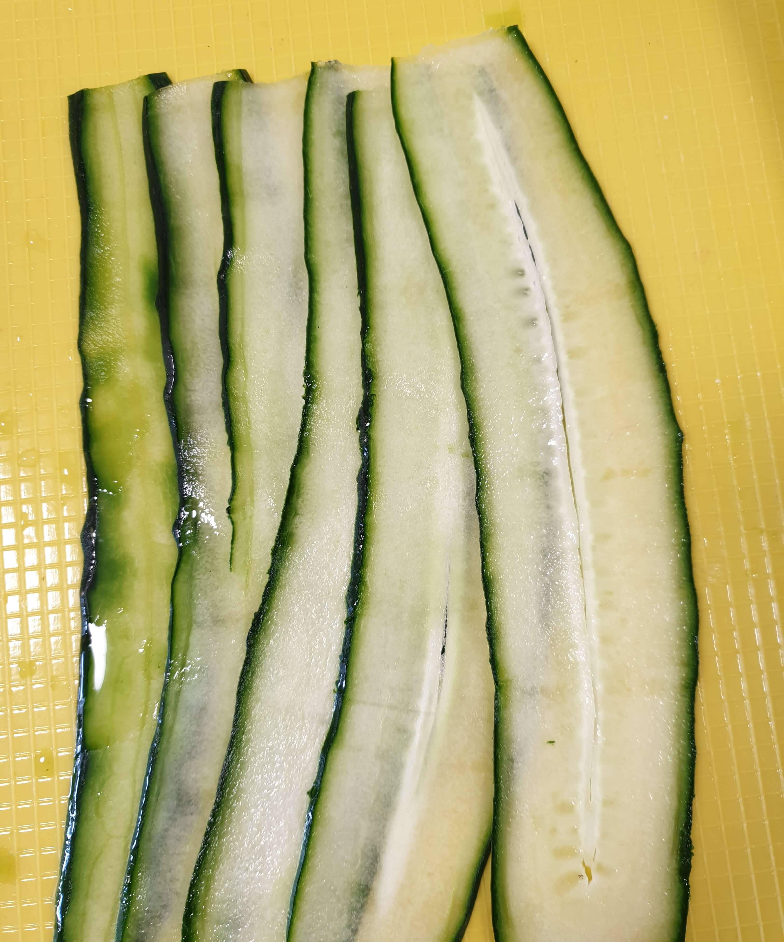 오이는 얇게 슬라이스 해주세요.