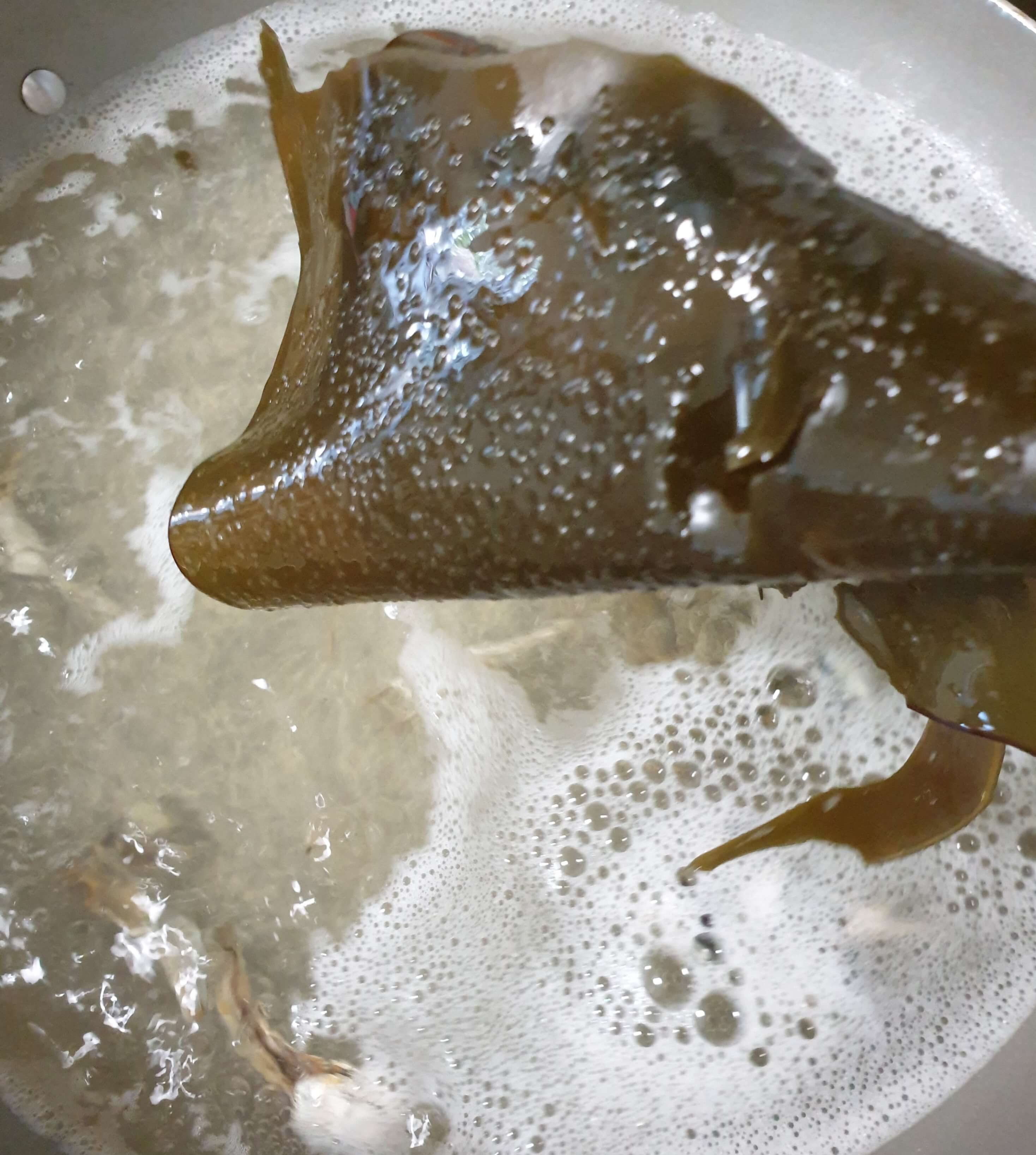 물이 끓기 시작하면 다시마는 건져내고