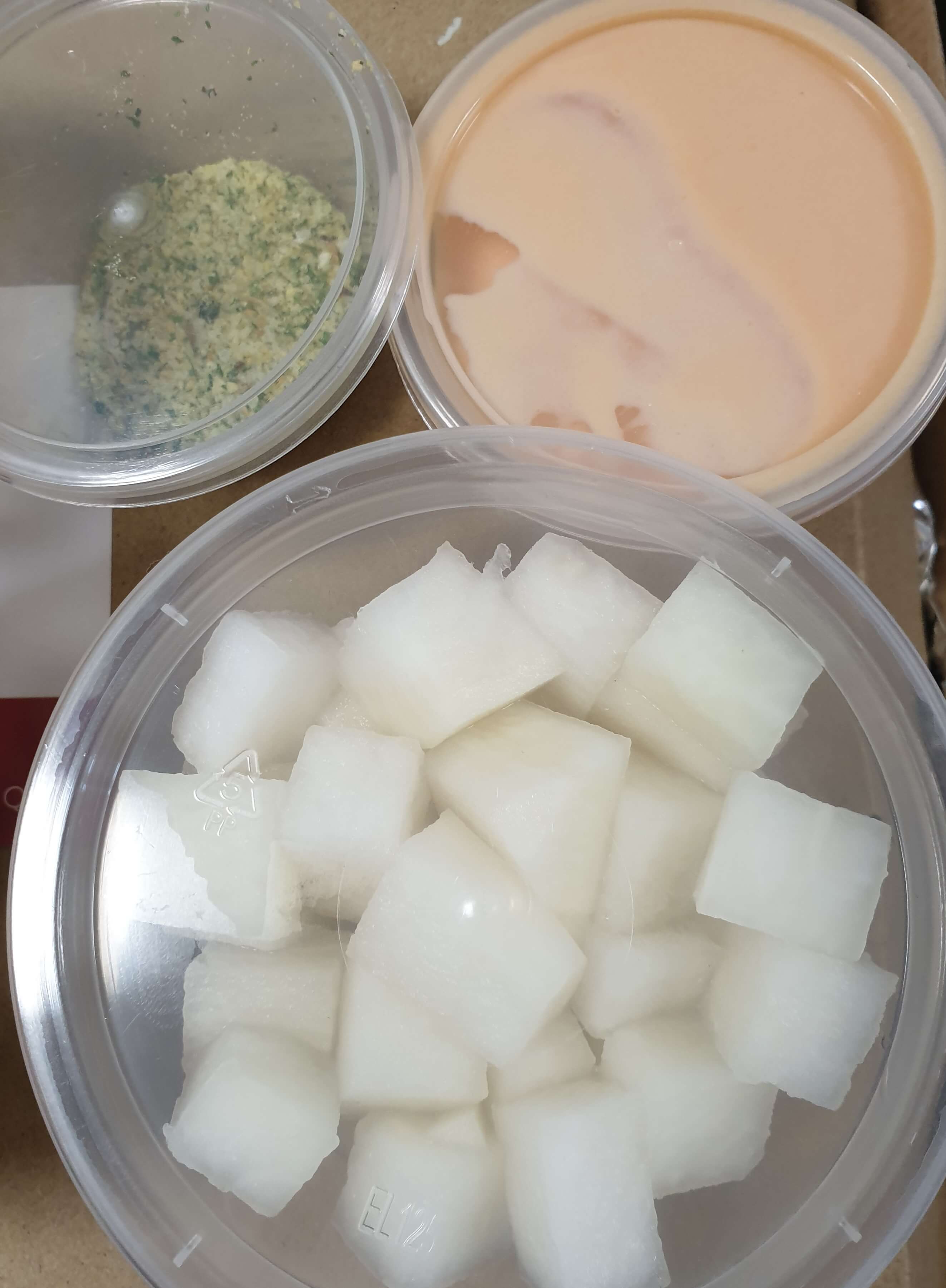 그리고 샐러드와 샐러드 소스, 치킨 무, 허브솔트 이렇게 나오네요.
