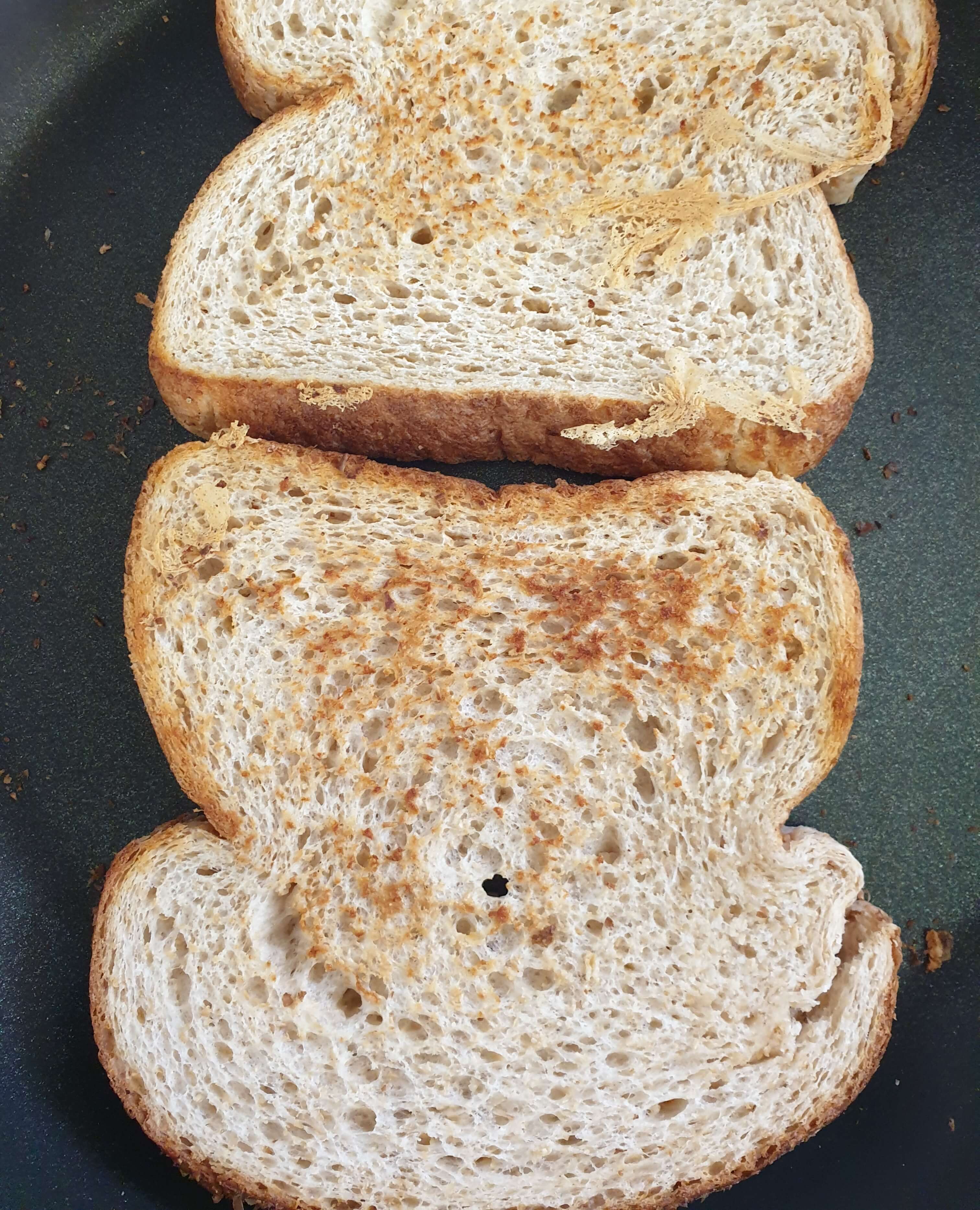 치즈를 깔고 다시 빵으로 덮어줬어요.