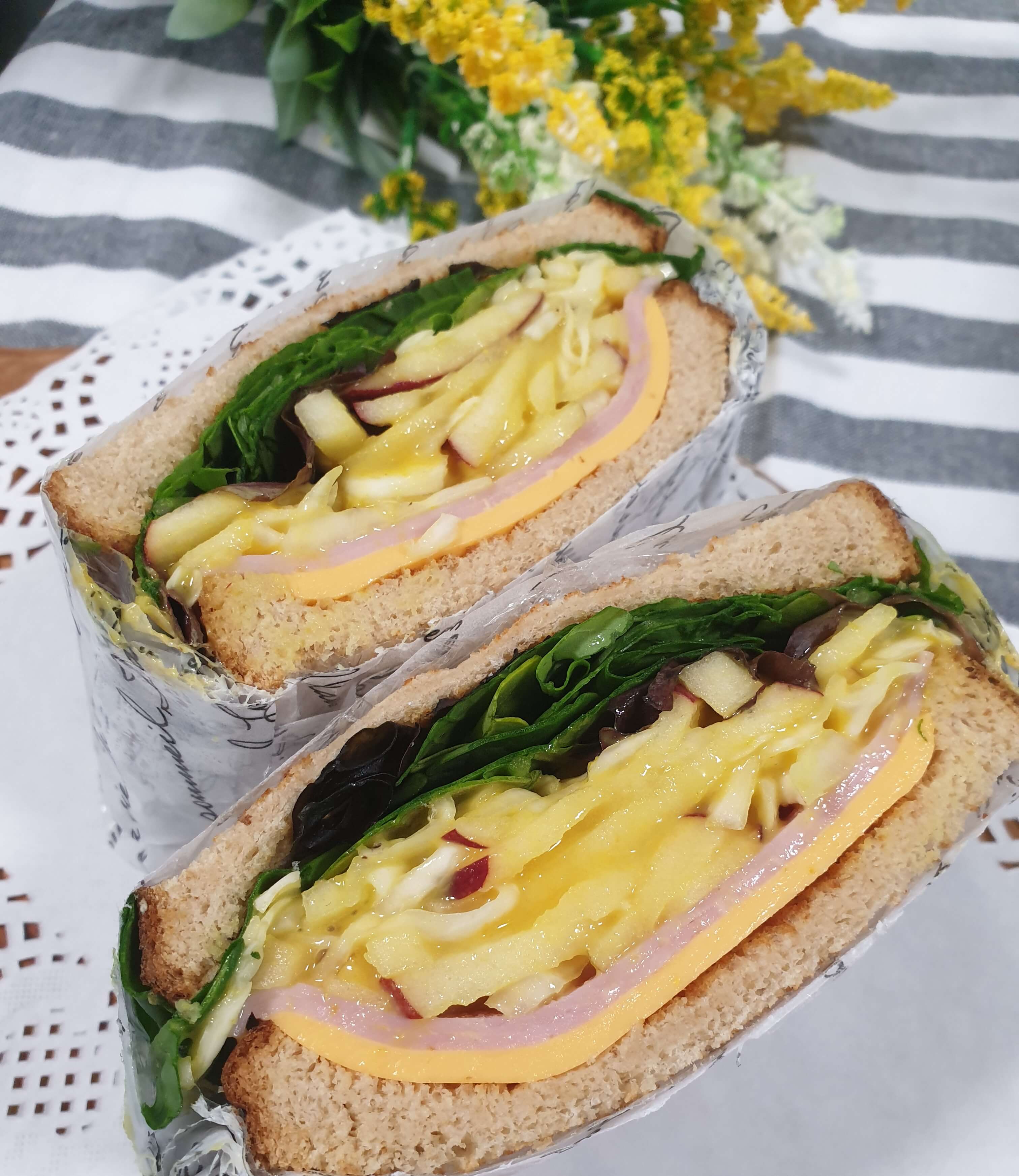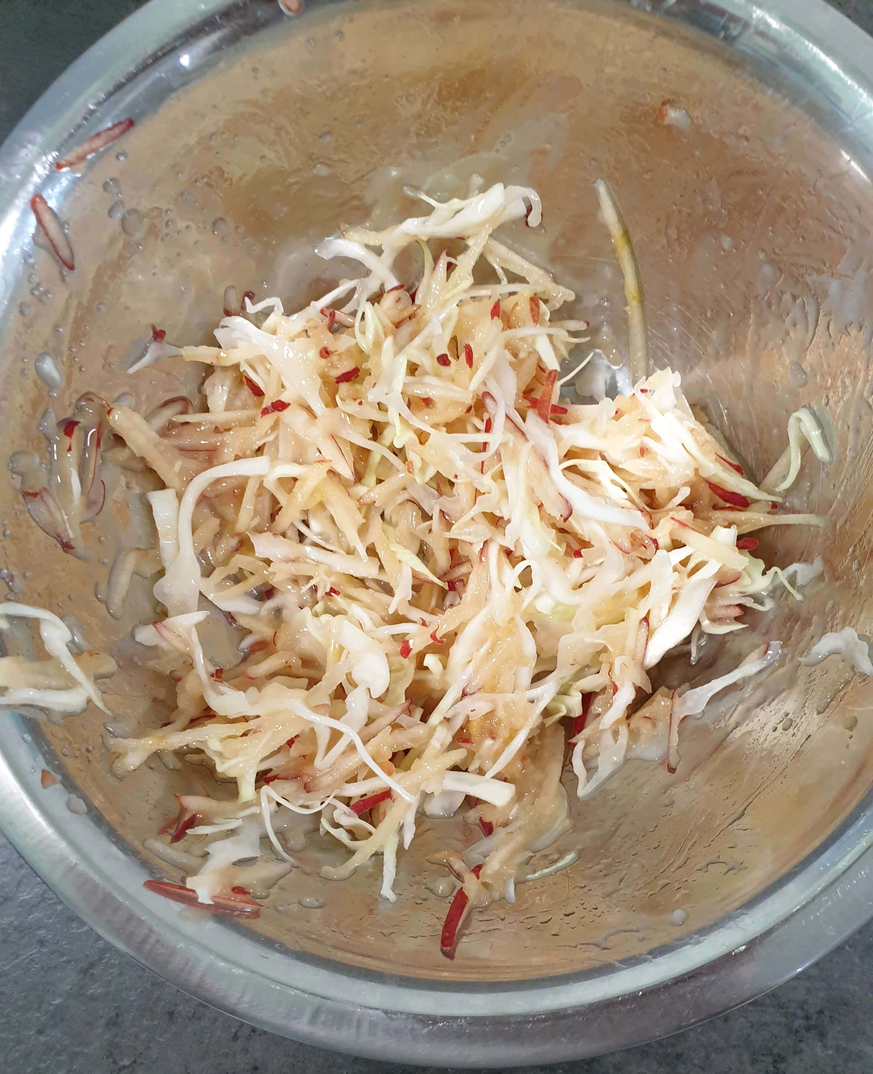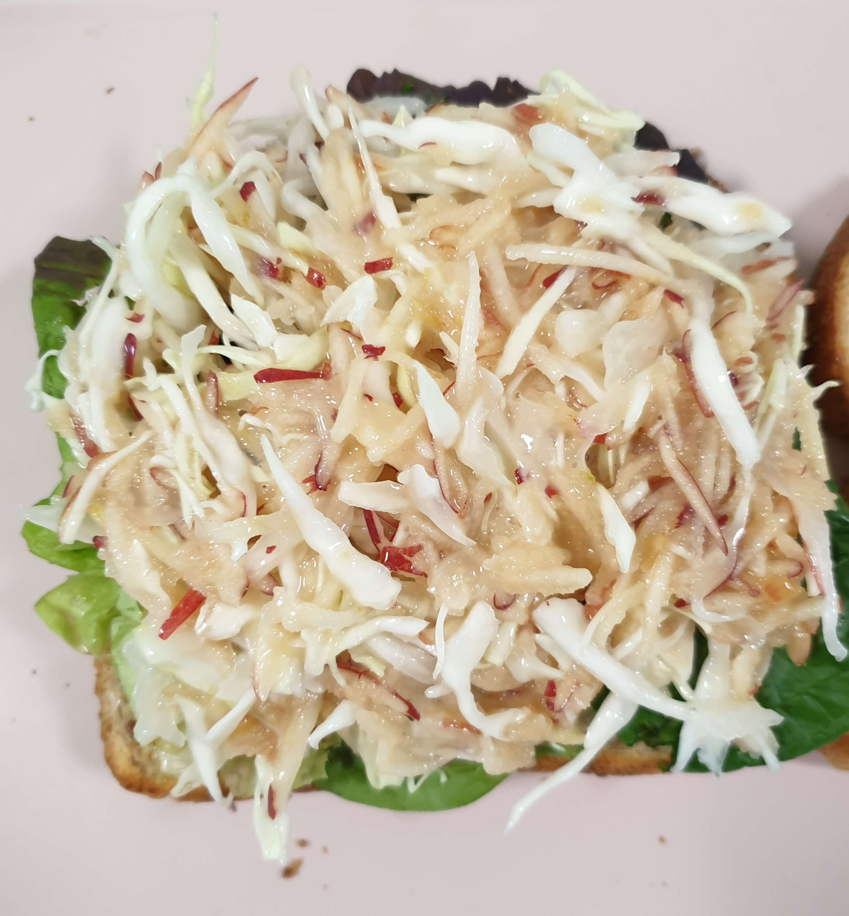아삭아삭하게 사과 양배추 샌드위치를 만들었어요.