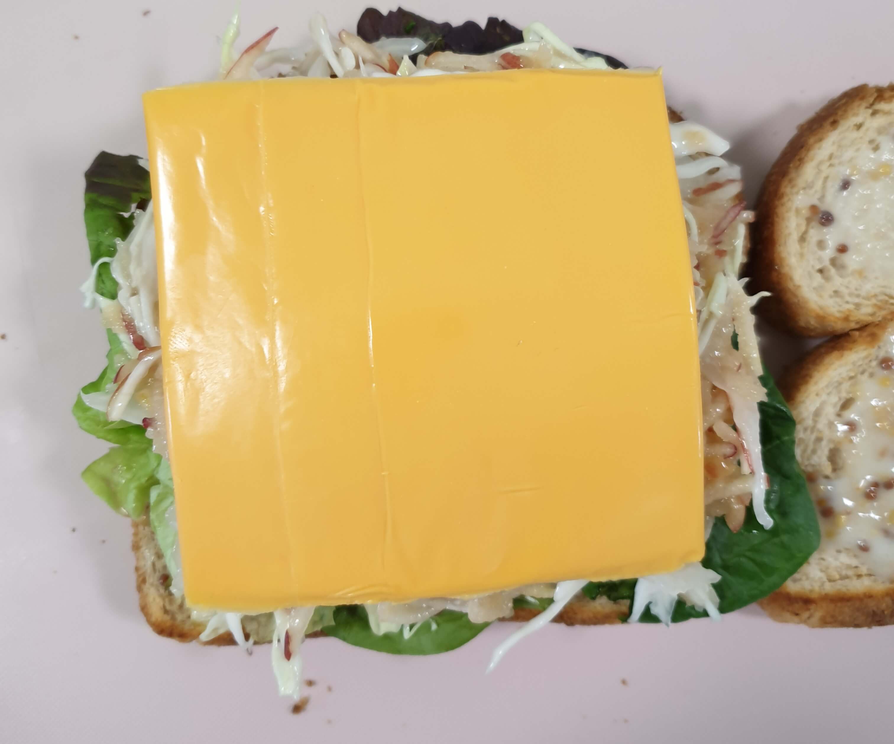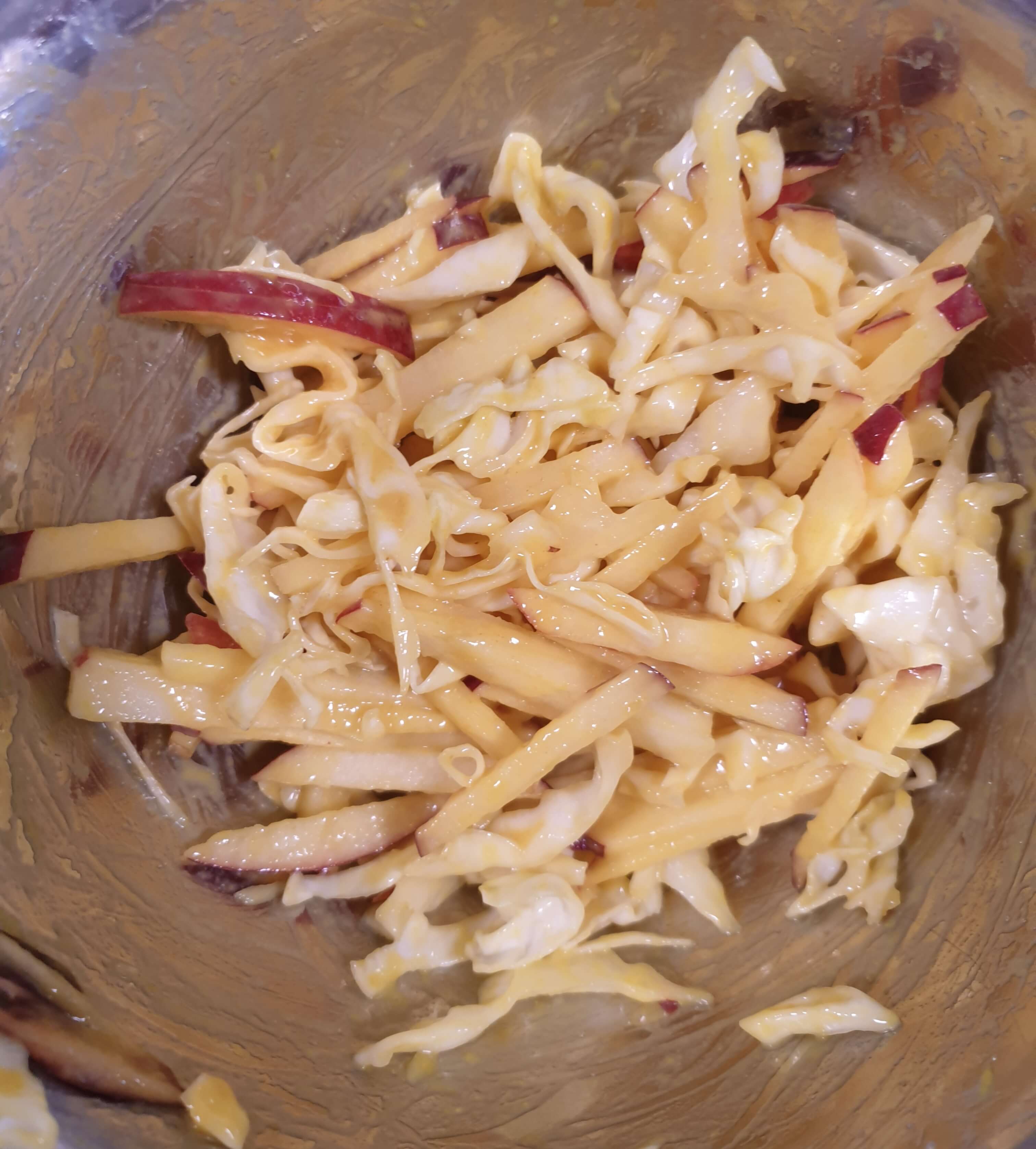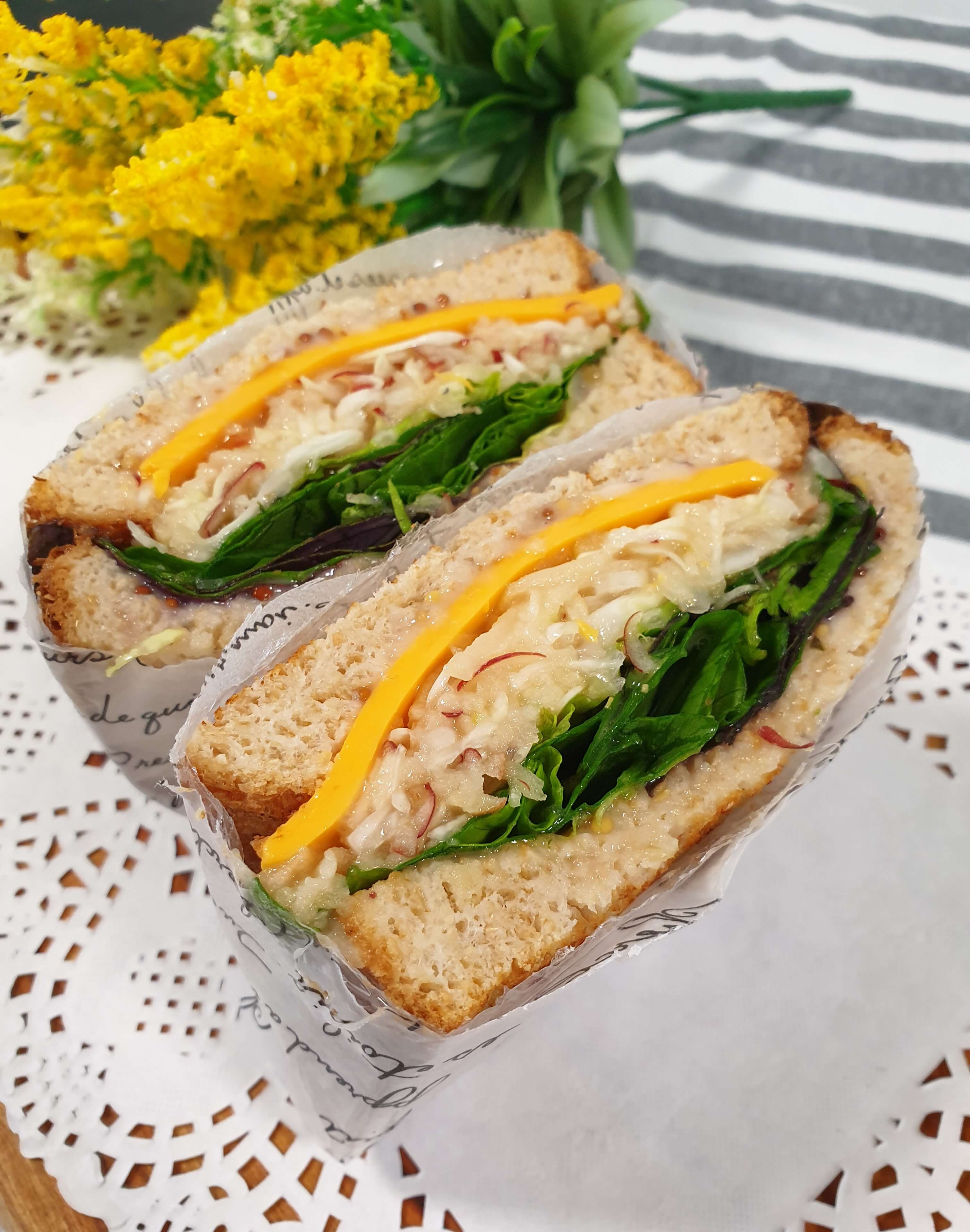 아삭아삭하게 사과 양배추 샌드위치를 만들었어요.