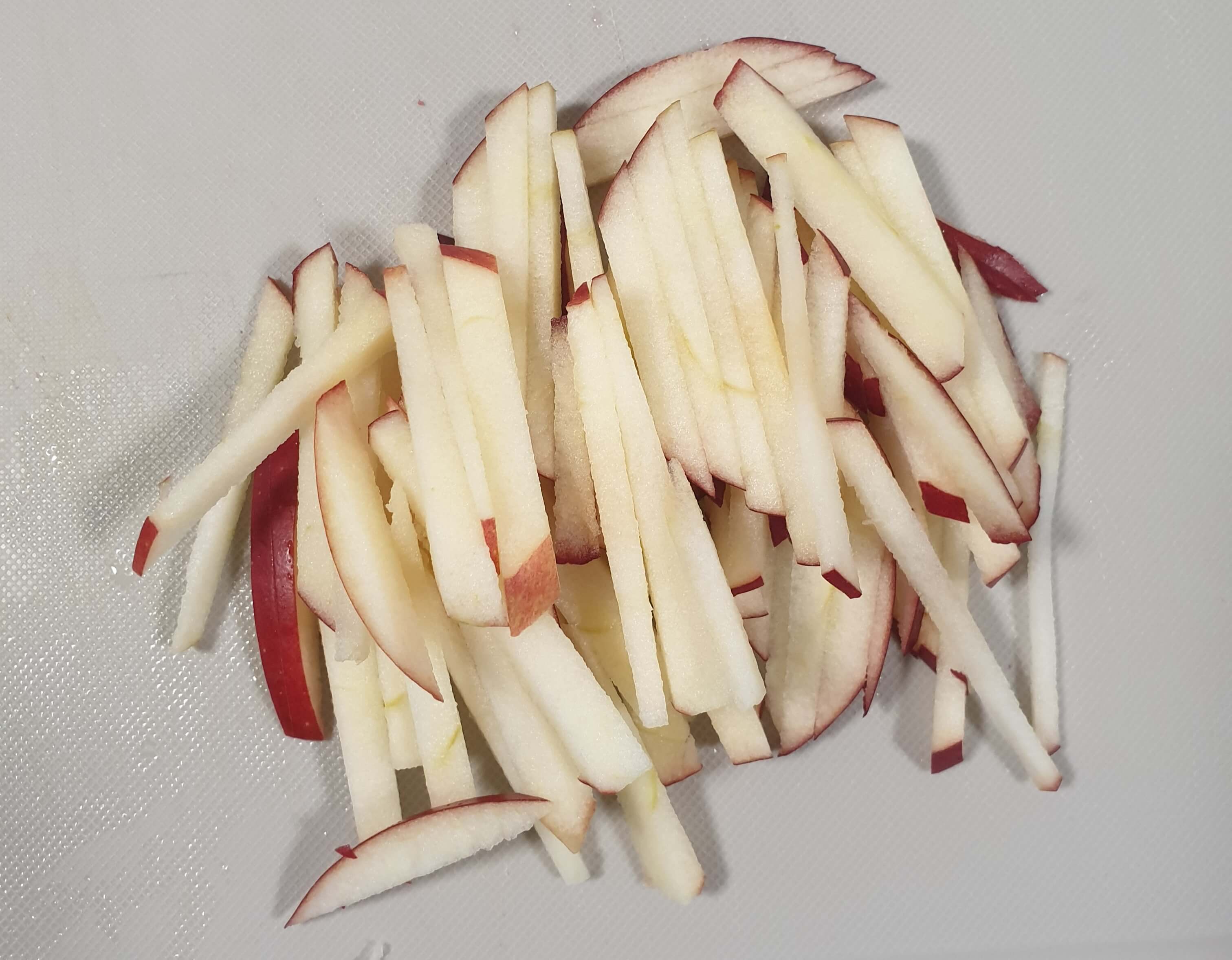 사과는 약간 두께감 있게 써는 게 좋아요.