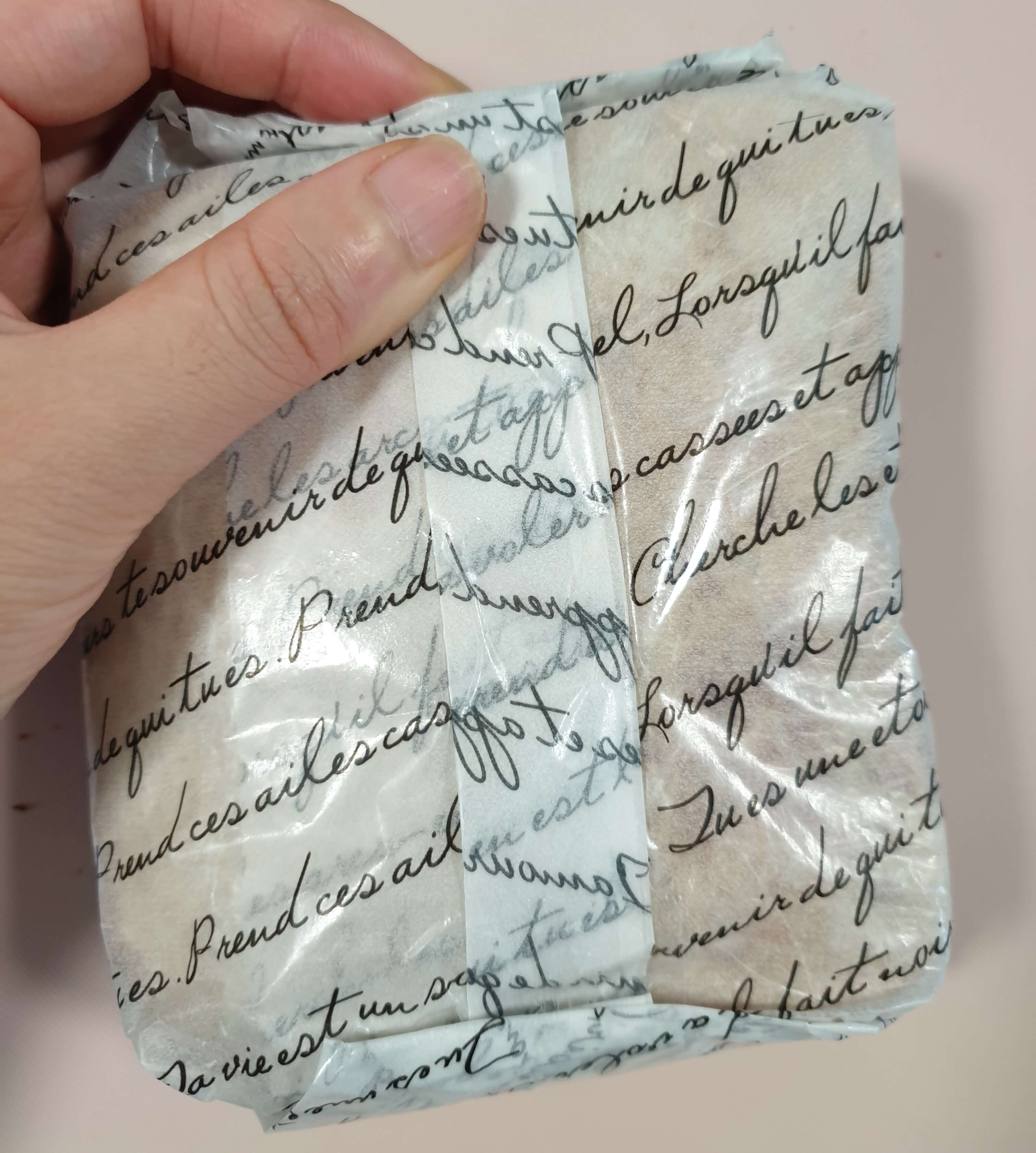 양쪽 끝에 테이프 붙여서 포장해줬어요.
