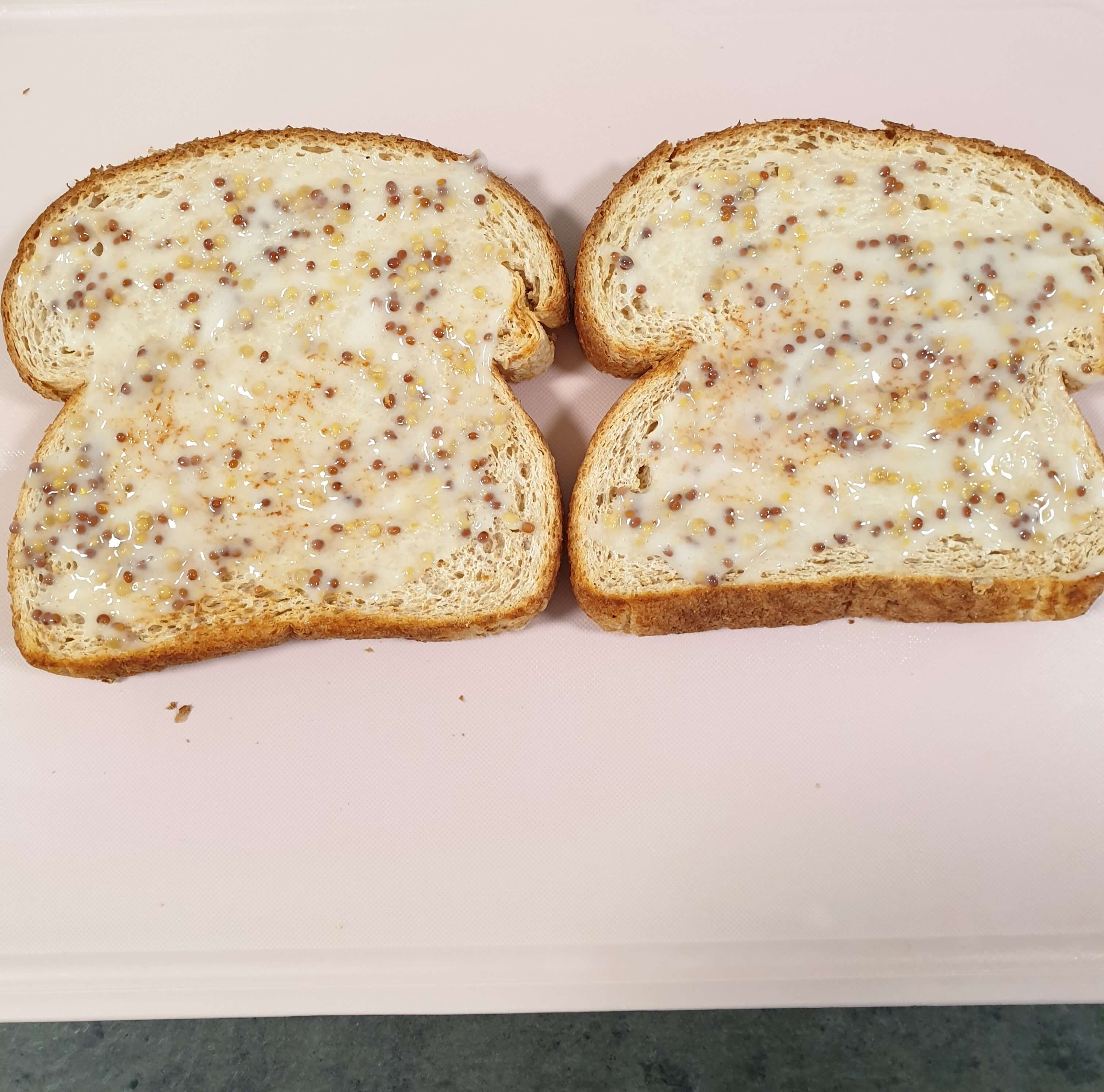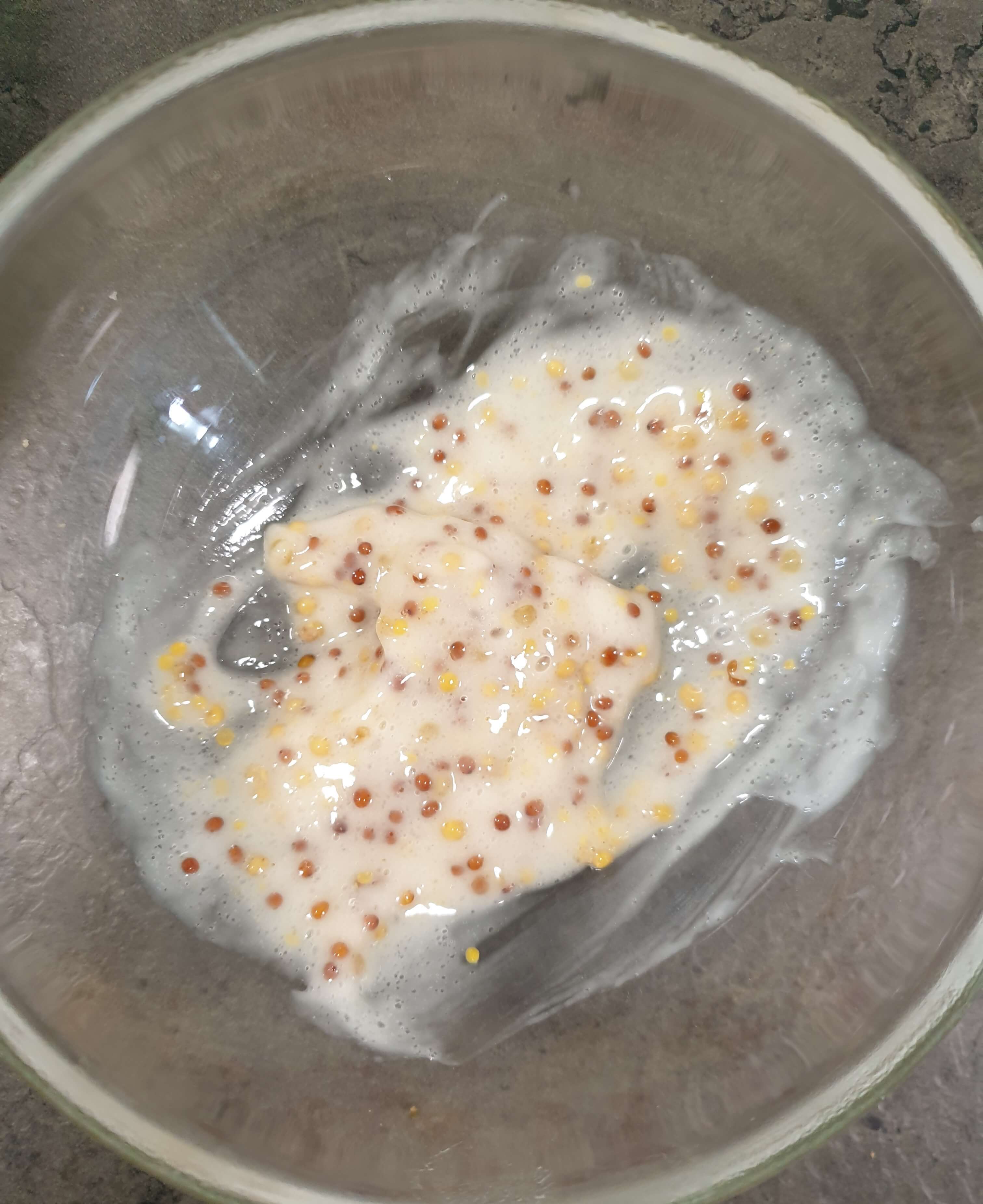 마요네즈, 홀 머스터드, 설탕 1 티스푼을 섞어
