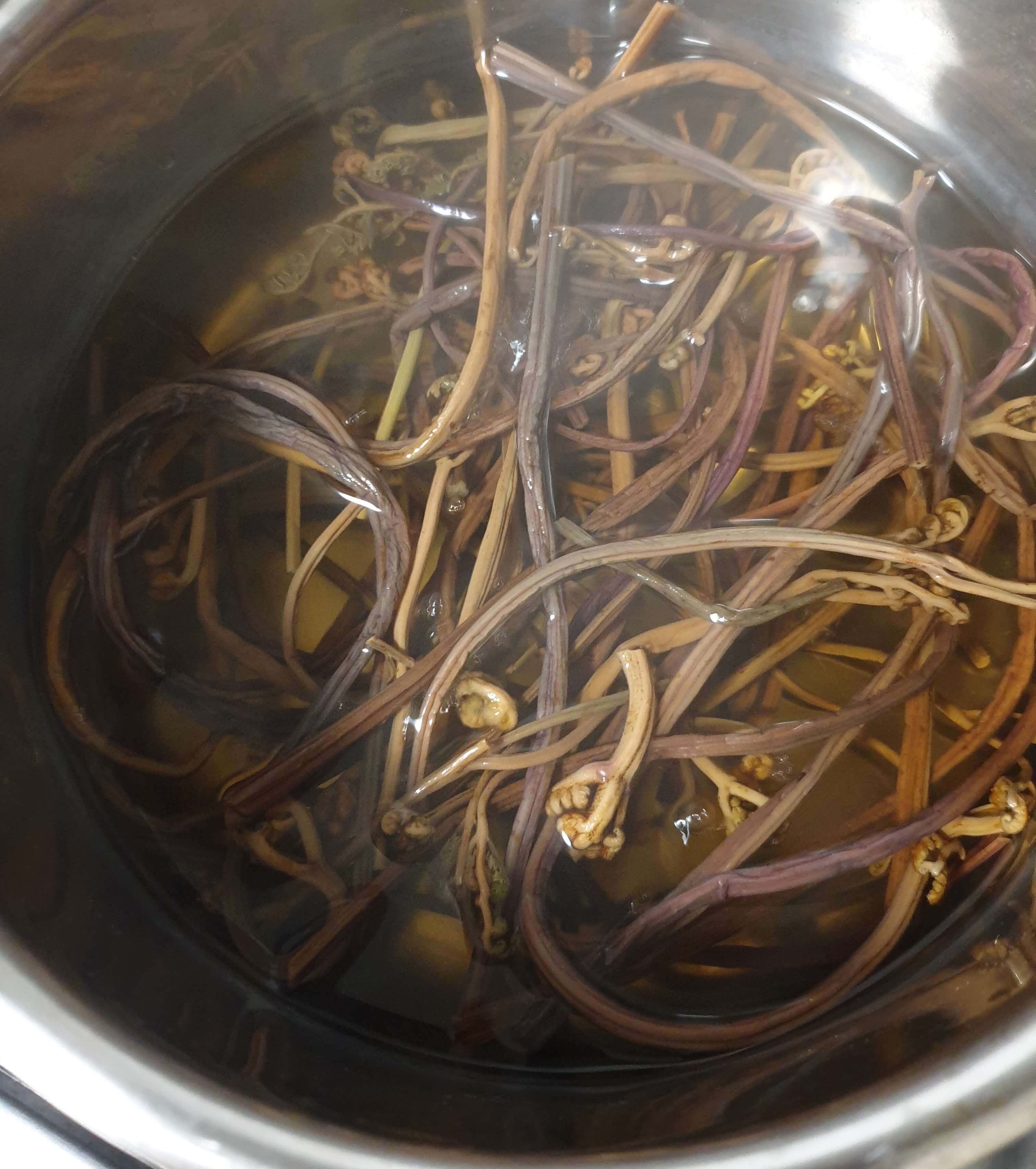 찬물에 한번 씻어 끓고있는 육개장에 넣어 주세요.