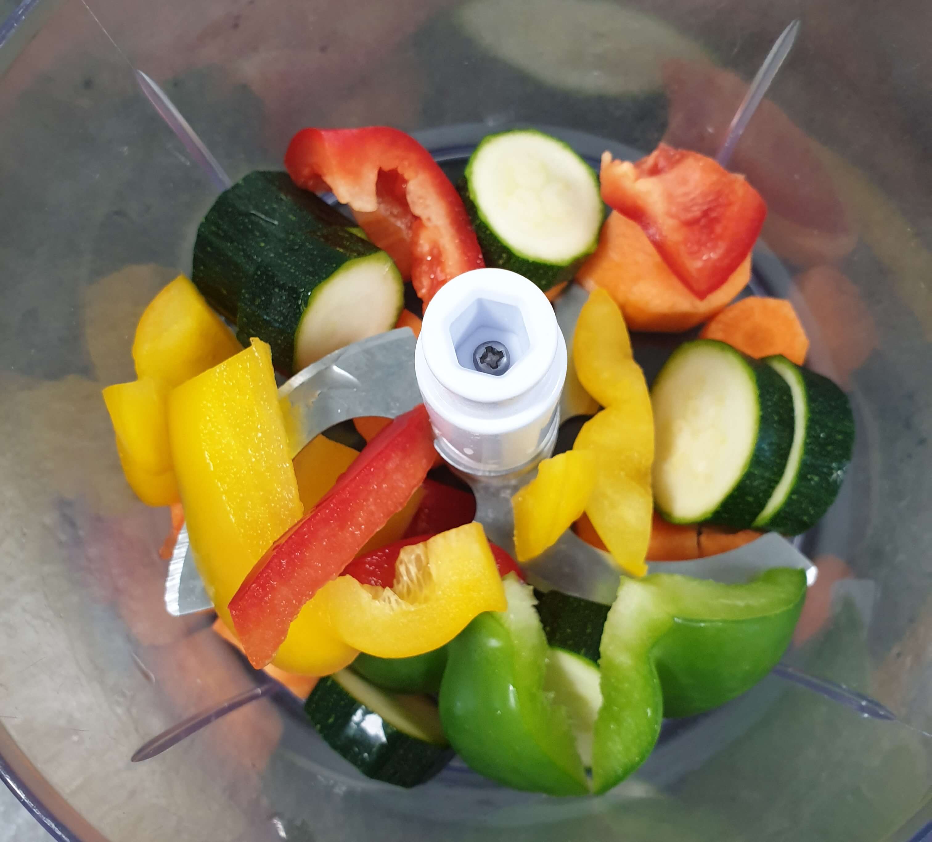 저는 애호박, 당근, 파프리카를 다져줬어요.