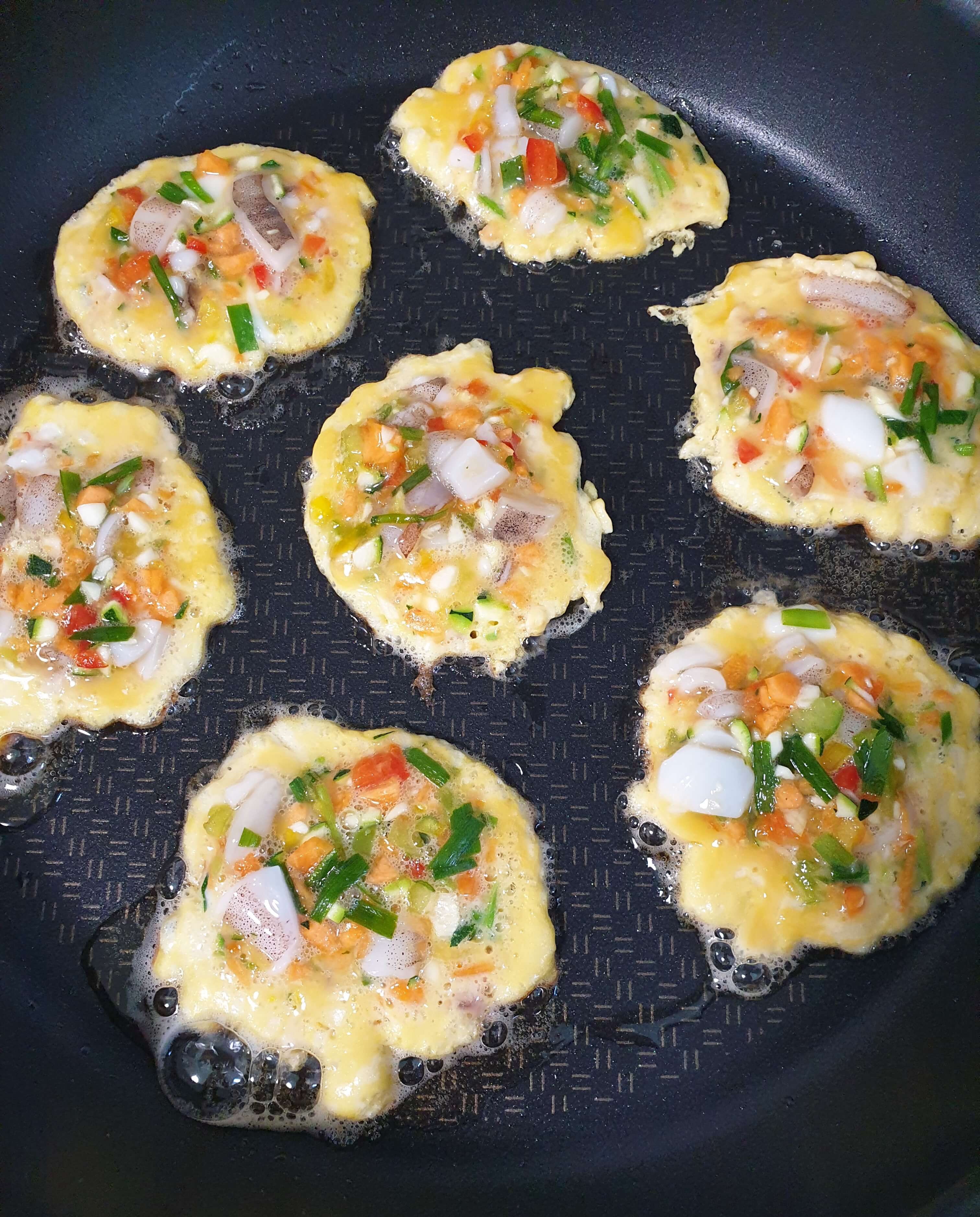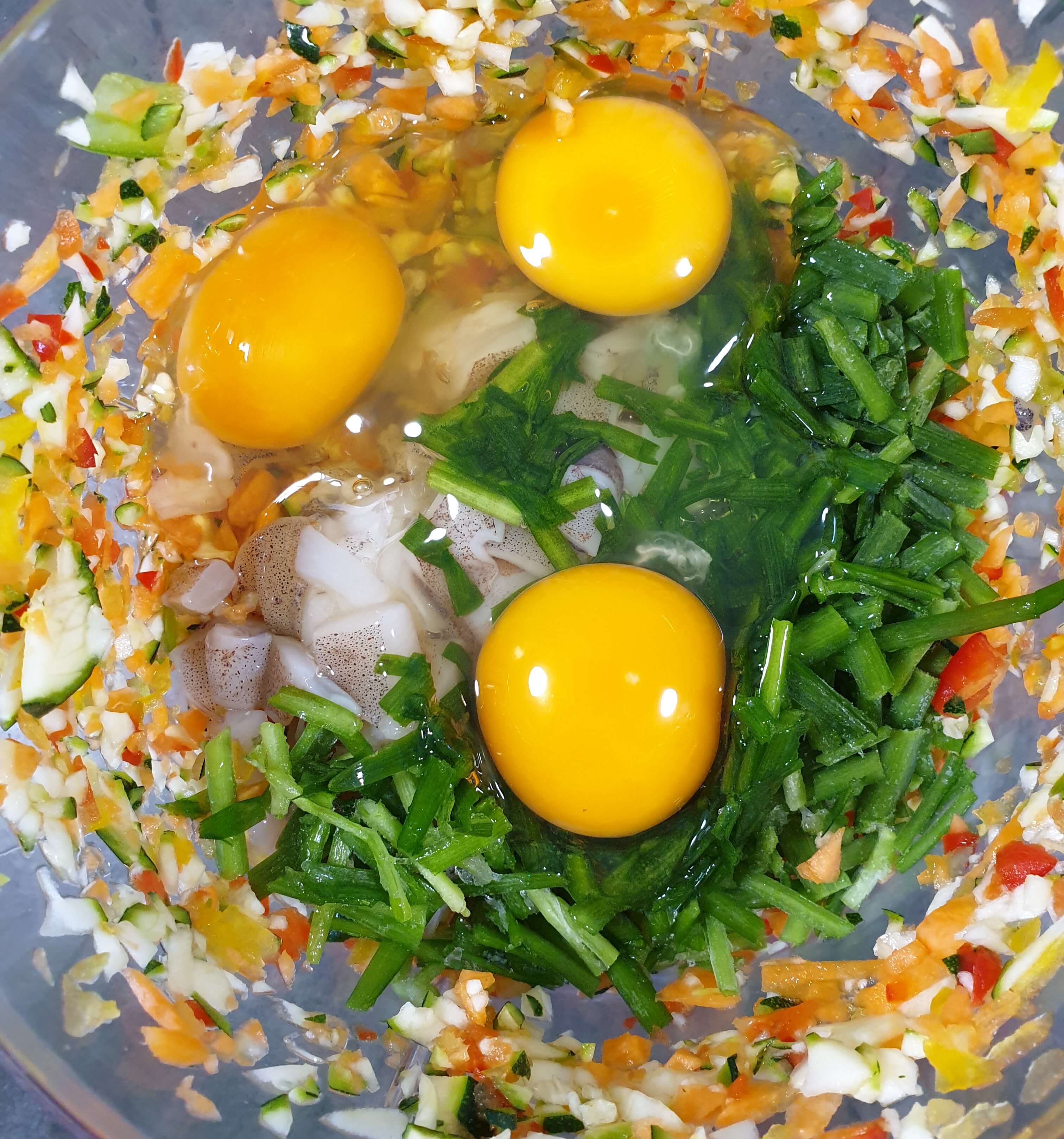 반찬으로 좋은 미니 오징어 야채전이 만들어졌어요.