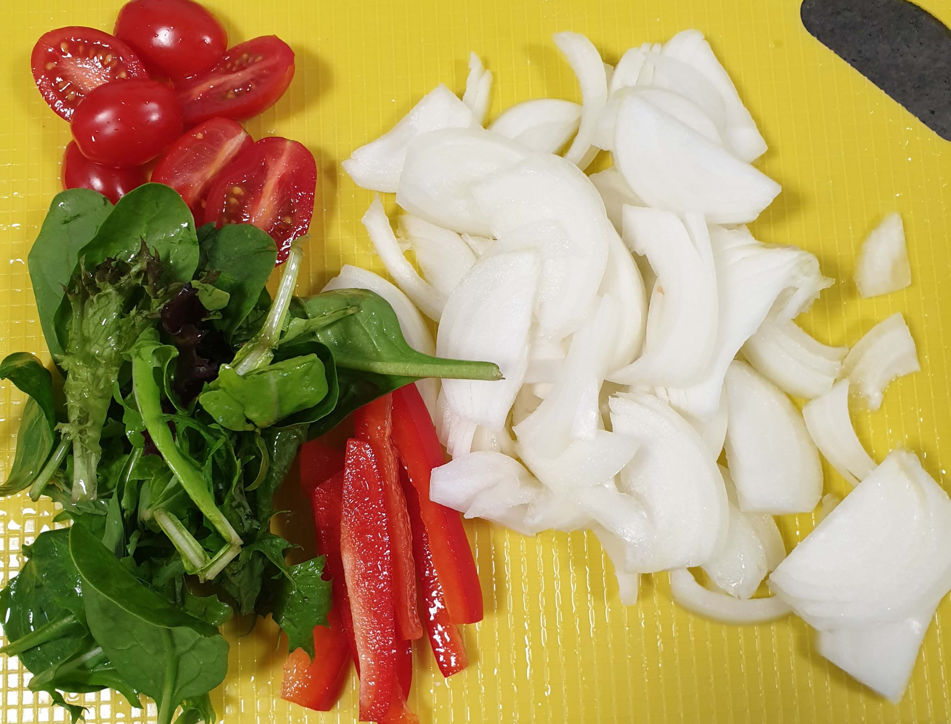 빨간 파프리카와 샐러드 야채도 준비해 주세요.